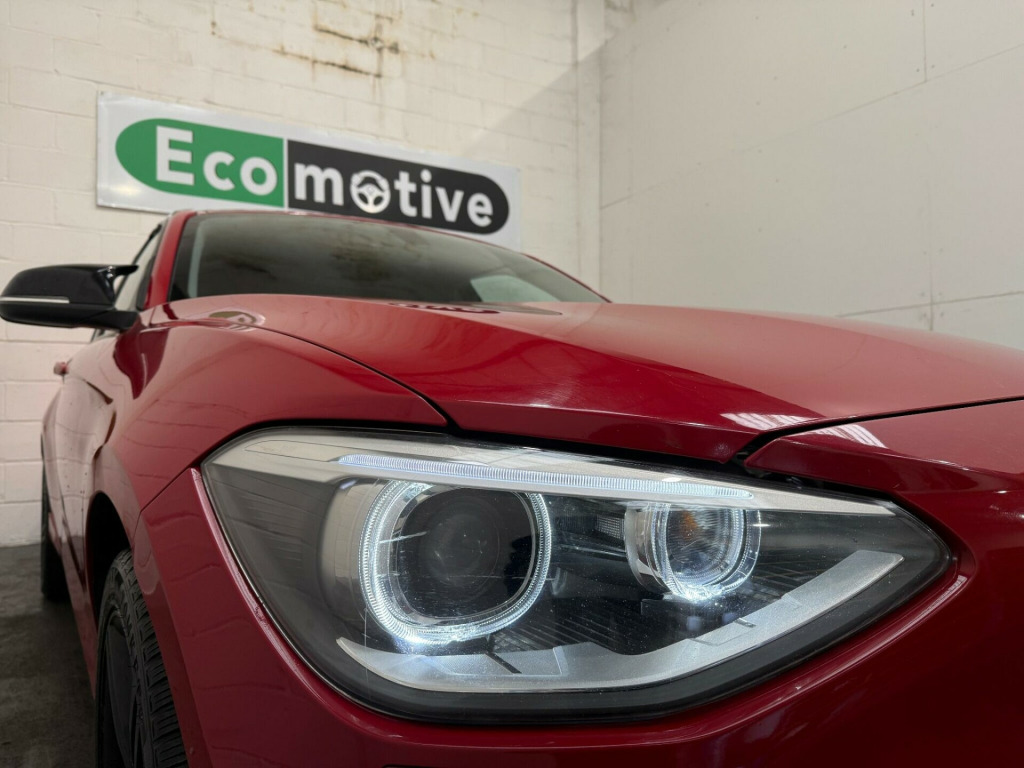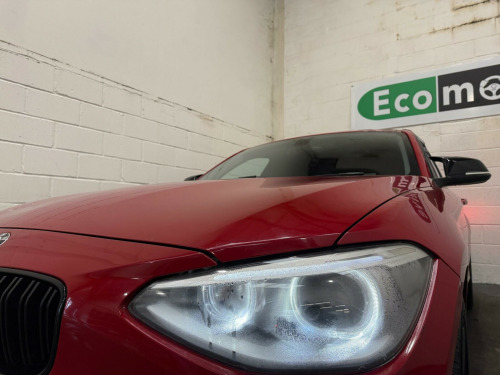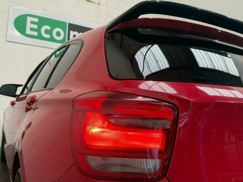This 2014 BMW 1 Series 116i Sport is a Euro 6 compliant vehicle, meaning it meets stringent emissions standards. It features a 1.6 litre petrol engine and comes with a Sport trim, enhancing its dynamic appeal. Inside, you'll find supportive front sport seats for a comfortable driving experience, complemented by a BMW Navigation Package to guide you on your journeys. The Xenon Headlight Package ensures excellent visibility, while the Sun Protection Package, including sun protection glazing, adds privacy and helps keep the cabin cooler.The 116i Sport offers a brisk acceleration of 0 to 62 miles per hour in just 8.7 seconds, demonstrating its lively performance. This model also benefits from a low insurance group, making it a more economical choice for many drivers. Furthermore, the generous boot space provides ample room for luggage or shopping, indicating its practicality for everyday use and longer trips. These features collectively position this BMW 1 Series as a compelling option within its class. eaker system - harman kardon, bmw navigation package, xenon headlight package, enhanced bluetooth telephone preparation with usb audio interface, sun protection package, sun protection glazing, headlights - washer system, windscreen with grey shade band, bmw emergency call, bmw teleservices, dakota leather - black with red highlight with black interior, 12v power socket - centre console, 12v power socket - passenger footwell, 17in alloy wheels - light star spoke - 379, 6.5in colour display screen, abs - anti lock braking system, asc - automatic stability control, active differential brake, air conditioning - manual, air microfilter, airbags - curtain, airbags - driver, airbags - front side, airbags - passenger, airbags - passenger deactivation, alarm system thatcham 1 with remote control, ambiance lighting - switchable, ambient interior lighting, armrest - front and rear integrated into door trim, armrest - front with sliding adjustment, auxiliary input, bmw professional radio - single cd and mp3, belt force limiters - front, bluetooth hands free with usb audio interface, brake assist, brake drying, brake pad wear indicator - front and rear, bumpers - body colour, cbc - cornering brake control, central locking - remote, child proof locking system - rear doors, child seat isofix attachment - rear x2, comfort go keyless engine start, crash sensor - activating central locking-hazard warning lights-fuel cut off, cup holders, dab digital radio, dbc - dynamic brake control, dsc - dynamic stability control plus, dtc - dynamic traction control, daytime running lights, door handles - body colour, door mirrors - body coloured housing, door mirrors - electric and heated, door sill finishers - sport designation, drive performance control - eco pro - comfort - sport - sport plus, dynamic brake lights, electric windows - front and rear with open-close fingertip control, first aid kit, floor mats - velour, follow me home headlight function, front air inlet with high-gloss black finisher, front fog lights, grab handles - in roof lining x4, halogen headlights, handbrake lever - gear lever knob and gaiters in leather, head restraints - rear and folding, headlights - automatic activation, heat protection glazing with green tint, heated windscreen washer jets, high level third brake light, hill start assist, interior lighting, interior trim - black high gloss, interior trim - black high gloss with coral red finisher, interior trim finisher - coral red, kidney grille - chrome extra-wide high-gloss black vertical slats, lights-on warning, locking wheel bolts, luggage compartment - lashing eyes x2, mobility tyre sealing system, multifunction controls for steering wheel, non smokers package, obc - on-board computer, power steering - electric, pyrotechnic belt tensioners - front, rain sensor, rear window wiper, run flat tyres, seats - 60-40 split folding rear, seats - third rear, side impact protection, sport multi-function leather steering wheel - three spoke, sport seats - front, steering column with manual reach and rake adjustment, storage compartment - rear centre console, sun visors with vanity mirrors and ticket holder, tpws - tyre pressure warning system, trim designation deletion, tyres - reduced rolling resistance