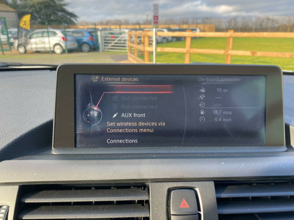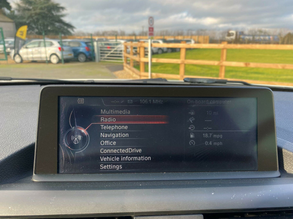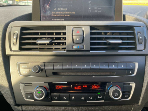. 12V Power Socket - Centre Console, 12V Power Socket - Passenger Footwell, 17in Alloy Wheels - Light Star Spoke - 379, 6.5in Colour Display Screen, ABS - Anti Lock Braking System, ASC - Automatic Stability Control, Active Differential Brake, Air Conditioning - Manual, Airbags - Curtain, Airbags - Driver, Airbags - Front Side, Airbags - Passenger, Airbags - Passenger Deactivation, Alarm System Thatcham 1 with Remote Control, Ambiance Lighting - Switchable, Ambient Interior Lighting, Armrest - Front and Rear Integrated into Door Trim, Armrest - Front with Sliding Adjustment, Auxiliary Input, BMW Professional Radio - Single CD and MP3, Belt Force Limiters - Front, Bluetooth Hands Free with USB Audio Interface, Brake Assist, Brake Drying, Brake Pad Wear Indicator - Front and Rear, Bumpers - Body Colour, CBC - Cornering Brake Control, Central Locking - Remote, Child Proof Locking System - Rear Doors, Child Seat ISOFIX Attachment - Rear x2, Comfort Go Keyless Engine Start, Crash Sensor - Activating Central Locking-Hazard Warning Lights-Fuel Cut Off, Cup Holders, DAB Digital Radio, DBC - Dynamic Brake Control, DSC - Dynamic Stability Control Plus, DTC - Dynamic Traction Control, Daytime Running Lights, Door Handles - Body Colour, Door Mirrors - Body Coloured Housing, Door Mirrors - Electric and Heated, Door Sill Finishers - Sport Designation, Drive Performance Control - ECO PRO - Comfort - Sport - Sport Plus, Dynamic Brake Lights, Electric Windows - Front and Rear with Open-Close Fingertip Control, First Aid Kit, Floor Mats - Velour, Follow Me Home Headlight Function, Front Air Inlet with High-Gloss Black Finisher, Front Fog Lights, Grab Handles - in Roof Lining x4, Halogen Headlights, Handbrake Lever - Gear Lever Knob and Gaiters in Leather, Head Restraints - Rear and Folding, Headlights - Automatic Activation, Heat Protection Glazing with Green Tint, Heated Windscreen Washer Jets, High Level Third Brake Light, Hill Start Assist, Interior Lighting, Interior Trim - Black High Gloss, Interior Trim - Black High Gloss with Coral Red Finisher, Interior Trim Finisher - Coral Red, Kidney Grille - Chrome Extra-Wide High-Gloss Black Vertical Slats, Lights-On Warning, Locking Wheel Bolts, Luggage Compartment - Lashing Eyes x2, Mobility Tyre Sealing System, Multifunction Controls for Steering Wheel, Non Smokers Package, OBC - On-Board Computer, Power Steering - Electric, Pyrotechnic Belt Tensioners - Front, Rain Sensor, Rear Window Wiper, Run Flat Tyres, Seats - 60-40 Split Folding Rear, Seats - Third Rear, Side Impact Protection, Sport Multi-Function Leather Steering Wheel - Three Spoke, Steering Column with Manual Reach and Rake Adjustment, Storage Compartment - Rear Centre Console, Sun Visors with Vanity Mirrors and Ticket Holder, TPWS - Tyre Pressure Warning System, Trim Designation Deletion, Tyres - Reduced Rolling Resistance.