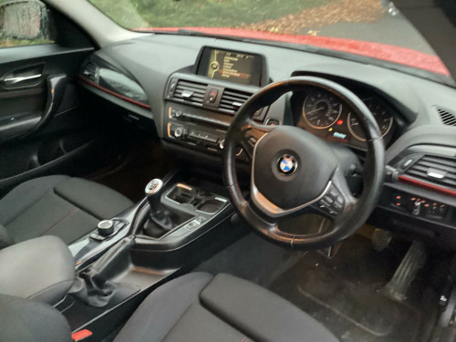 This 2013 BMW 1 Series 116i Sport comes with a full 12 months MOT and a 12 month warranty for your peace of mind. This Euro 6 compliant model boasts a 1.6L petrol engine and a clear vehicle history check, complemented by partial service history. Inside, you'll find Sport seats for comfort, enhanced Bluetooth telephone functionality with USB audio and voice control, and rear Park Distance Control for easier manoeuvring. The exterior features high gloss shadowline trim and sun protection glazing, adding to its stylish appearance.The 116i Sport offers a compelling blend of performance and practicality. Its acceleration from 0-62mph in just 8.5 seconds demonstrates its responsive nature, while the large boot space ensures ample room for luggage or shopping. This particular model also benefits from being in a low insurance group, making it an economical choice for many drivers. These features collectively highlight how this BMW 1 Series provides a superior driving experience compared to other vehicles in its class. ort seats - front, pdc - park distance control - rear, sun protection package, sun protection glazing, enhanced bluetooth telephone functionality with usb audio interface and voice control, exterior trim - high-gloss shadowline, steering wheel - black leather - sport - three spoke, extended storage, windscreen with grey shade band, door mirrors - black housing, track cloth - anthracite/red, 12v power socket - centre console, 12v power socket - passenger footwell, 17in alloy wheels - light star spoke - 379, 6.5in colour display screen, abs - anti lock braking system, asc - automatic stability control, active differential brake, air conditioning - manual, airbags - curtain, airbags - driver, airbags - front side, airbags - passenger, airbags - passenger deactivation, alarm system thatcham 1 with remote control, ambiance lighting - switchable, ambient interior lighting, armrest - front and rear integrated into door trim, armrest - front with sliding adjustment, auxiliary input, bmw online services, bmw professional radio - single cd and mp3, bmw teleservices, belt force limiters - front, bluetooth hands free with usb audio interface, brake assist, brake drying, brake pad wear indicator - front and rear, bumpers - body colour, cbc - cornering brake control, central locking - remote, child proof locking system - rear doors, child seat isofix attachment - rear x2, comfort go keyless engine start, crash sensor - activating central locking-hazard warning lights-fuel cut off, cup holders, dab digital radio, dbc - dynamic brake control, dsc - dynamic stability control plus, dtc - dynamic traction control, daytime running lights, door handles - body colour, door mirrors - body coloured housing, door mirrors - electric and heated, door sill finishers - sport designation, drive performance control - eco pro - comfort - sport - sport plus, dynamic brake lights, electric windows - front open and close fingertip control, first aid kit, floor mats - velour, follow me home headlight function, front air inlet with high-gloss black finisher, front fog lights, grab handles - in roof lining x4, halogen headlights, handbrake lever - gear lever knob and gaiters in leather, head restraints - rear and folding, headlights - automatic activation, heat protection glazing with green tint, heated windscreen washer jets, high level third brake light, hill start assist, interior lighting, interior trim - black high gloss, interior trim - black high gloss with coral red finisher, interior trim finisher - coral red, kidney grille - chrome extra-wide high-gloss black vertical slats, lights-on warning, locking wheel bolts, luggage compartment - lashing eyes x2, mobility tyre sealing system, multifunction controls for steering wheel, non smokers package, obc - on-board computer, power steering - electric, pyrotechnic belt tensioners - front, rain sensor, rear window wiper, run flat tyres, seats - 60-40 split folding rear, seats - third rear, side impact protection, sport multi-function leather steering wheel - three spoke, steering column with manual reach and rake adjustment, storage compartment - rear centre console, sun visors with vanity mirrors and ticket holder, tpws - tyre pressure warning system, trim designation deletion, tyres - reduced rolling resistance
