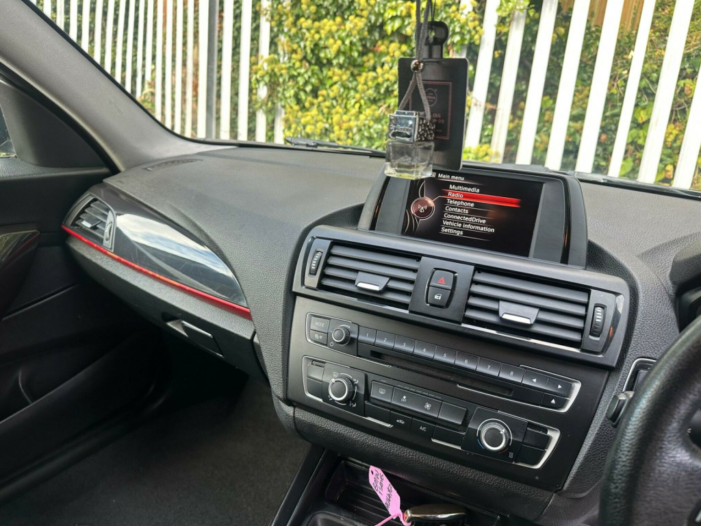 This 2014 BMW 1 Series 116i Sport is presented with a clear vehicle history check, offering peace of mind for its next owner. This particular model features a 1.6 litre petrol engine and meets the Euro 6 emission standards. Inside, you will find Sport Seats for enhanced comfort during your journeys, and manual air conditioning to keep the cabin at your preferred temperature. The Sport trim also includes automatic headlights, which activate when needed, and a Bluetooth hands free system with a USB audio interface for seamless connectivity and music playback. For added convenience when parking, it is equipped with rear Park Distance Control sensors.The BMW 116i Sport demonstrates impressive performance with an acceleration of 0 to 62 miles per hour in just 8.5 seconds, indicating a responsive driving experience. This model also benefits from a low insurance group, which can help to reduce your running costs. Furthermore, it offers a generous boot space, making it a practical choice for carrying luggage or shopping. These highlights collectively suggest that this BMW 1 Series offers a compelling combination of performance, economy, and practicality compared to other vehicles in its class. hanced bluetooth telephone preparation with usb audio interface, pdc - park distance control - rear, bmw emergency call, bmw teleservices, track cloth - anthracite - red highlight with black interior, 12v power socket - centre console, 12v power socket - passenger footwell, 17in alloy wheels - light star spoke - 379, 6.5in colour display screen, abs - anti lock braking system, asc - automatic stability control, active differential brake, air conditioning - manual, air microfilter, airbags - curtain, airbags - driver, airbags - front side, airbags - passenger, airbags - passenger deactivation, alarm system thatcham 1 with remote control, ambiance lighting - switchable, ambient interior lighting, armrest - front and rear integrated into door trim, armrest - front with sliding adjustment, auxiliary input, bmw navigation system, bmw professional radio - single cd and mp3, belt force limiters - front, bluetooth hands free with usb audio interface, brake assist, brake drying, brake pad wear indicator - front and rear, bumpers - body colour, cbc - cornering brake control, central locking - remote, child proof locking system - rear doors, child seat isofix attachment - rear x2, comfort go keyless engine start, crash sensor - activating central locking-hazard warning lights-fuel cut off, cup holders, dab digital radio, dbc - dynamic brake control, dsc - dynamic stability control plus, dtc - dynamic traction control, daytime running lights, door handles - body colour, door mirrors - body coloured housing, door mirrors - electric and heated, door sill finishers - sport designation, drive performance control - eco pro - comfort - sport - sport plus, dynamic brake lights, electric windows - front, first aid kit, floor mats - velour, follow me home headlight function, front air inlet with high-gloss black finisher, front fog lights, grab handles - in roof lining x4, halogen headlights, handbrake lever - gear lever knob and gaiters in leather, head restraints - rear and folding, headlights - automatic activation, heat protection glazing with green tint, heated windscreen washer jets, high level third brake light, hill start assist, interior lighting, interior trim - black high gloss, interior trim - black high gloss with coral red finisher, interior trim finisher - coral red, kidney grille - chrome extra-wide high-gloss black vertical slats, lights-on warning, locking wheel bolts, luggage compartment - lashing eyes x2, mobility tyre sealing system, multifunction controls for steering wheel, non smokers package, obc - on-board computer, power steering - electric, pyrotechnic belt tensioners - front, rain sensor, rear window wiper, run flat tyres, seats - 60-40 split folding rear, seats - third rear, side impact protection, sport multi-function leather steering wheel - three spoke, sport seats - front, steering column with manual reach and rake adjustment, storage compartment - rear centre console, sun visors with vanity mirrors and ticket holder, tpws - tyre pressure warning system, trim designation deletion, tyres - reduced rolling resistance