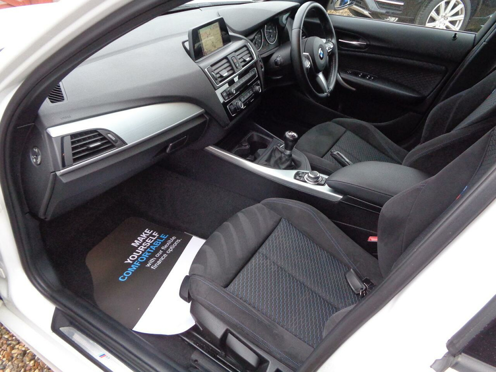 A Stunning 2 Owner 118 M-Sport with Service History, Specification includes Satellite Navigation, DAB Radio, CD, Reverse Parking Sensors, Bluetooth Phone, Bluetooth Audio, Electric Power Fold Mirrors, Electric Windows, Remote Central Locking, Alloy Wheels…………………. See Below For Further Specification................. The additional specification details below are provided by Autotrader not by Free Spirit. They are a general guide for the most recent model of this vehicle but may not be precisely correct for this actual vehicle so please don’t rely on them. We will happily assist you in carefully checking that this vehicle’s specification is in line with your requirements.Free Spirit Automotive have been trading since 2004. We fund cars with BMW Alphera Finance & have access to multiple lenders offering different lending criteria to accommodate all customer credit scores. All vehicles are fully Health Checked in our purpose-built workshop prior to delivery & are Serviced & MOT’d as required. Every vehicle comes with a Warranty as standard. We stock between 70-100 cars and have more vehicles stocked than advertised. Part Exchange welcome. We have sold & delivered over 10,000 cars since we opened in 2004.. 12V Power Socket - Centre Console, 12V Power Socket - Passenger Footwell, 6.5in Colour Display Screen, Auxiliary Input, Bluetooth Hands Free with USB Audio Interface, BMW Emergency Call, BMW Professional Radio - Single CD and MP3, BMW TeleServices, DAB Digital Radio, Shark Fin Aerial, Speakers x6, Brake Pad Wear Indicator, Check Control Warning System, Drive Performance Control with ECO PRO - Comfort and Sport Modes, Lights-on Audio Warning, OBC - On-Board Computer, Optimum Shift Indicator, TPMS - Tyre Pressure Monitoring System, 18in Alloy Wheels - M Light Double Spoke - 461M, Bumpers - Body Colour, Door Handles - Body Colour, Door Mirrors - Body Coloured, Door Mirrors - Electric and Heated, Electric Windows - Front and Rear with Open-Close Fingertip Control, Exhaust Tailpipe - Chrome, Exterior Trim - High-Gloss Shadowline, Heat Protection Glazing with Green Tint, Heated Windscreen Washer Jets, Kidney Grille - Extra Wide High Gloss Black Vertical Slats, LED Headlight Package, Locking Wheel Bolts, M Aerodynamic Bodystyling, M Sport Package, Roof Mouldings - Body Colour, Run Flat Tyres, Welcome Lighting, Daytime Running Lights, Follow Me Home Headlight Function, Front Fog Lights, Halogen Headlights, Headlights - Automatic Activation, Headlights - Beam Throw Control, High Level Third Brake Light, LED Headlights, Air Conditioning - Manual, Ambient Lighting - Switchable BMW Classic Orange - Cold White - LED, Armrest - Front and Rear Integrated into Door Trim, Armrest - Front with Sliding Adjustment, Cup Holders x2, Door Pockets on Rear Doors, Door Sill Finishers - M Designation, Extended Storage, Floor Mats - Velour, Gear Knob - Leather, Glove Compartment - Opener with Chrome Trim, Grab Handles - Integrated in Roof Lining x4, Handbrake - Leather, Head Restraints - Rear and Folding, Headlining - Anthracite, Interior Lighting - Front and Rear Centre, Interior Trim - Aluminium Hexagon, Luggage Compartment - Lashing Eyes, Multifunction Controls for Steering Wheel, Personal Profile, Rain Sensor, Seats - Driver Manual Adjustment, Seats - Passenger Manual Adjustment, Seats - Split Rear 60-40, Smokers Package Deletion, Sport Seats - Front, Start-Stop Button with Comfort Go Keyless Engine Start, Steering Column with Manual Reach and Rake Adjustment, Steering Wheel - Leather - M Sport, Storage Compartment in Rear Centre Console, Storage Nets on Seat Backrests, Sun Visors with Illuminated Vanity Mirrors and Ticket Pocket, Trim Finisher - Estoril Blue - Matt, ADB Sport - Active Differential Brake, Power Steering - Electric, Suspension - M Sport, ABS - Anti Lock Braking System, Airbags - Curtain Head Protection system, Airbags - Driver, Airbags - Front Side, Airbags - Passenger, Airbags - Passenger Deactivation, Alarm System Thatcham 1 with Remote Control, ASC - Automatic Stability Control, Battery Safety Cut Off, Brake Assist, Brake Drying, CBC - Cornering Brake Control, Central Locking - Remote, Child Proof Locking System - Rear Doors, Child Seat ISOFIX Attachment - Rear, Crash Sensor - Activating Central Locking-Hazard Warning Lights-Fuel Cut Off, DBC - Dynamic Brake Control, DSC - Dynamic Stability Control Plus, DTC - Dynamic Traction Control, Dynamic Brake Lights, Engine Immobiliser, First Aid Kit, Hill Start Assist, Speed Limit Function, Warning Triangle, Alpine White, BMW Navigation Package, Driver Comfort Package, Enhanced Bluetooth Telephone Preparation with USB Audio Interface, Hexagon Cloth-Alcantara - Anthracite with Black Interior, Sun Protection Glazing.