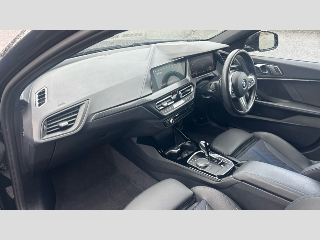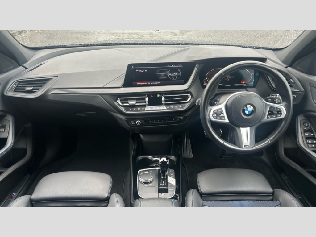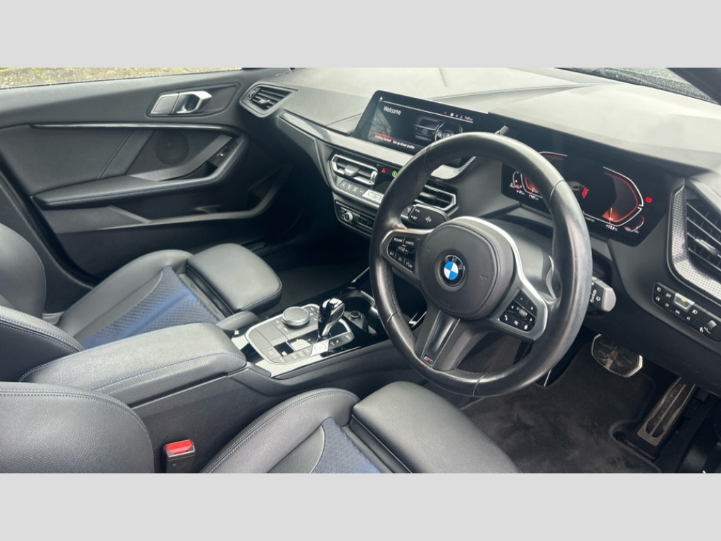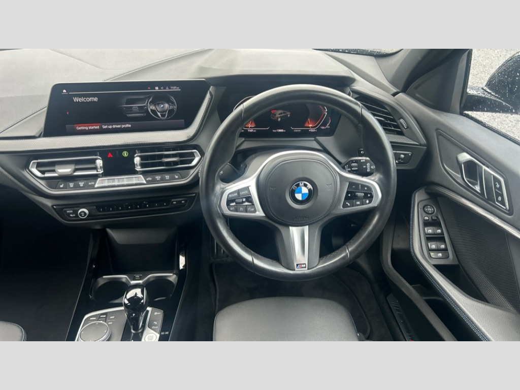 BMW 1 Series 116d M Sport 5dr Step Auto [Live Cockpit Pro] Active guard plus, Attentiveness assist, BMW ConnectedDrive online services, BMW Teleservices, Check Control warning system for monitoring of lights and door/luggage compartment open warning, Cruise control with brake assist, Eco pro mode, Front axle single joint with specific axle kinematics to minimise drive influences on steering + provide increased rigidity agile driving behaviour, Integrated owners handbook, Lane departure warning system, Oil sensor for level and grade, On board computer, Optimum shift indicator, Personal Profile, Pull away assistant, Rigidly mounted rear subframe - Multi link construction with separate spring / damper configuration and excellent driving characteristics, Speed limit Info including no-overtaking indicator, Speed limiter, AdBlue tank, Aluminium lightweight construction, Anti roll bar front and rear, Balancer shaft, Diesel particulate filter, Drive Performance Control, Electronic differential lock, M sport suspension, Single turbo charger with variable vane geometry, Twin tube gas filled shock absorbers with degressive characteristic curve, DAB Digital radio, Auto dimming rear view mirror, Automatic headlight beam throw control, Automatic windscreen wipers and automatic headlight, Body colour door handles, Body colour mirror caps, Body colour roof trims, Chrome 'M' logo side designation, Chrome exhaust twin tailpipes round 90mm in left, Chrome kidney grille frame with Satin Aluminium struts, Direction indicator side lights in exterior mirrors, Fading support, Folding side mirrors with auto dimming/folding wing mirrors with auto dimming, Follow me home headlights, Front and rear bumper system with replaceable deformation elements, Front and rear electric windows with open and close fingertip control, anti trap facility and comfort closing, Front door sill finishers in black plastic with M designation in metallic look, Green tinted heat protection glazing, Heated, electrically adjustable exterior mirror aspheric on driver side, convex on passenger side, High gloss shadowline window frame, Recess cover mirror frames and B/C pillar embelisher trim, High level third brake light, Integrated front windscreen with washer jets, LED daytime running lights, LED eyebrow turn indicators, LED front fog lights, LED Headlights, Lightweight engineering, Matt black air guide grilles, Matt black wheel arch trim, Model designation on electric bootlid, Nearside reverse light in rear light cluster, Preparation for high beam assistant, Rear fog lights, Rear side wing doors, Rear window wiper, Shark fin antenna, Trailer stabilisation logic, Visible VIN plate, Welcome lighting, 12V power socket in front centre console with blanking plug, 3 rear seat head restraints, 3 seat bench in 2nd row, 3 spoke sports leather steering wheel with black leather and stitching, pearl chrome decorative finish, specific M Badge, Anthracite headlining, Black boot net with lashing eyes, Cargo function on 2nd seat row, Child seat ISOFIX attachment for two outer rear seats and front passenger seat with anchorage points, Conditioned based service, Driver and front passenger seat heating, Folding rear clothes hook, Four grab handles integrated in roof lining, Front and rear door pockets with bottle holders, Front and rear side armrest integrated into door trim, Front armrest, Front sports seats, Glove compartment, Height adjustable front head restraints, Luggage compartment for bag hooks on left and right, foldable luggage compartment liner and four lashing eyelets, Manual adjust steering wheel, Multi-function controls for steering wheel, Single front passenger seat, Storage compartment in centre console, Sun visors with vanity mirrors and insert tab, Two front centre console cupholders, Two zone automatic air conditioning, Velour floor mats, Additional interior lighting pack - 1 Series, BMW live cockpit professional pack- 1 Series, Connected pack professional - 1 Series, Interior lights pack - 1 Series, M Sport exterior styling aerodynamics pack - 1 Series, 2 tone horn, 3 point seatbelts on all seats, front pyrotechnic belt tensioners, stopper and belt force limiters, rear coded belt buckles, Airbags - Front driver/passenger, front and rear curtain head protection, front side, manual deactivation of front passenger airbag, Anti lock braking system (ABS) with brake assist, BMW emergency call, Brake drying, Braking readiness, Child proof locking system in rear door, City braking function, Comfort modes, Cornering brake control, Crash sensor activating central locking release, hazard warning lights, fuel cut off, interior lighting + activation of safety battery terminal clamp, Driver and front passenger seat belt security check, Dynamic stability control + (DSC+), Dynamic Traction Control - DTC, Electrically operated hand brake including automatic hold function, Front and rear disc brakes, Seatbelt warning, Side impact protection, Tyre pressure monitoring system, Warning triangle and first aid kit, Central locking switch for all doors, fuel filler cap and luggage compartment, Deadlocking function system to all doors, Drive away locking system on all doors and luggage compartment, Incorrect fuel protection system, Locking wheel bolts, Remote control with integrated key with High-gloss Black inlay and M designation and 1 button for open/ close lock, window, open luggage compartment, Start/stop button illuminated in centre console with keyless engine start and auto start stop deactivation button, Thatcham Cat.1 alarm and immobiliser, Wheel slip limitation close to the actuator (ARB), Contrast stitching on instrument panel, Electrically powered 12V compressor, Reduced rolling resistance tyres
