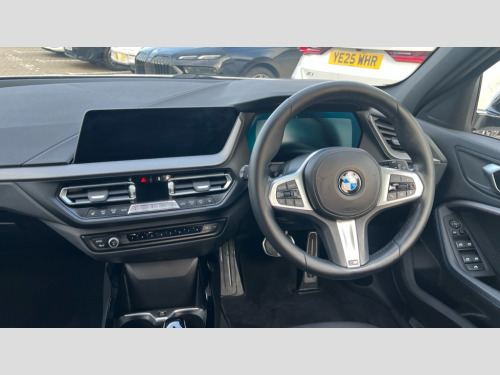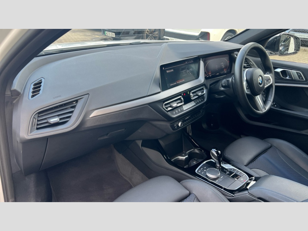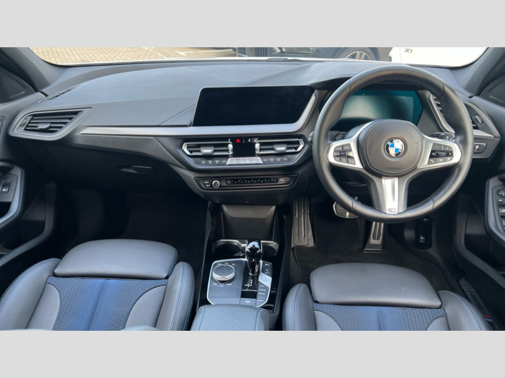 BMW 1 Series 116d M Sport 5dr Step Auto [Live Cockpit Pro] Active guard plus, Attentiveness assist, BMW ConnectedDrive online services, BMW Teleservices, Check Control warning system for monitoring of lights and door/luggage compartment open warning, Cruise control with brake assist, Eco pro mode, Front axle single joint with specific axle kinematics to minimise drive influences on steering + provide increased rigidity agile driving behaviour, Integrated owners handbook, Lane departure warning system, Oil sensor for level and grade, On board computer, Optimum shift indicator, Personal Profile, Pull away assistant, Rigidly mounted rear subframe - Multi link construction with separate spring / damper configuration and excellent driving characteristics, Speed limit Info including no-overtaking indicator, Speed limiter, AdBlue tank, Aluminium lightweight construction, Anti roll bar front and rear, Balancer shaft, Diesel particulate filter, Drive Performance Control, Electronic differential lock, M sport suspension, Single turbo charger with variable vane geometry, Twin tube gas filled shock absorbers with degressive characteristic curve, DAB Digital radio, Auto dimming rear view mirror, Automatic headlight beam throw control, Automatic windscreen wipers and automatic headlight, Body colour door handles, Body colour mirror caps, Body colour roof trims, Chrome 'M' logo side designation, Chrome exhaust twin tailpipes round 90mm in left, Chrome kidney grille frame with Satin Aluminium struts, Direction indicator side lights in exterior mirrors, Fading support, Folding side mirrors with auto dimming/folding wing mirrors with auto dimming, Follow me home headlights, Front and rear bumper system with replaceable deformation elements, Front and rear electric windows with open and close fingertip control, anti trap facility and comfort closing, Front door sill finishers in black plastic with M designation in metallic look, Green tinted heat protection glazing, Heated, electrically adjustable exterior mirror aspheric on driver side, convex on passenger side, High gloss shadowline window frame, Recess cover mirror frames and B/C pillar embelisher trim, High level third brake light, Integrated front windscreen with washer jets, LED daytime running lights, LED eyebrow turn indicators, LED front fog lights, LED Headlights, Lightweight engineering, Matt black air guide grilles, Matt black wheel arch trim, Model designation on electric bootlid, Nearside reverse light in rear light cluster, Preparation for high beam assistant, Rear fog lights, Rear side wing doors, Rear window wiper, Shark fin antenna, Trailer stabilisation logic, Visible VIN plate, Welcome lighting, 12V power socket in front centre console with blanking plug, 3 rear seat head restraints, 3 seat bench in 2nd row, 3 spoke sports leather steering wheel with black leather and stitching, pearl chrome decorative finish, specific M Badge, Anthracite headlining, Black boot net with lashing eyes, Cargo function on 2nd seat row, Child seat ISOFIX attachment for two outer rear seats and front passenger seat with anchorage points, Conditioned based service, Driver and front passenger seat heating, Folding rear clothes hook, Four grab handles integrated in roof lining, Front and rear door pockets with bottle holders, Front and rear side armrest integrated into door trim, Front armrest, Front sports seats, Glove compartment, Height adjustable front head restraints, Luggage compartment for bag hooks on left and right, foldable luggage compartment liner and four lashing eyelets, Manual adjust steering wheel, Multi-function controls for steering wheel, Single front passenger seat, Storage compartment in centre console, Sun visors with vanity mirrors and insert tab, Two front centre console cupholders, Two zone automatic air conditioning, Velour floor mats, Additional interior lighting pack - 1 Series, BMW live cockpit professional pack- 1 Series, Connected pack professional - 1 Series, Interior lights pack - 1 Series, M Sport exterior styling aerodynamics pack - 1 Series, 2 tone horn, 3 point seatbelts on all seats, front pyrotechnic belt tensioners, stopper and belt force limiters, rear coded belt buckles, Airbags - Front driver/passenger, front and rear curtain head protection, front side, manual deactivation of front passenger airbag, Anti lock braking system (ABS) with brake assist, BMW emergency call, Brake drying, Braking readiness, Child proof locking system in rear door, City braking function, Comfort modes, Cornering brake control, Crash sensor activating central locking release, hazard warning lights, fuel cut off, interior lighting + activation of safety battery terminal clamp, Driver and front passenger seat belt security check, Dynamic stability control + (DSC+), Dynamic Traction Control - DTC, Electrically operated hand brake including automatic hold function, Front and rear disc brakes, Seatbelt warning, Side impact protection, Tyre pressure monitoring system, Warning triangle and first aid kit, Central locking switch for all doors, fuel filler cap and luggage compartment, Deadlocking function system to all doors, Drive away locking system on all doors and luggage compartment, Incorrect fuel protection system, Locking wheel bolts, Remote control with integrated key with High-gloss Black inlay and M designation and 1 button for open/ close lock, window, open luggage compartment, Start/stop button illuminated in centre console with keyless engine start and auto start stop deactivation button, Thatcham Cat.1 alarm and immobiliser, Wheel slip limitation close to the actuator (ARB), Contrast stitching on instrument panel, Electrically powered 12V compressor, Reduced rolling resistance tyres