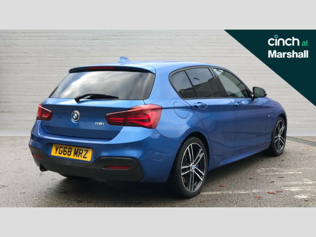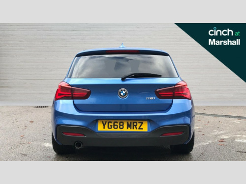 BMW 1 Series 118i [1.5] M Sport Shadow Ed 5dr Step Auto Automatic start/stop system, BMW Online services, BMW remote services, BMW Teleservices, Brake force display, Brake pad wear indicator in front and rear, Check Control warning system for monitoring of lights and door/luggage compartment open warning, Eco pro mode, Instrument cluster with speedometer with miles per hour read out, tachometer and fuel gauge, Lights on warning by audio warning signal when ignition is switched off, Oil temperature display via on board computer in instrument cluster, On board computer - average speed+fuel consumption, service interval, clock/date, odometer/trip meter, outside temperature display and ice warning, On board diagnostics, Optimum shift indicator, Personal Profile, Real time traffic information, Servotronic PAS, Speed limiter, Battery age recognition function, Drive Performance Control, BMW professional radio with CD player, DAB Digital radio, Harman/Kardon loudspeaker system, Body colour door handles, Body colour front and rear bumpers, Body colour mirror caps, Body colour roof mouldings, Clear lenses direction indicator lights, Dark chrome exhaust tailpipe, Darkened rear lights with LED light bars, Daytime driving lights, Direction indicator side lights in exterior mirrors, Dynamic brake lights, Electrically adjustable heated door mirrors and washer jets, Follow me home headlights, Front and rear bumper system with replaceable deformation elements, Front and rear electric windows with open and close fingertip control, anti trap facility and comfort closing, Green tinted heat protection glazing, Headlight beam throw control, Heated windscreen washer jets, High gloss black kidney grille with black slats, High level third brake light, Lightweight engineering, M aerodynamic bodystyling, Nearside reverse light in rear light cluster, Offside rear fog lights, Rain sensor including auto headlights activation, Rear window aerial, Rear window wiper, Shark fin antenna, Sun protection glass, Visible VIN plate, Welcome lighting, 12V power socket in centre console, 12V power socket in passenger footwell, 60/40 split folding rear seat, Anthracite headlining, Anthracite Velour floor mats, Conditioned based service, Door sill finishers with illuminated M designation, Four grab handles integrated in roof lining, Front and rear side armrest integrated into door trim, Front folding sliding armrest with storage compartment, Front head restraints, Front sports seats with electric side bolster adjustment, Front storage compartment in centre console and in door trim, Front/rear courtesy lights with soft on/off dimming, Glove box handle with chrome surround, Glovebox, Interior light in front centre interior mirrors and rear centre auto interior light activation when door is opened when ignition switched off, Isofix child seat for two outer rear seats, Leather gear knob and handbrake grip, Luggage compartment access via BMW roundel, M sports multi function leather steering wheel, Manually adjustable steering column, Multi-function controls for steering wheel, Rear folding head restraints, Two cupholders with sliding cover and inlay mat, Two sills lashing eyes in the luggage compartment, 3 point seatbelts on all seats, front pyrotechnic belt tensioners, stopper and belt force limiters, rear coded belt buckles, Active differential brake (ADB), electronic differential lock in DSC-OFF mode, Airbags - Front driver and passenger, front and rear head, front side, curtain head protection, Anti lock braking system (ABS) with brake assist, Automatic Stability Control (ASC), Battery safety cut-off, BMW emergency call, Brake drying, Brake energy regeneration, Braking readiness, Cornering brake control (CBC), Crash sensor activating central locking release, hazard warning lights, Driver and front passenger seat belt security check, DSC+, Dynamic brake control, Dynamic Traction Control - DTC, Front passenger manual airbag deactivation, Front ventilated brake disc, Hill start assist, M Sport braking system, Rear brake discs, Rear child proof door locks, Side impact protection, Twin horns, Tyre pressure monitoring system, Warning triangle and first aid kit, Automatic drive away locking facility, Central locking switch for all doors, fuel filler cap and luggage compartment, Locking wheel bolts, Remote central locking with two Integrate key, one button for opening and closing all lock, open and close window, button for open luggage compartment, Remote control integrated key with blue inset, Start/stop button with comfort go keyless engine start and auto start stop deactivation button, Thatcham Cat.1 alarm and immobiliser, Reduced rolling resistance tyres, Run flat tyres
