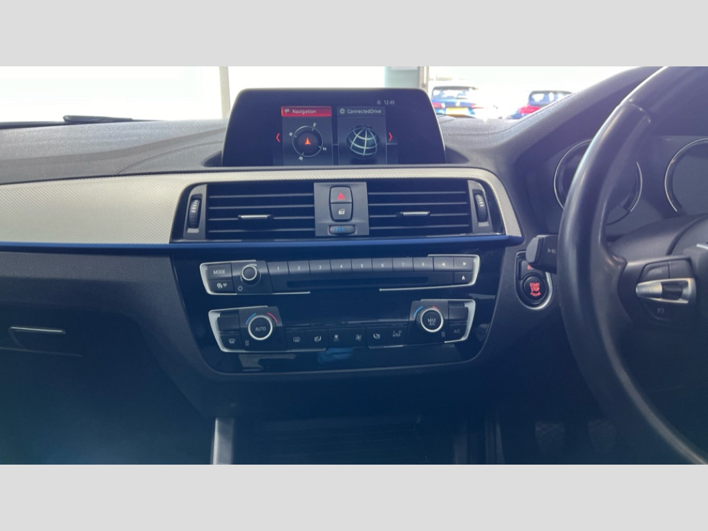 BMW 1 Series 118i [1.5] M Sport Shadow Edition 3dr Automatic start/stop system, BMW Online services, BMW remote services, BMW Teleservices, Brake force display, Brake pad wear indicator in front and rear, Check Control warning system for monitoring of lights and door/luggage compartment open warning, Cruise control with brake assist, Eco pro mode, Instrument cluster with speedometer with miles per hour read out, tachometer and fuel gauge, Lights on warning by audio warning signal when ignition is switched off, Oil temperature display via on board computer in instrument cluster, On board computer - average speed+fuel consumption, service interval, clock/date, odometer/trip meter, outside temperature display and ice warning, On board diagnostics, Optimum shift indicator, Personal Profile, Real time traffic information, Servotronic PAS, Speed limiter, Battery age recognition function, Drive Performance Control, BMW professional radio with CD player, DAB Digital radio, Harman/Kardon loudspeaker system, Body colour door handles, Body colour front and rear bumpers, Body colour mirror caps, Body colour roof mouldings, Clear lenses direction indicator lights, Dark chrome exhaust tailpipe, Darkened rear lights with LED light bars, Daytime driving lights, Direction indicator side lights in exterior mirrors, Dynamic brake lights, Electrically adjustable heated door mirrors and washer jets, Follow me home headlights, Front and rear bumper system with replaceable deformation elements, Front electric windows with open and close fingertip control, anti trap facility and comfort closing, Green tinted heat protection glazing, Headlight beam throw control, Heated windscreen washer jets, High gloss black kidney grille with black slats, High level third brake light, Lightweight engineering, M aerodynamic bodystyling, Nearside reverse light in rear light cluster, Offside rear fog lights, Rain sensor including auto headlights activation, Rear window aerial, Rear window wiper, Shark fin antenna, Sun protection glass, Visible VIN plate, Welcome lighting, 12V power socket in centre console, 12V power socket in passenger footwell, 60/40 split folding rear seat, Ambient lighting - switchable BMW classic orange/ cold white LED, Anthracite headlining, Anthracite Velour front floor mats, Conditioned based service, Door sill finishers with illuminated M designation, Front and rear side armrest integrated into door trim, Front folding sliding armrest with storage compartment, Front head restraints, Front sports seats with electric side bolster adjustment, Front storage compartment in centre console and in door trim, Front/rear courtesy lights with soft on/off dimming, Gearshift lever with M designation, Glove box handle with chrome surround, Glovebox, Interior light in front centre interior mirrors and rear centre auto interior light activation when door is opened when ignition switched off, Isofix child seat for two outer rear seats, Leather gear knob and handbrake grip, Luggage compartment access via BMW roundel, Luggage compartment lighting, M sports multi function leather steering wheel, Manually adjustable steering column, Multi-function controls for steering wheel, Rear folding head restraints, Sunvisors with vanity mirrors and ticket pocket, Two cupholders with sliding cover and inlay mat, Two grab handles integrated in roof lining, Two sills lashing eyes in the luggage compartment, 3 point seatbelts on all seats, front pyrotechnic belt tensioners, stopper and belt force limiters, rear coded belt buckles, Active differential brake (ADB), electronic differential lock in DSC-OFF mode, Airbags - Front driver and passenger, front and rear head, front side, curtain head protection, Anti lock braking system (ABS) with brake assist, Automatic Stability Control (ASC), Battery safety cut-off, BMW emergency call, Brake drying, Brake energy regeneration, Braking readiness, Cornering brake control (CBC), Crash sensor activating central locking release, hazard warning lights, Driver and front passenger seat belt security check, DSC+, Dynamic brake control, Dynamic Traction Control - DTC, Front passenger manual airbag deactivation, Front ventilated brake disc, Hill start assist, M Sport braking system, Rear brake discs, Rear child proof door locks, Side impact protection, Twin horns, Tyre pressure monitoring system, Warning triangle and first aid kit, Automatic drive away locking facility, Central locking switch for all doors, fuel filler cap and luggage compartment, Locking wheel bolts, Remote central locking with two Integrate key, one button for opening and closing all lock, open and close window, button for open luggage compartment, Remote control integrated key with blue inset, Start/stop button with comfort go keyless engine start and auto start stop deactivation button, Thatcham Cat.1 alarm and immobiliser, Reduced rolling resistance tyres, Run flat tyres
