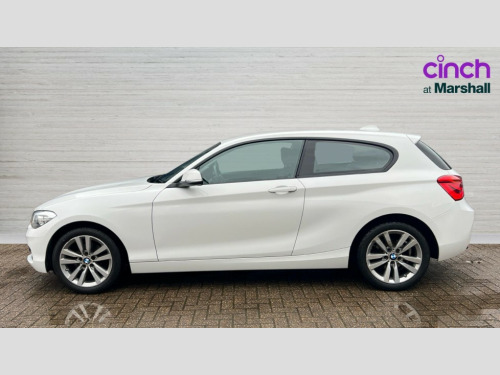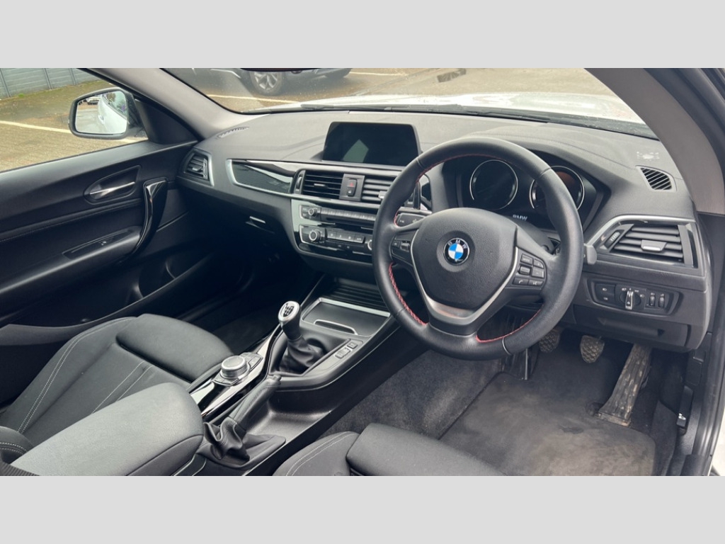 BMW 1 Series 118i [1.5] Sport 3dr [Nav/Servotronic] 'Lights On' Reminder warning buzzer, BMW Online services, BMW remote services, BMW Teleservices, Brake force display, Engine start/stop button, Oil level indicator, On board computer, On board diagnostics, Outside temperature display, Service interval indicator, Servotronic PAS, Speed limiter, Drive Performance Control, BMW professional radio with CD player, DAB Digital radio, Body colour bumpers, Body colour door handles, Dark chrome exhaust tailpipe, Electric front windows + one touch + anti-pinch, Electrically adjustable door mirrors, Follow me home headlights, Green tinted heat insulating glass, Heated door mirrors, Heated windscreen washer jets, High gloss black kidney grille, Rain sensor including auto headlights activation, Rear wash/wipe, Welcome lighting, 12V power socket in centre console, 12V power socket in passenger footwell, 2 grab handles, 60/40 split rear seats, Anthracite Velour floor mats, Door armrests, Driver/passenger sunvisors with ticket holders, Folding rear seat head rests, Front door sill finishers in Sport designation, Front folding/sliding centre armrest with storage, Front head restraints, Front sports seats with electric side bolster adjustment, Front/rear courtesy lights with soft on/off dimming, Glovebox, Isofix rear child seat preparation, Leather gear knob and handbrake grip, Load restraint lashing eyes, Multifunction steering wheel with audio controls, Reach + rake adjustable steering column, Storage compartments in doors, ABS/EBD, Automatic Stability Control (ASC), BMW emergency call, Child locks on rear doors, Cornering brake control (CBC), Crash sensor, Driver/Passenger airbags (Impact dependent), DSC+, Dynamic brake control, Dynamic Traction Control - DTC, Front passenger airbag deactivation, Front side airbags, Hill start assist, ITS head airbags for front/rear, Pyrotechnically pre-tensioned front seatbelts, Seat belt force limiter, Three 3 point rear seatbelts, Tyre pressure monitor, Warning triangle and first aid kit, Automatic drive away locking facility, Electronic immobiliser, Remote central locking, Thatcham Cat.1 alarm, Run flat tyres