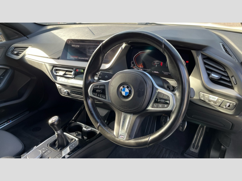BMW 1 Series 118i [136] M Sport 5dr Active guard plus, Attentiveness assist, BMW Online services, BMW Teleservices, Check Control warning system for monitoring of lights and door/luggage compartment open warning, Connected eDrive Services, Cruise control with brake assist, Eco pro mode, Integrated owners handbook, Lane departure warning system, Oil sensor for level and grade, On board computer, Optimum shift indicator, Personal Profile, Pull away assistant, Speed limiter, 6 speed manual transmission, Aluminium lightweight construction, Anti roll bar front and rear, Balancer shaft, Double VANOS, Drive Performance Control, Electronic differential lock, High precision injection, M sport suspension, Petrol Particulate Filter, VALVETRONIC engine management, Bluetooth audio streaming, DAB Digital radio, Auto dimming rear view mirror, Automatic headlight beam throw control, Automatic windscreen wipers and automatic headlight, Body colour door handles, Body colour mirror caps, Chrome 'M' logo side designation, Chrome exhaust tailpipe in single, round (Exhaust tailpipe, stainless steel - single, round), Chrome kidney grille frame with Satin Aluminium struts, Direction indicator side lights in exterior mirrors, Electric folding and anti dazzle exterior mirrors, Fading support, Follow me home headlights, Front and rear bumper system with replaceable deformation elements, Front and rear electric windows with open and close fingertip control, anti trap facility and comfort closing, Front door sill finishers in black plastic with M designation in metallic look, Green tinted heat protection glazing, Heated, electrically adjustable exterior mirror aspheric on driver side, convex on passenger side, High gloss shadowline window frame, Recess cover mirror frames and B/C pillar embelisher trim, High level third brake light, LED daytime running lights, LED eyebrow turn indicators, LED front fog lights, Lightweight engineering, Matt black air guide grilles, Model designation on right side of tailgate, Nearside reverse light in rear light cluster, Preparation for high beam assistant, Rain sensor including auto headlights activation, Rear fog lights, Rear window wiper, Shark fin antenna, Visible VIN plate, Welcome lighting, 12V power socket in centre console, 3 rear seat head restraints, 3 spoke M sports design leather steering wheel finished in nappa leather with specific M badge, Anthracite headlining, Anthracite Velour floor mats, Child seat ISOFIX attachment for two outer rear seats and front passenger seat with anchorage points, Conditioned based service, Dakota leather upholstery with perforation and contrast stitching, Driver and front passenger seat heating, Folding rear clothes hook, Four grab handles integrated in roof lining, Front and rear door pockets, Front and rear door pockets with bottle holders, Front and rear side armrest integrated into door trim, Front armrest foldable with integrated storage compartment, Front sports seats with electric side bolster adjustment, Gearshift lever with M designation, Glove compartment, Height adjustable front head restraints, Manual adjust steering wheel, Multi-function controls for steering wheel, Storage compartment in centre console, Sun visors with vanity mirrors and insert tab, Two zone automatic air conditioning, Additional interior lighting pack - 1 Series, Connected pack professional - 1 Series, Extended storage pack - 1 Series, Interior lights pack - 1 Series, Luggage compartment pack - 1 Series, M Sport exterior styling aerodynamics pack - 1 Series, 2 tone horn, 3 point seatbelts on all seats, front pyrotechnic belt tensioners, stopper and belt force limiters, rear coded belt buckles, Airbags - front driver/passenger, front & rear curtain, front side, Anti lock braking system (ABS) with brake assist, BMW emergency call, Brake drying, Braking readiness, City braking function, Crash sensor activating central locking release, hazard warning lights, fuel cut off, interior lighting + activation of safety battery terminal clamp, Driver and front passenger seat belt security check, Dynamic stability control + (DSC+), Dynamic Traction Control - DTC, Electrically operated hand brake, Front and rear disc brakes, Front passenger manual airbag deactivation, Seatbelt warning, Side impact protection, Tyre pressure monitoring system, Warning triangle and first aid kit, Automatic drive away locking facility, Central locking switch for all doors, fuel filler cap and luggage compartment, Deadlocking function system to all doors, Locking wheel bolts, Remote control with integrated key with High-gloss Black inlay and M designation and 1 button for open/ close lock, window, open luggage compartment, Start/stop button with comfort go keyless engine start and auto start stop deactivation button, Thatcham Cat.1 alarm and immobiliser, Contrast stitching on instrument panel, Reduced rolling resistance tyres