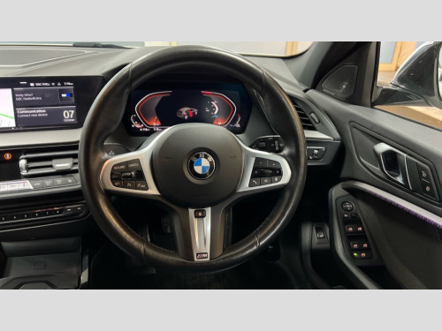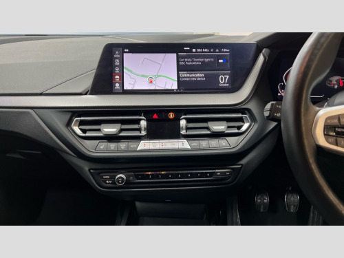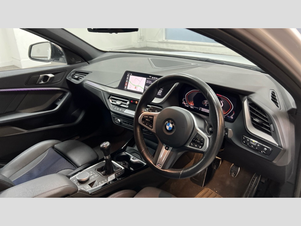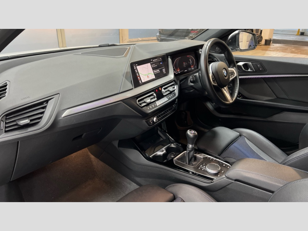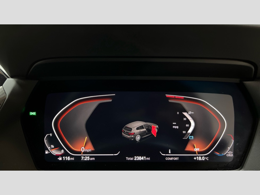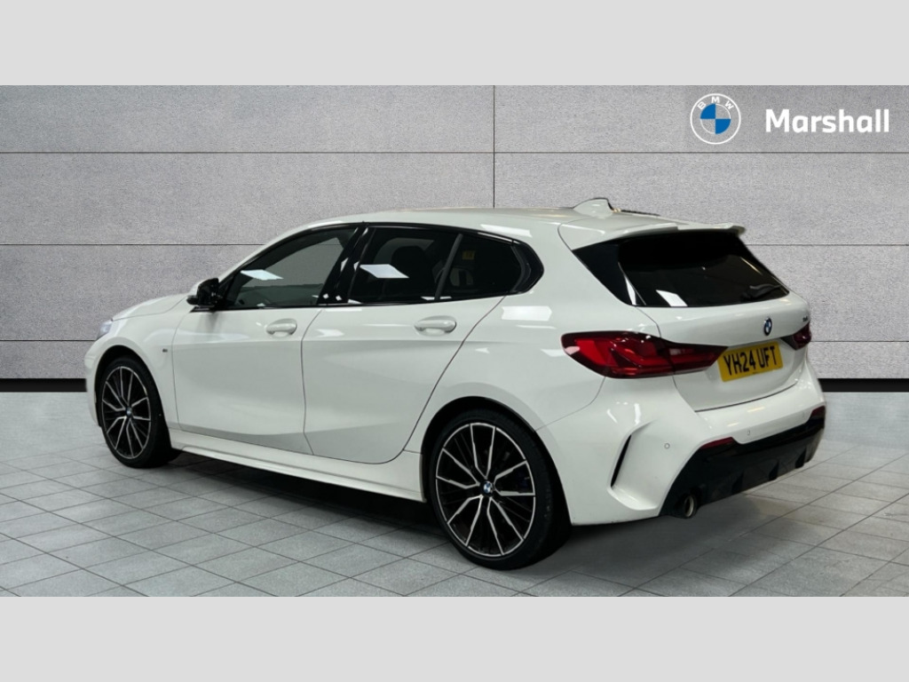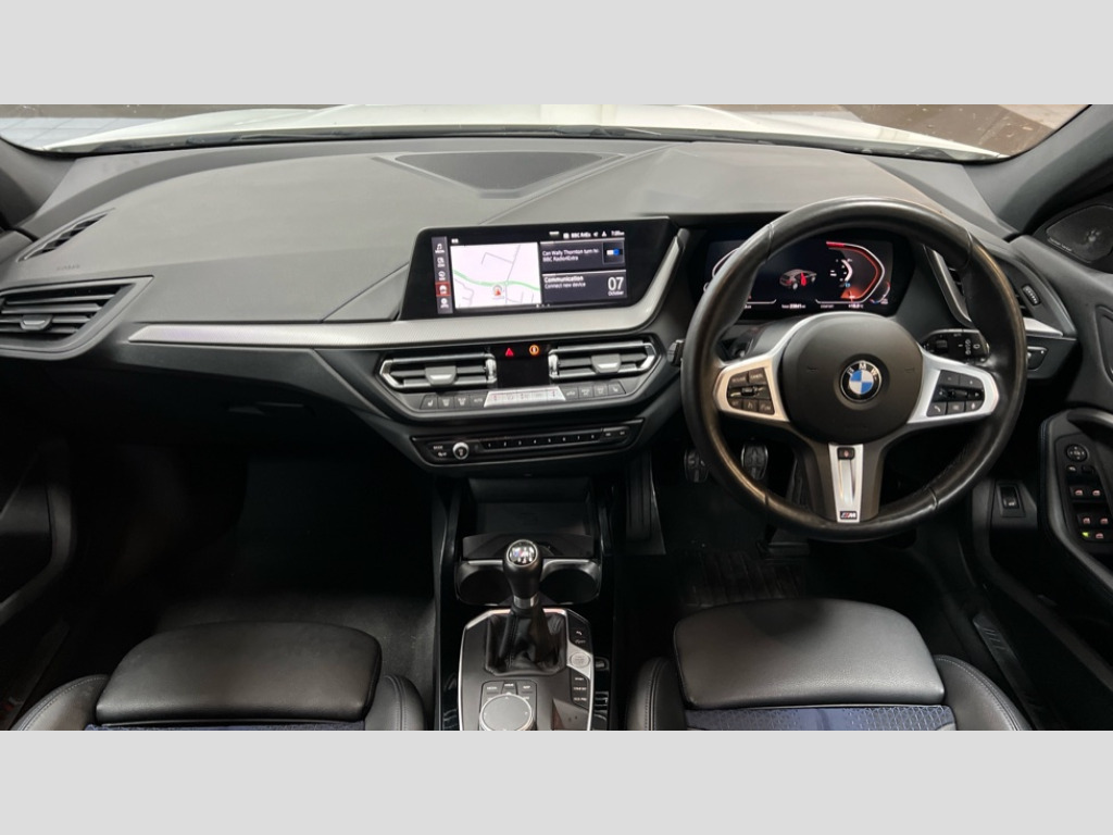 BMW 1 Series 118i [136] M Sport 5dr [Live Cockpit Professional] Active guard plus, Attentiveness assist, BMW ConnectedDrive online services, BMW Teleservices, Check Control warning system for monitoring of lights and door/luggage compartment open warning, Cruise control with speed limiter, Eco pro mode, Front axle single joint with specific axle kinematics to minimise drive influences on steering + provide increased rigidity agile driving behaviour, Integrated owners handbook, Lane departure warning system, Oil sensor for level and grade, On board computer, Optimum shift indicator, Personal Profile, Pull away assistant, Rigidly mounted rear subframe - Multi link construction with separate spring / damper configuration and excellent driving characteristics, Speed limit Info including no-overtaking indicator, Aluminium lightweight construction, Anti roll bar front and rear, Balancer shaft, Double VANOS twin scroll turbocharging system, Drive Performance Control, Electronic differential lock, High precision injection, M sport suspension, Petrol Particulate Filter, Twin tube gas filled shock absorbers with degressive characteristic curve, VALVETRONIC engine management, DAB Digital radio, Auto dimming rear view mirror, Automatic headlight beam throw control, Automatic windscreen wipers and automatic headlight, Body colour door handles, Body colour mirror caps, Body colour roof trims, Chrome 'M' logo side designation, Chrome exhaust twin tailpipes round 90mm in left, Chrome kidney grille frame with Satin Aluminium struts, Direction indicator side lights in exterior mirrors, Electrically adjustable exterior mirror with mirror adjustment switch on drivers armrest and aspheric on driver side, convex on passenger side, Fading support, Folding side mirrors with auto dimming/folding wing mirrors with auto dimming, Follow me home headlights, Front and rear bumper system with replaceable deformation elements, Front and rear electric windows with open and close fingertip control, anti trap facility and comfort closing, Front door sill finishers in black plastic with M designation in metallic look, Green tinted heat protection glazing, High gloss shadowline window frame, Recess cover mirror frames and B/C pillar embelisher trim, High level third brake light, Integrated front windscreen with washer jets, LED daytime running lights, LED eyebrow turn indicators, LED front fog lights, Lightweight engineering, Matt black air guide grilles, Matt black wheel arch trim, Model designation on electric bootlid, Nearside reverse light in rear light cluster, Preparation for high beam assistant, Rear fog lights, Rear side wing doors, Rear window wiper, Shark fin antenna, Trailer stabilisation logic, Visible VIN plate, Welcome lighting, 12V power socket in front centre console with blanking plug, 3 rear seat head restraints, 3 seat bench in 2nd row, 3 spoke sports leather steering wheel in black leather with black stitching and decorative finisher in pearl chrome, specific M badge + leather knob, Anthracite headlining, Black boot net with lashing eyes, Cargo function on 2nd seat row, Child seat ISOFIX attachment for two outer rear seats and front passenger seat with anchorage points, Conditioned based service, Driver and front passenger backrest net on rear, Driver and front passenger seat heating, Driver side folding compartment in instrument panel, Folding rear clothes hook, Four grab handles integrated in roof lining, Front and rear door pockets with bottle holders, Front and rear side armrest integrated into door trim, Front armrest, Front sports seats, Gearshift lever with M designation, Glove compartment, Height adjustable front head restraints, Luggage compartment for bag hooks on left and right, foldable luggage compartment liner and four lashing eyelets, Manual adjust steering wheel, Multi-function controls for steering wheel, Single front passenger seat, Storage compartment in centre console, Storage compartment in luggage compartment, Stowage of the parcel shelf in luggage compartment trim, Sun visors with vanity mirrors and insert tab, Two front centre console cupholders, Two zone automatic air conditioning, Type C two USB ports in rear centre console, Velour floor mats, Additional interior lighting pack - 1 Series, BMW live cockpit professional pack- 1 Series, Connected pack professional - 1 Series, Interior lights pack - 1 Series, M Sport exterior styling aerodynamics pack - 1 Series, 2 tone horn, 3 point seatbelts on all seats, front pyrotechnic belt tensioners, stopper and belt force limiters, rear coded belt buckles, Airbags - Front driver/passenger, front and rear curtain head protection, front side, manual deactivation of front passenger airbag, Anti lock braking system (ABS) with brake assist, BMW emergency call, Brake drying, Braking readiness, Child proof locking system in rear door, City braking function, Comfort modes, Cornering brake control, Crash sensor activating of airbags, Unlocking doors, hazard warning lights, interior light, safety battery terminal, Driver and front passenger seat belt security check, Dynamic stability control + (DSC+), Dynamic Traction Control - DTC, Electrically operated hand brake, Front and rear disc brakes, Seatbelt warning, Side impact protection, Tyre pressure monitoring system, Warning triangle and first aid kit, Central locking switch for all doors, fuel filler cap and luggage compartment, Deadlocking function system to all doors, Drive away locking system on all doors and luggage compartment with de-activated in iDrive settings, Locking wheel bolts, Remote control with integrated key with High-gloss Black inlay and M designation and 1 button for open/ close lock, window, open luggage compartment, Start/stop button illuminated in centre console with keyless engine start and auto start stop deactivation button, Thatcham Cat.1 alarm and immobiliser, Wheel slip limitation close to the actuator (ARB), Contrast stitching on instrument panel, 18" Burnished M double 
