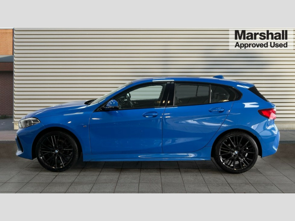 BMW 1 Series 118i [136] M Sport 5dr [Live Cockpit Professional] Active guard plus, Attentiveness assist, Bluetooth / WiFi interface for wireless connection of mobile terminal devices and audio streaming, BMW ConnectedDrive online services, BMW Teleservices, Check Control warning system for monitoring of lights and door/luggage compartment open warning, Cruise control with brake assist, Eco pro mode, Front axle single joint with specific axle kinematics to minimise drive influences on steering + provide increased rigidity agile driving behaviour, Integrated owners handbook, Lane departure warning system, Oil sensor for level and grade, On board computer, Optimum shift indicator, Personal Profile, Pull away assistant, Rigidly mounted rear subframe - Multi link construction with separate spring / damper configuration and excellent driving characteristics, Speed limit Info including no-overtaking indicator, Speed limiter, Aluminium lightweight construction, Anti roll bar front and rear, Balancer shaft, Double VANOS twin scroll turbocharging system, Drive Performance Control, Electronic differential lock, High precision injection, M sport suspension, Petrol Particulate Filter, Twin tube gas filled shock absorbers with degressive characteristic curve, VALVETRONIC engine management, DAB Digital radio, Auto dimming rear view mirror, Automatic headlight beam throw control, Automatic windscreen wipers and automatic headlight, Body colour door handles, Body colour mirror caps, Body colour roof trims, Chrome 'M' logo side designation, Chrome exhaust twin tailpipes round 90mm in left, Chrome kidney grille frame with Satin Aluminium struts, Direction indicator side lights in exterior mirrors, Fading support, Folding side mirrors with auto dimming/folding wing mirrors with auto dimming, Follow me home headlights, Front and rear bumper system with replaceable deformation elements, Front and rear electric windows with open and close fingertip control, anti trap facility and comfort closing, Front door sill finishers in black plastic with M designation in metallic look, Green tinted heat protection glazing, Heated, electrically adjustable exterior mirror aspheric on driver side, convex on passenger side, High gloss shadowline window frame, Recess cover mirror frames and B/C pillar embelisher trim, High level third brake light, Integrated front windscreen with washer jets, LED daytime running lights, LED eyebrow turn indicators, LED front fog lights, Lightweight engineering, Matt black air guide grilles, Matt black wheel arch trim, Model designation on electric bootlid, Nearside reverse light in rear light cluster, Preparation for high beam assistant, Rear fog lights, Rear side wing doors, Rear window wiper, Shark fin antenna, Trailer stabilisation logic, Visible VIN plate, Welcome lighting, 12V power socket in front centre console with blanking plug, 3 rear seat head restraints, 3 seat bench in 2nd row, 3 spoke sports leather steering wheel in black leather with black stitching and decorative finisher in pearl chrome, specific M badge + leather knob, Ambient interior lighting, Anthracite headlining, Child seat ISOFIX attachment for two outer rear seats and front passenger seat with anchorage points, Conditioned based service, Driver and front passenger seat heating, Floor mats in anthracite velour with contrasting colour seam to match contrast stitching on instrument panel, Folding rear clothes hook, Four grab handles integrated in roof lining, Front and rear door pockets with bottle holders, Front and rear side armrest integrated into door trim, Front armrest, Front sports seats, Gearshift lever with M designation, Glove compartment, Height adjustable front head restraints, Luggage compartment for bag hooks on left and right, foldable luggage compartment liner and two lashing eyelets, Manual adjust steering wheel, Multi-function controls for steering wheel, Single front passenger seat, Storage compartment in centre console, Sun visors with vanity mirrors and insert tab, Two front centre console cupholders, Two zone automatic air conditioning, Additional interior lighting pack - 1 Series, Additional storage compartment pack with code 493 -1 series, BMW live cockpit professional pack- 1 Series, Connected pack professional - 1 Series, Interior lights pack - 1 Series, M Sport exterior styling aerodynamics pack - 1 Series, 2 tone horn, 3 point seatbelts on all seats, front pyrotechnic belt tensioners, stopper and belt force limiters, rear coded belt buckles, Airbags - Front driver/passenger, front and rear curtain head protection, front side, manual deactivation of front passenger airbag, Anti lock braking system (ABS) with brake assist, BMW emergency call, Brake drying, Braking readiness, Child proof locking system in rear door, City braking function, Comfort modes, Cornering brake control, Crash sensor activating central locking release, hazard warning lights, fuel cut off, interior lighting + activation of safety battery terminal clamp, Driver and front passenger seat belt security check, Dynamic stability control + (DSC+), Dynamic Traction Control - DTC, Electrically operated hand brake, Front and rear disc brakes, Seatbelt warning, Side impact protection, Tyre pressure monitoring system, Warning triangle and first aid kit, Central locking switch for all doors, fuel filler cap and luggage compartment, Deadlocking function system to all doors, Drive away locking system on all doors and luggage compartment with de-activated in iDrive settings, Locking wheel bolts, Remote control with integrated key with High-gloss Black inlay and M designation and 1 button for open/ close lock, window, open luggage compartment, Start/stop button illuminated in centre console with keyless engine start and auto start stop deactivation button, Thatcham Cat.1 alarm and immobiliser, Wheel slip limitation close to the actuator (ARB), Contrast stitching on instrument panel, Electrically powered 12V compressor, Reduced rolling resi