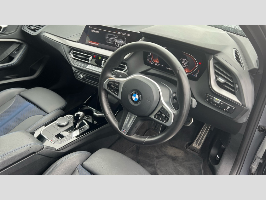 BMW 1 Series 118i [136] M Sport 5dr Step Auto [LCP] Active guard plus, Attentiveness assist, BMW ConnectedDrive online services, BMW Teleservices, Check Control warning system for monitoring of lights and door/luggage compartment open warning, Cruise control with speed limiter, Eco pro mode, Front axle single joint with specific axle kinematics to minimise drive influences on steering + provide increased rigidity agile driving behaviour, Integrated owners handbook, Lane departure warning system, Oil sensor for level and grade, On board computer, Optimum shift indicator, Personal Profile, Pull away assistant, Rigidly mounted rear subframe - Multi link construction with separate spring / damper configuration and excellent driving characteristics, Speed limit Info including no-overtaking indicator, Aluminium lightweight construction, Anti roll bar front and rear, Balancer shaft, Double VANOS twin scroll turbocharging system, Drive Performance Control, Electronic differential lock, High precision injection, M sport suspension, Petrol Particulate Filter, Twin tube gas filled shock absorbers with degressive characteristic curve, VALVETRONIC engine management, DAB Digital radio, Auto dimming rear view mirror, Automatic headlight beam throw control, Automatic windscreen wipers and automatic headlight, Body colour door handles, Body colour mirror caps, Body colour roof trims, Chrome 'M' logo side designation, Chrome exhaust twin tailpipes round 90mm in left, Chrome kidney grille frame with Satin Aluminium struts, Direction indicator side lights in exterior mirrors, Electrically adjustable exterior mirror with mirror adjustment switch on drivers armrest and aspheric on driver side, convex on passenger side, Fading support, Folding side mirrors with auto dimming/folding wing mirrors with auto dimming, Follow me home headlights, Front and rear bumper system with replaceable deformation elements, Front and rear electric windows with open and close fingertip control, anti trap facility and comfort closing, Front door sill finishers in black plastic with M designation in metallic look, Green tinted heat protection glazing, High gloss shadowline window frame, Recess cover mirror frames and B/C pillar embelisher trim, High level third brake light, Integrated front windscreen with washer jets, LED daytime running lights, LED eyebrow turn indicators, LED front fog lights, Lightweight engineering, Matt black air guide grilles, Matt black wheel arch trim, Model designation on electric bootlid, Nearside reverse light in rear light cluster, Preparation for high beam assistant, Rear fog lights, Rear side wing doors, Rear window wiper, Shark fin antenna, Trailer stabilisation logic, Visible VIN plate, Welcome lighting, 12V power socket in front centre console with blanking plug, 3 rear seat head restraints, 3 seat bench in 2nd row, 3 spoke sports leather steering wheel with black leather and stitching, pearl chrome decorative finish, specific M Badge, Anthracite headlining, Black boot net with lashing eyes, Cargo function on 2nd seat row, Child seat ISOFIX attachment for two outer rear seats and front passenger seat with anchorage points, Conditioned based service, Driver and front passenger backrest net on rear, Driver and front passenger seat heating, Driver side folding compartment in instrument panel, Folding rear clothes hook, Four grab handles integrated in roof lining, Front and rear door pockets with bottle holders, Front and rear side armrest integrated into door trim, Front armrest, Front sports seats, Glove compartment, Height adjustable front head restraints, Luggage compartment for bag hooks on left and right, foldable luggage compartment liner and four lashing eyelets, Manual adjust steering wheel, Multi-function controls for steering wheel, Single front passenger seat, Storage compartment in centre console, Storage compartment in luggage compartment, Stowage of the parcel shelf in luggage compartment trim, Sun visors with vanity mirrors and insert tab, Two front centre console cupholders, Two zone automatic air conditioning, Type C two USB ports in rear centre console, Velour floor mats, Additional interior lighting pack - 1 Series, BMW live cockpit professional pack- 1 Series, Connected pack professional - 1 Series, Interior lights pack - 1 Series, M Sport exterior styling aerodynamics pack - 1 Series, 2 tone horn, 3 point seatbelts on all seats, front pyrotechnic belt tensioners, stopper and belt force limiters, rear coded belt buckles, Airbags - Front driver/passenger, front and rear curtain head protection, front side, manual deactivation of front passenger airbag, Anti lock braking system (ABS) with brake assist, BMW emergency call, Brake drying, Braking readiness, Child proof locking system in rear door, City braking function, Comfort modes, Cornering brake control, Crash sensor activating of airbags, Unlocking doors, hazard warning lights, interior light, safety battery terminal, Driver and front passenger seat belt security check, Dynamic stability control + (DSC+), Dynamic Traction Control - DTC, Electrically operated hand brake including automatic hold function, Front and rear disc brakes, Seatbelt warning, Side impact protection, Tyre pressure monitoring system, Warning triangle and first aid kit, Central locking switch for all doors, fuel filler cap and luggage compartment, Deadlocking function system to all doors, Drive away locking system on all doors and luggage compartment with de-activated in iDrive settings, Locking wheel bolts, Remote control with integrated key with High-gloss Black inlay and M designation and 1 button for open/ close lock, window, open luggage compartment, Start/stop button illuminated in centre console with keyless engine start and auto start stop deactivation button, Thatcham Cat.1 alarm and immobiliser, Wheel slip limitation close to the actuator (ARB), Contrast stitching on instrument panel, 18" Burnished M double spoke bi-colour alloy wheels finished in o