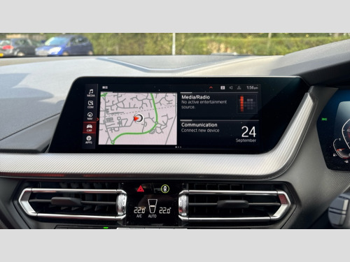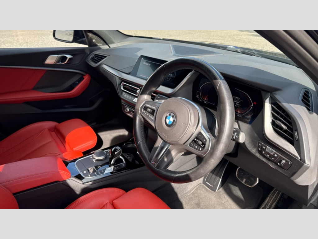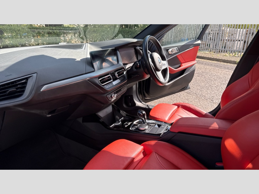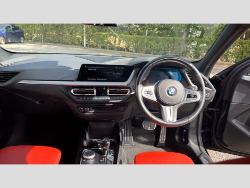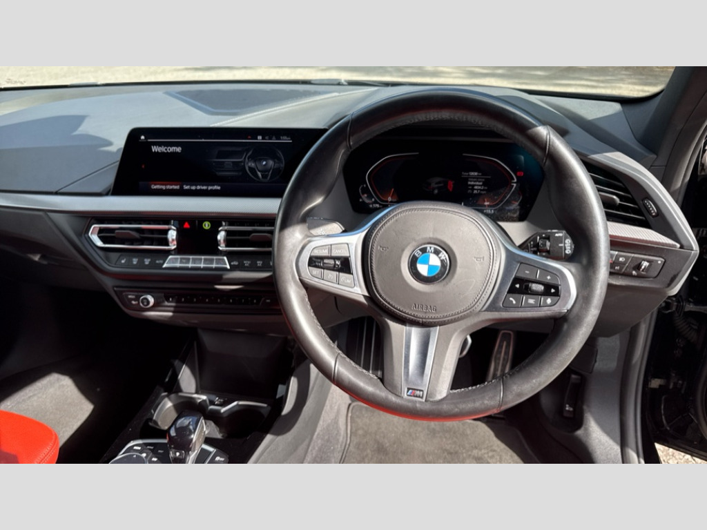 BMW 1 Series 118i [136] M Sport 5dr Step Auto [LCP] Active guard plus, Attentiveness assist, BMW ConnectedDrive online services, BMW Teleservices, Check Control warning system for monitoring of lights and door/luggage compartment open warning, Cruise control with speed limiter, Eco pro mode, Front axle single joint with specific axle kinematics to minimise drive influences on steering + provide increased rigidity agile driving behaviour, Integrated owners handbook, Lane departure warning system, Oil sensor for level and grade, On board computer, Optimum shift indicator, Personal Profile, Pull away assistant, Rigidly mounted rear subframe - Multi link construction with separate spring / damper configuration and excellent driving characteristics, Speed limit Info including no-overtaking indicator, Aluminium lightweight construction, Anti roll bar front and rear, Balancer shaft, Double VANOS twin scroll turbocharging system, Drive Performance Control, Electronic differential lock, High precision injection, M sport suspension, Petrol Particulate Filter, Twin tube gas filled shock absorbers with degressive characteristic curve, VALVETRONIC engine management, DAB Digital radio, Auto dimming rear view mirror, Automatic headlight beam throw control, Automatic windscreen wipers and automatic headlight, Body colour door handles, Body colour mirror caps, Body colour roof trims, Chrome 'M' logo side designation, Chrome exhaust twin tailpipes round 90mm in left, Chrome kidney grille frame with Satin Aluminium struts, Direction indicator side lights in exterior mirrors, Electrically adjustable exterior mirror with mirror adjustment switch on drivers armrest and aspheric on driver side, convex on passenger side, Fading support, Folding side mirrors with auto dimming/folding wing mirrors with auto dimming, Follow me home headlights, Front and rear bumper system with replaceable deformation elements, Front and rear electric windows with open and close fingertip control, anti trap facility and comfort closing, Front door sill finishers in black plastic with M designation in metallic look, Green tinted heat protection glazing, High gloss shadowline window frame, Recess cover mirror frames and B/C pillar embelisher trim, High level third brake light, Integrated front windscreen with washer jets, LED daytime running lights, LED eyebrow turn indicators, LED front fog lights, Lightweight engineering, Matt black air guide grilles, Matt black wheel arch trim, Model designation on electric bootlid, Nearside reverse light in rear light cluster, Preparation for high beam assistant, Rear fog lights, Rear side wing doors, Rear window wiper, Shark fin antenna, Trailer stabilisation logic, Visible VIN plate, Welcome lighting, 12V power socket in front centre console with blanking plug, 3 rear seat head restraints, 3 seat bench in 2nd row, 3 spoke sports leather steering wheel with black leather and stitching, pearl chrome decorative finish, specific M Badge, Anthracite headlining, Black boot net with lashing eyes, Cargo function on 2nd seat row, Child seat ISOFIX attachment for two outer rear seats and front passenger seat with anchorage points, Conditioned based service, Driver and front passenger backrest net on rear, Driver and front passenger seat heating, Driver side folding compartment in instrument panel, Folding rear clothes hook, Four grab handles integrated in roof lining, Front and rear door pockets with bottle holders, Front and rear side armrest integrated into door trim, Front armrest, Front sports seats, Glove compartment, Height adjustable front head restraints, Luggage compartment for bag hooks on left and right, foldable luggage compartment liner and four lashing eyelets, Manual adjust steering wheel, Multi-function controls for steering wheel, Single front passenger seat, Storage compartment in centre console, Storage compartment in luggage compartment, Stowage of the parcel shelf in luggage compartment trim, Sun visors with vanity mirrors and insert tab, Two front centre console cupholders, Two zone automatic air conditioning, Type C two USB ports in rear centre console, Velour floor mats, Additional interior lighting pack - 1 Series, BMW live cockpit professional pack- 1 Series, Connected pack professional - 1 Series, Interior lights pack - 1 Series, M Sport exterior styling aerodynamics pack - 1 Series, 2 tone horn, 3 point seatbelts on all seats, front pyrotechnic belt tensioners, stopper and belt force limiters, rear coded belt buckles, Airbags - Front driver/passenger, front and rear curtain head protection, front side, manual deactivation of front passenger airbag, Anti lock braking system (ABS) with brake assist, BMW emergency call, Brake drying, Braking readiness, Child proof locking system in rear door, City braking function, Comfort modes, Cornering brake control, Crash sensor activating of airbags, Unlocking doors, hazard warning lights, interior light, safety battery terminal, Driver and front passenger seat belt security check, Dynamic stability control + (DSC+), Dynamic Traction Control - DTC, Electrically operated hand brake including automatic hold function, Front and rear disc brakes, Seatbelt warning, Side impact protection, Tyre pressure monitoring system, Warning triangle and first aid kit, Central locking switch for all doors, fuel filler cap and luggage compartment, Deadlocking function system to all doors, Drive away locking system on all doors and luggage compartment with de-activated in iDrive settings, Locking wheel bolts, Remote control with integrated key with High-gloss Black inlay and M designation and 1 button for open/ close lock, window, open luggage compartment, Start/stop button illuminated in centre console with keyless engine start and auto start stop deactivation button, Thatcham Cat.1 alarm and immobiliser, Wheel slip limitation close to the actuator (ARB), Contrast stitching on instrument panel, Electrically powered 12V compressor, Reduced rolling resistance t
