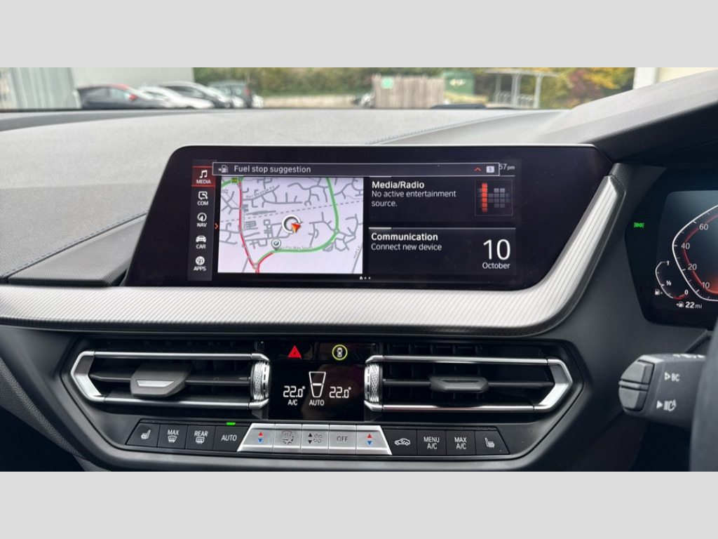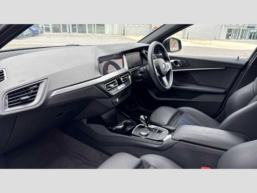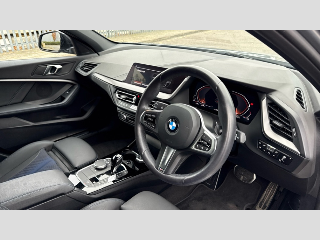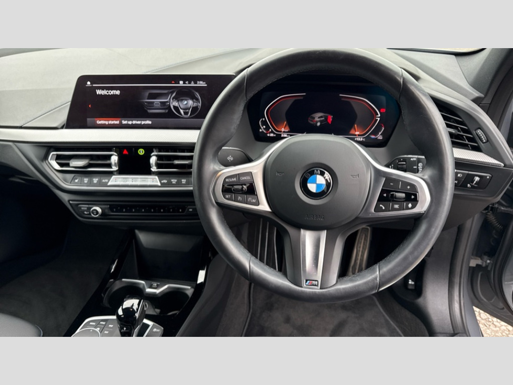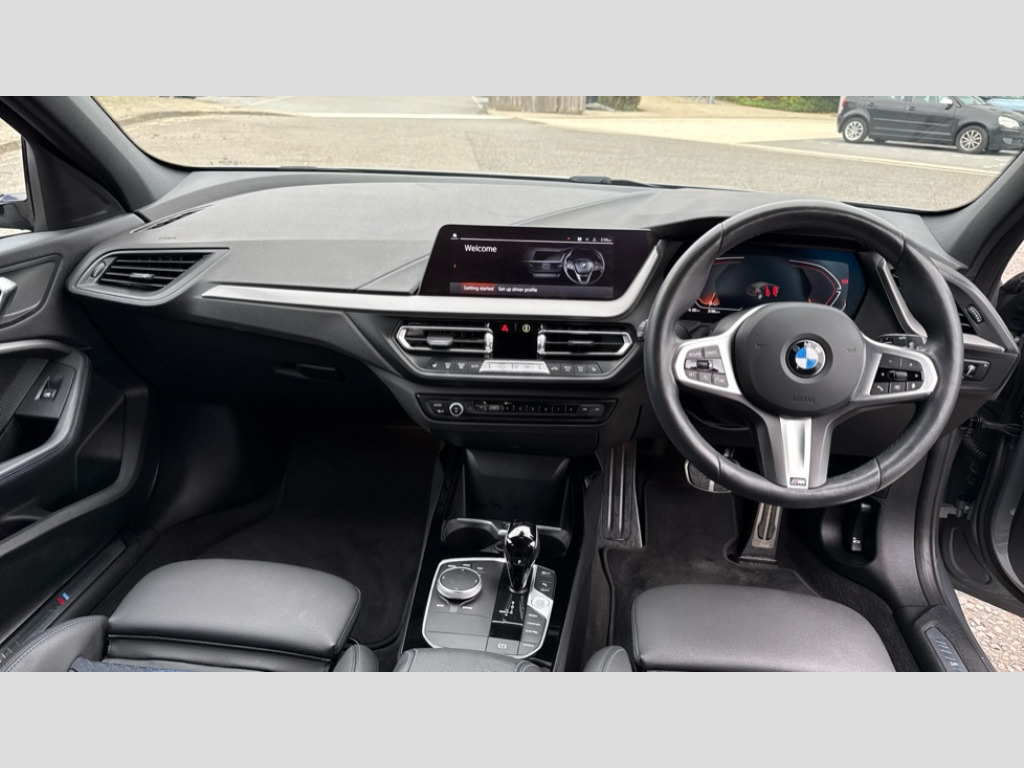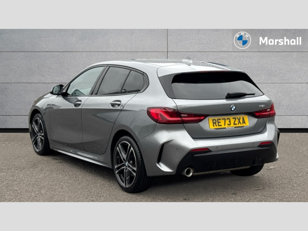 BMW 1 Series 118i [136] M Sport 5dr Step Auto [LCP] Active guard plus, Attentiveness assist, BMW ConnectedDrive online services, BMW Teleservices, Check Control warning system for monitoring of lights and door/luggage compartment open warning, Cruise control with speed limiter, Eco pro mode, Front axle single joint with specific axle kinematics to minimise drive influences on steering + provide increased rigidity agile driving behaviour, Integrated owners handbook, Lane departure warning system, Oil sensor for level and grade, On board computer, Optimum shift indicator, Personal Profile, Pull away assistant, Rigidly mounted rear subframe - Multi link construction with separate spring / damper configuration and excellent driving characteristics, Speed limit Info including no-overtaking indicator, Aluminium lightweight construction, Anti roll bar front and rear, Balancer shaft, Double VANOS twin scroll turbocharging system, Drive Performance Control, Electronic differential lock, High precision injection, M sport suspension, Petrol Particulate Filter, Twin tube gas filled shock absorbers with degressive characteristic curve, VALVETRONIC engine management, DAB Digital radio, Auto dimming rear view mirror, Automatic headlight beam throw control, Automatic windscreen wipers and automatic headlight, Body colour door handles, Body colour mirror caps, Body colour roof trims, Chrome 'M' logo side designation, Chrome exhaust twin tailpipes round 90mm in left, Chrome kidney grille frame with Satin Aluminium struts, Direction indicator side lights in exterior mirrors, Electrically adjustable exterior mirror with mirror adjustment switch on drivers armrest and aspheric on driver side, convex on passenger side, Fading support, Folding side mirrors with auto dimming/folding wing mirrors with auto dimming, Follow me home headlights, Front and rear bumper system with replaceable deformation elements, Front and rear electric windows with open and close fingertip control, anti trap facility and comfort closing, Front door sill finishers in black plastic with M designation in metallic look, Green tinted heat protection glazing, High gloss shadowline window frame, Recess cover mirror frames and B/C pillar embelisher trim, High level third brake light, Integrated front windscreen with washer jets, LED daytime running lights, LED eyebrow turn indicators, LED front fog lights, Lightweight engineering, Matt black air guide grilles, Matt black wheel arch trim, Model designation on electric bootlid, Nearside reverse light in rear light cluster, Preparation for high beam assistant, Rear fog lights, Rear side wing doors, Rear window wiper, Shark fin antenna, Trailer stabilisation logic, Visible VIN plate, Welcome lighting, 12V power socket in front centre console with blanking plug, 3 rear seat head restraints, 3 seat bench in 2nd row, 3 spoke sports leather steering wheel with black leather and stitching, pearl chrome decorative finish, specific M Badge, Anthracite headlining, Black boot net with lashing eyes, Cargo function on 2nd seat row, Child seat ISOFIX attachment for two outer rear seats and front passenger seat with anchorage points, Conditioned based service, Driver and front passenger backrest net on rear, Driver and front passenger seat heating, Driver side folding compartment in instrument panel, Folding rear clothes hook, Four grab handles integrated in roof lining, Front and rear door pockets with bottle holders, Front and rear side armrest integrated into door trim, Front armrest, Front sports seats, Glove compartment, Height adjustable front head restraints, Luggage compartment for bag hooks on left and right, foldable luggage compartment liner and four lashing eyelets, Manual adjust steering wheel, Multi-function controls for steering wheel, Single front passenger seat, Storage compartment in centre console, Storage compartment in luggage compartment, Stowage of the parcel shelf in luggage compartment trim, Sun visors with vanity mirrors and insert tab, Two front centre console cupholders, Two zone automatic air conditioning, Type C two USB ports in rear centre console, Velour floor mats, Additional interior lighting pack - 1 Series, BMW live cockpit professional pack- 1 Series, Connected pack professional - 1 Series, Interior lights pack - 1 Series, M Sport exterior styling aerodynamics pack - 1 Series, 2 tone horn, 3 point seatbelts on all seats, front pyrotechnic belt tensioners, stopper and belt force limiters, rear coded belt buckles, Airbags - Front driver/passenger, front and rear curtain head protection, front side, manual deactivation of front passenger airbag, Anti lock braking system (ABS) with brake assist, BMW emergency call, Brake drying, Braking readiness, Child proof locking system in rear door, City braking function, Comfort modes, Cornering brake control, Crash sensor activating of airbags, Unlocking doors, hazard warning lights, interior light, safety battery terminal, Driver and front passenger seat belt security check, Dynamic stability control + (DSC+), Dynamic Traction Control - DTC, Electrically operated hand brake including automatic hold function, Front and rear disc brakes, Seatbelt warning, Side impact protection, Tyre pressure monitoring system, Warning triangle and first aid kit, Central locking switch for all doors, fuel filler cap and luggage compartment, Deadlocking function system to all doors, Drive away locking system on all doors and luggage compartment with de-activated in iDrive settings, Locking wheel bolts, Remote control with integrated key with High-gloss Black inlay and M designation and 1 button for open/ close lock, window, open luggage compartment, Start/stop button illuminated in centre console with keyless engine start and auto start stop deactivation button, Thatcham Cat.1 alarm and immobiliser, Wheel slip limitation close to the actuator (ARB), Contrast stitching on instrument panel, 18" Burnished M double spoke bi-colour alloy wheels finished in o