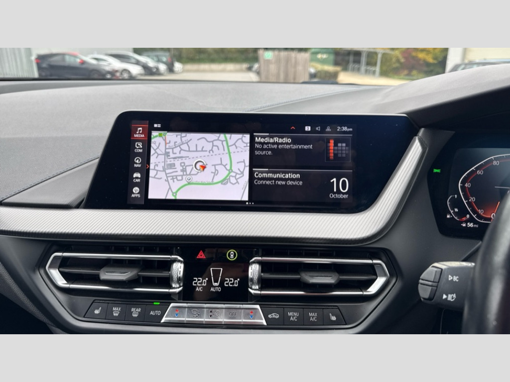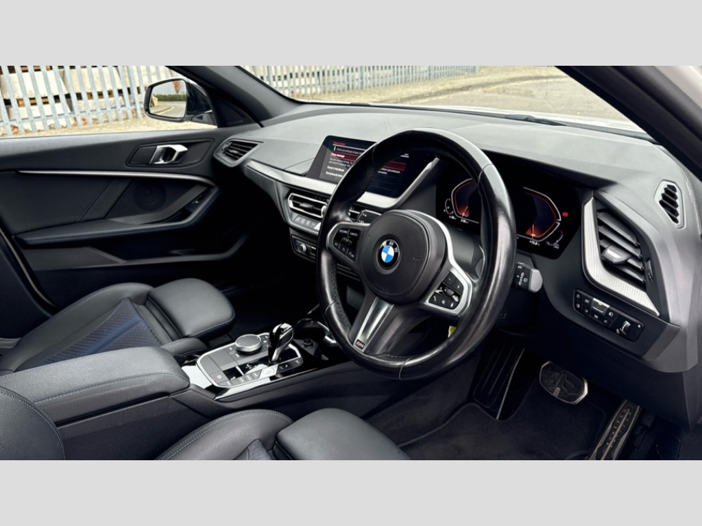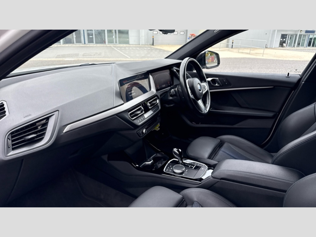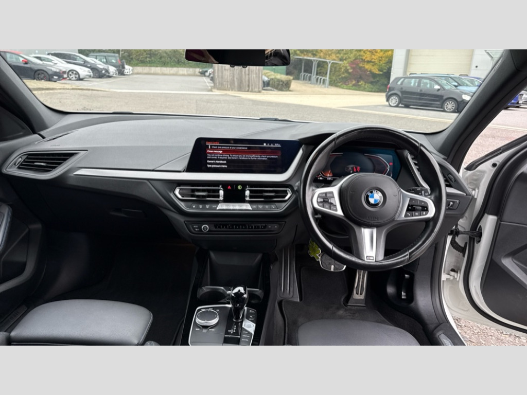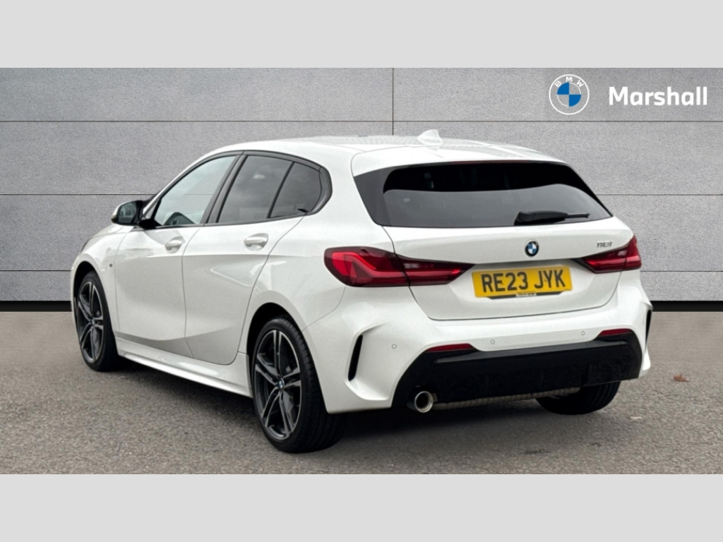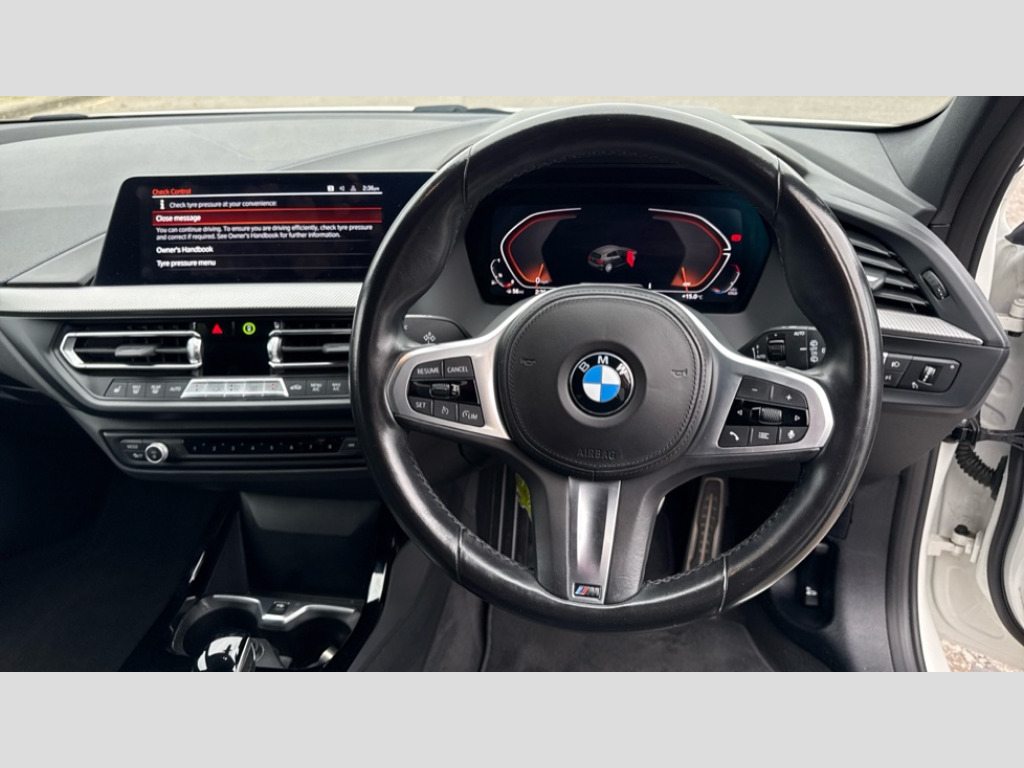 BMW 1 Series 118i [136] M Sport 5dr Step Auto [LCP] Active guard plus, Attentiveness assist, BMW ConnectedDrive online services, BMW Teleservices, Check Control warning system for monitoring of lights and door/luggage compartment open warning, Cruise control with speed limiter, Eco pro mode, Front axle single joint with specific axle kinematics to minimise drive influences on steering + provide increased rigidity agile driving behaviour, Integrated owners handbook, Lane departure warning system, Oil sensor for level and grade, On board computer, Optimum shift indicator, Personal Profile, Pull away assistant, Rigidly mounted rear subframe - Multi link construction with separate spring / damper configuration and excellent driving characteristics, Speed limit Info including no-overtaking indicator, Aluminium lightweight construction, Anti roll bar front and rear, Balancer shaft, Double VANOS twin scroll turbocharging system, Drive Performance Control, Electronic differential lock, High precision injection, M sport suspension, Petrol Particulate Filter, Twin tube gas filled shock absorbers with degressive characteristic curve, VALVETRONIC engine management, DAB Digital radio, Auto dimming rear view mirror, Automatic headlight beam throw control, Automatic windscreen wipers and automatic headlight, Body colour door handles, Body colour mirror caps, Body colour roof trims, Chrome 'M' logo side designation, Chrome exhaust twin tailpipes round 90mm in left, Chrome kidney grille frame with Satin Aluminium struts, Direction indicator side lights in exterior mirrors, Electrically adjustable exterior mirror with mirror adjustment switch on drivers armrest and aspheric on driver side, convex on passenger side, Fading support, Folding side mirrors with auto dimming/folding wing mirrors with auto dimming, Follow me home headlights, Front and rear bumper system with replaceable deformation elements, Front and rear electric windows with open and close fingertip control, anti trap facility and comfort closing, Front door sill finishers in black plastic with M designation in metallic look, Green tinted heat protection glazing, High gloss shadowline window frame, Recess cover mirror frames and B/C pillar embelisher trim, High level third brake light, Integrated front windscreen with washer jets, LED daytime running lights, LED eyebrow turn indicators, LED front fog lights, Lightweight engineering, Matt black air guide grilles, Matt black wheel arch trim, Model designation on electric bootlid, Nearside reverse light in rear light cluster, Preparation for high beam assistant, Rear fog lights, Rear side wing doors, Rear window wiper, Shark fin antenna, Trailer stabilisation logic, Visible VIN plate, Welcome lighting, 12V power socket in front centre console with blanking plug, 3 rear seat head restraints, 3 seat bench in 2nd row, 3 spoke sports leather steering wheel with black leather and stitching, pearl chrome decorative finish, specific M Badge, Anthracite headlining, Black boot net with lashing eyes, Cargo function on 2nd seat row, Child seat ISOFIX attachment for two outer rear seats and front passenger seat with anchorage points, Conditioned based service, Driver and front passenger backrest net on rear, Driver and front passenger seat heating, Driver side folding compartment in instrument panel, Folding rear clothes hook, Four grab handles integrated in roof lining, Front and rear door pockets with bottle holders, Front and rear side armrest integrated into door trim, Front armrest, Front sports seats, Glove compartment, Height adjustable front head restraints, Luggage compartment for bag hooks on left and right, foldable luggage compartment liner and four lashing eyelets, Manual adjust steering wheel, Multi-function controls for steering wheel, Single front passenger seat, Storage compartment in centre console, Storage compartment in luggage compartment, Stowage of the parcel shelf in luggage compartment trim, Sun visors with vanity mirrors and insert tab, Two front centre console cupholders, Two zone automatic air conditioning, Type C two USB ports in rear centre console, Velour floor mats, Additional interior lighting pack - 1 Series, BMW live cockpit professional pack- 1 Series, Connected pack professional - 1 Series, Interior lights pack - 1 Series, M Sport exterior styling aerodynamics pack - 1 Series, 2 tone horn, 3 point seatbelts on all seats, front pyrotechnic belt tensioners, stopper and belt force limiters, rear coded belt buckles, Airbags - Front driver/passenger, front and rear curtain head protection, front side, manual deactivation of front passenger airbag, Anti lock braking system (ABS) with brake assist, BMW emergency call, Brake drying, Braking readiness, Child proof locking system in rear door, City braking function, Comfort modes, Cornering brake control, Crash sensor activating of airbags, Unlocking doors, hazard warning lights, interior light, safety battery terminal, Driver and front passenger seat belt security check, Dynamic stability control + (DSC+), Dynamic Traction Control - DTC, Electrically operated hand brake including automatic hold function, Front and rear disc brakes, Seatbelt warning, Side impact protection, Tyre pressure monitoring system, Warning triangle and first aid kit, Central locking switch for all doors, fuel filler cap and luggage compartment, Deadlocking function system to all doors, Drive away locking system on all doors and luggage compartment with de-activated in iDrive settings, Locking wheel bolts, Remote control with integrated key with High-gloss Black inlay and M designation and 1 button for open/ close lock, window, open luggage compartment, Start/stop button illuminated in centre console with keyless engine start and auto start stop deactivation button, Thatcham Cat.1 alarm and immobiliser, Wheel slip limitation close to the actuator (ARB), Contrast stitching on instrument panel, Electrically powered 12V compressor, Reduced rolling resistance t