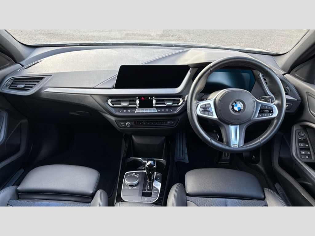 BMW 1 Series 118i [136] M Sport 5dr Step Auto [LCP] Active guard plus, Attentiveness assist, BMW ConnectedDrive online services, BMW Teleservices, Check Control warning system for monitoring of lights and door/luggage compartment open warning, Cruise control with brake assist, Eco pro mode, Front axle single joint with specific axle kinematics to minimise drive influences on steering + provide increased rigidity agile driving behaviour, Integrated owners handbook, Lane departure warning system, Oil sensor for level and grade, On board computer, Optimum shift indicator, Personal Profile, Pull away assistant, Rigidly mounted rear subframe - Multi link construction with separate spring / damper configuration and excellent driving characteristics, Speed limit Info including no-overtaking indicator, Speed limiter, Aluminium lightweight construction, Anti roll bar front and rear, Balancer shaft, Double VANOS twin scroll turbocharging system, Drive Performance Control, Electronic differential lock, High precision injection, M sport suspension, Petrol Particulate Filter, Twin tube gas filled shock absorbers with degressive characteristic curve, VALVETRONIC engine management, DAB Digital radio, Auto dimming rear view mirror, Automatic headlight beam throw control, Automatic windscreen wipers and automatic headlight, Body colour door handles, Body colour mirror caps, Body colour roof trims, Chrome 'M' logo side designation, Chrome exhaust twin tailpipes round 90mm in left, Chrome kidney grille frame with Satin Aluminium struts, Direction indicator side lights in exterior mirrors, Fading support, Folding side mirrors with auto dimming/folding wing mirrors with auto dimming, Follow me home headlights, Front and rear bumper system with replaceable deformation elements, Front and rear electric windows with open and close fingertip control, anti trap facility and comfort closing, Front door sill finishers in black plastic with M designation in metallic look, Green tinted heat protection glazing, Heated, electrically adjustable exterior mirror aspheric on driver side, convex on passenger side, High gloss shadowline window frame, Recess cover mirror frames and B/C pillar embelisher trim, High level third brake light, Integrated front windscreen with washer jets, LED daytime running lights, LED eyebrow turn indicators, LED front fog lights, LED Headlights, Lightweight engineering, Matt black air guide grilles, Matt black wheel arch trim, Model designation on electric bootlid, Nearside reverse light in rear light cluster, Preparation for high beam assistant, Rear fog lights, Rear side wing doors, Rear window wiper, Shark fin antenna, Trailer stabilisation logic, Visible VIN plate, Welcome lighting, 12V power socket in front centre console with blanking plug, 3 rear seat head restraints, 3 seat bench in 2nd row, 3 spoke sports leather steering wheel with black leather and stitching, pearl chrome decorative finish, specific M Badge, Anthracite headlining, Black boot net with lashing eyes, Cargo function on 2nd seat row, Child seat ISOFIX attachment for two outer rear seats and front passenger seat with anchorage points, Conditioned based service, Driver and front passenger seat heating, Folding rear clothes hook, Four grab handles integrated in roof lining, Front and rear door pockets with bottle holders, Front and rear side armrest integrated into door trim, Front armrest, Front sports seats, Glove compartment, Height adjustable front head restraints, Luggage compartment for bag hooks on left and right, foldable luggage compartment liner and four lashing eyelets, Manual adjust steering wheel, Multi-function controls for steering wheel, Single front passenger seat, Storage compartment in centre console, Sun visors with vanity mirrors and insert tab, Two front centre console cupholders, Two zone automatic air conditioning, Velour floor mats, Additional interior lighting pack - 1 Series, BMW live cockpit professional pack- 1 Series, Connected pack professional - 1 Series, Interior lights pack - 1 Series, M Sport exterior styling aerodynamics pack - 1 Series, 2 tone horn, 3 point seatbelts on all seats, front pyrotechnic belt tensioners, stopper and belt force limiters, rear coded belt buckles, Airbags - Front driver/passenger, front and rear curtain head protection, front side, manual deactivation of front passenger airbag, Anti lock braking system (ABS) with brake assist, BMW emergency call, Brake drying, Braking readiness, Child proof locking system in rear door, City braking function, Comfort modes, Cornering brake control, Crash sensor activating central locking release, hazard warning lights, fuel cut off, interior lighting + activation of safety battery terminal clamp, Driver and front passenger seat belt security check, Dynamic stability control + (DSC+), Dynamic Traction Control - DTC, Electrically operated hand brake including automatic hold function, Front and rear disc brakes, Seatbelt warning, Side impact protection, Tyre pressure monitoring system, Warning triangle and first aid kit, Central locking switch for all doors, fuel filler cap and luggage compartment, Deadlocking function system to all doors, Drive away locking system on all doors and luggage compartment with de-activated in iDrive settings, Locking wheel bolts, Remote control with integrated key with High-gloss Black inlay and M designation and 1 button for open/ close lock, window, open luggage compartment, Start/stop button illuminated in centre console with keyless engine start and auto start stop deactivation button, Thatcham Cat.1 alarm and immobiliser, Wheel slip limitation close to the actuator (ARB), Contrast stitching on instrument panel, Electrically powered 12V compressor, Reduced rolling resistance tyres