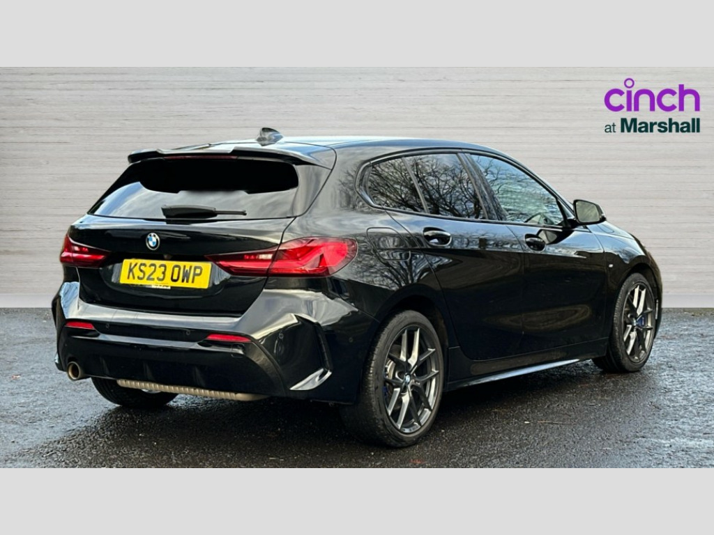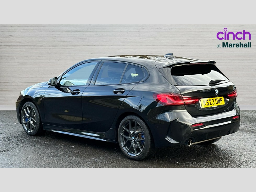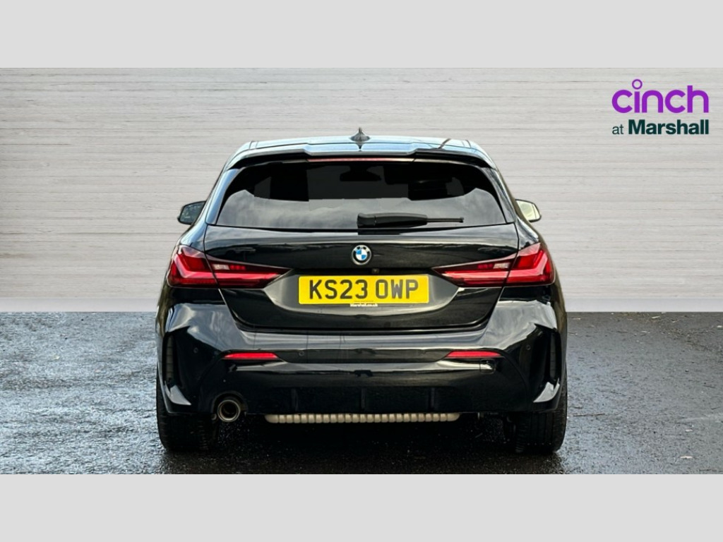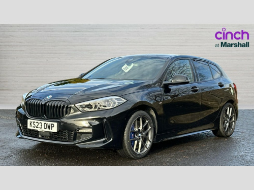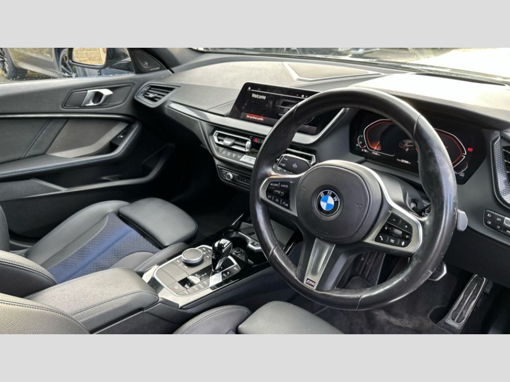 BMW 1 Series 118i [136] M Sport 5dr Step Auto [LCP] Active guard plus, Attentiveness assist, BMW ConnectedDrive online services, BMW Teleservices, Check Control warning system for monitoring of lights and door/luggage compartment open warning, Cruise control with speed limiter, Eco pro mode, Front axle single joint with specific axle kinematics to minimise drive influences on steering + provide increased rigidity agile driving behaviour, Integrated owners handbook, Lane departure warning system, Oil sensor for level and grade, On board computer, Optimum shift indicator, Personal Profile, Pull away assistant, Rigidly mounted rear subframe - Multi link construction with separate spring / damper configuration and excellent driving characteristics, Speed limit Info including no-overtaking indicator, Aluminium lightweight construction, Anti roll bar front and rear, Balancer shaft, Double VANOS twin scroll turbocharging system, Drive Performance Control, Electronic differential lock, High precision injection, M sport suspension, Petrol Particulate Filter, Twin tube gas filled shock absorbers with degressive characteristic curve, VALVETRONIC engine management, DAB Digital radio, Auto dimming rear view mirror, Automatic headlight beam throw control, Automatic windscreen wipers and automatic headlight, Body colour door handles, Body colour mirror caps, Body colour roof trims, Chrome 'M' logo side designation, Chrome exhaust twin tailpipes round 90mm in left, Chrome kidney grille frame with Satin Aluminium struts, Direction indicator side lights in exterior mirrors, Electrically adjustable exterior mirror with mirror adjustment switch on drivers armrest and aspheric on driver side, convex on passenger side, Fading support, Folding side mirrors with auto dimming/folding wing mirrors with auto dimming, Follow me home headlights, Front and rear bumper system with replaceable deformation elements, Front and rear electric windows with open and close fingertip control, anti trap facility and comfort closing, Front door sill finishers in black plastic with M designation in metallic look, Green tinted heat protection glazing, High gloss shadowline window frame, Recess cover mirror frames and B/C pillar embelisher trim, High level third brake light, Integrated front windscreen with washer jets, LED daytime running lights, LED eyebrow turn indicators, LED front fog lights, Lightweight engineering, Matt black air guide grilles, Matt black wheel arch trim, Model designation on electric bootlid, Nearside reverse light in rear light cluster, Preparation for high beam assistant, Rear fog lights, Rear side wing doors, Rear window wiper, Shark fin antenna, Trailer stabilisation logic, Visible VIN plate, Welcome lighting, 12V power socket in front centre console with blanking plug, 3 rear seat head restraints, 3 seat bench in 2nd row, 3 spoke sports leather steering wheel with black leather and stitching, pearl chrome decorative finish, specific M Badge, Anthracite headlining, Black boot net with lashing eyes, Cargo function on 2nd seat row, Child seat ISOFIX attachment for two outer rear seats and front passenger seat with anchorage points, Conditioned based service, Driver and front passenger backrest net on rear, Driver and front passenger seat heating, Driver side folding compartment in instrument panel, Folding rear clothes hook, Four grab handles integrated in roof lining, Front and rear door pockets with bottle holders, Front and rear side armrest integrated into door trim, Front armrest, Front sports seats, Glove compartment, Height adjustable front head restraints, Luggage compartment for bag hooks on left and right, foldable luggage compartment liner and four lashing eyelets, Manual adjust steering wheel, Multi-function controls for steering wheel, Single front passenger seat, Storage compartment in centre console, Storage compartment in luggage compartment, Stowage of the parcel shelf in luggage compartment trim, Sun visors with vanity mirrors and insert tab, Two front centre console cupholders, Two zone automatic air conditioning, Type C two USB ports in rear centre console, Velour floor mats, Additional interior lighting pack - 1 Series, BMW live cockpit professional pack- 1 Series, Connected pack professional - 1 Series, Interior lights pack - 1 Series, M Sport exterior styling aerodynamics pack - 1 Series, 2 tone horn, 3 point seatbelts on all seats, front pyrotechnic belt tensioners, stopper and belt force limiters, rear coded belt buckles, Airbags - Front driver/passenger, front and rear curtain head protection, front side, manual deactivation of front passenger airbag, Anti lock braking system (ABS) with brake assist, BMW emergency call, Brake drying, Braking readiness, Child proof locking system in rear door, City braking function, Comfort modes, Cornering brake control, Crash sensor activating of airbags, Unlocking doors, hazard warning lights, interior light, safety battery terminal, Driver and front passenger seat belt security check, Dynamic stability control + (DSC+), Dynamic Traction Control - DTC, Electrically operated hand brake including automatic hold function, Front and rear disc brakes, Seatbelt warning, Side impact protection, Tyre pressure monitoring system, Warning triangle and first aid kit, Central locking switch for all doors, fuel filler cap and luggage compartment, Deadlocking function system to all doors, Drive away locking system on all doors and luggage compartment with de-activated in iDrive settings, Locking wheel bolts, Remote control with integrated key with High-gloss Black inlay and M designation and 1 button for open/ close lock, window, open luggage compartment, Start/stop button illuminated in centre console with keyless engine start and auto start stop deactivation button, Thatcham Cat.1 alarm and immobiliser, Wheel slip limitation close to the actuator (ARB), Contrast stitching on instrument panel, 18" Burnished M double spoke bi-colour alloy wheels finished in o