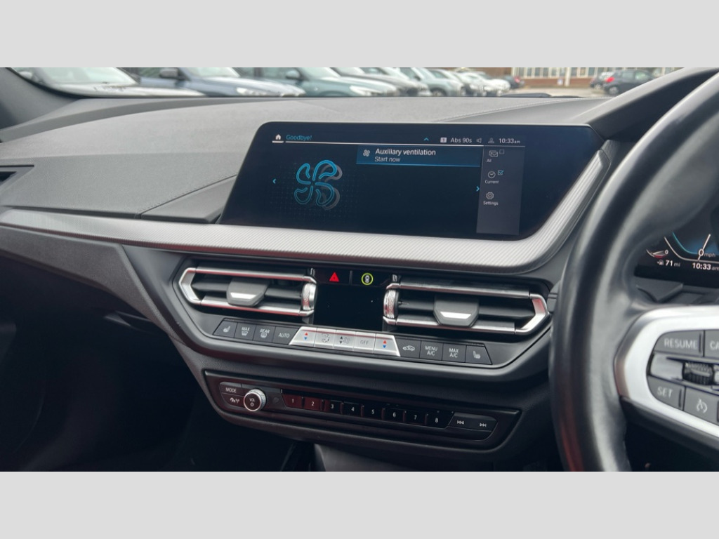 BMW 1 Series 118i [136] M Sport 5dr Step Auto [LCP] Active guard plus, Attentiveness assist, BMW ConnectedDrive online services, BMW Teleservices, Check Control warning system for monitoring of lights and door/luggage compartment open warning, Cruise control with speed limiter, Eco pro mode, Front axle single joint with specific axle kinematics to minimise drive influences on steering + provide increased rigidity agile driving behaviour, Integrated owners handbook, Lane departure warning system, Oil sensor for level and grade, On board computer, Optimum shift indicator, Personal Profile, Pull away assistant, Rigidly mounted rear subframe - Multi link construction with separate spring / damper configuration and excellent driving characteristics, Speed limit Info including no-overtaking indicator, Aluminium lightweight construction, Anti roll bar front and rear, Balancer shaft, Double VANOS twin scroll turbocharging system, Drive Performance Control, Electronic differential lock, High precision injection, M sport suspension, Petrol Particulate Filter, Twin tube gas filled shock absorbers with degressive characteristic curve, VALVETRONIC engine management, DAB Digital radio, Auto dimming rear view mirror, Automatic headlight beam throw control, Automatic windscreen wipers and automatic headlight, Body colour door handles, Body colour mirror caps, Body colour roof trims, Chrome 'M' logo side designation, Chrome exhaust twin tailpipes round 90mm in left, Chrome kidney grille frame with Satin Aluminium struts, Direction indicator side lights in exterior mirrors, Electrically adjustable exterior mirror with mirror adjustment switch on drivers armrest and aspheric on driver side, convex on passenger side, Fading support, Folding side mirrors with auto dimming/folding wing mirrors with auto dimming, Follow me home headlights, Front and rear bumper system with replaceable deformation elements, Front and rear electric windows with open and close fingertip control, anti trap facility and comfort closing, Front door sill finishers in black plastic with M designation in metallic look, Green tinted heat protection glazing, High gloss shadowline window frame, Recess cover mirror frames and B/C pillar embelisher trim, High level third brake light, Integrated front windscreen with washer jets, LED daytime running lights, LED eyebrow turn indicators, LED front fog lights, Lightweight engineering, Matt black air guide grilles, Matt black wheel arch trim, Model designation on electric bootlid, Nearside reverse light in rear light cluster, Preparation for high beam assistant, Rear fog lights, Rear side wing doors, Rear window wiper, Shark fin antenna, Trailer stabilisation logic, Visible VIN plate, Welcome lighting, 12V power socket in front centre console with blanking plug, 3 rear seat head restraints, 3 seat bench in 2nd row, 3 spoke sports leather steering wheel with black leather and stitching, pearl chrome decorative finish, specific M Badge, Anthracite headlining, Black boot net with lashing eyes, Cargo function on 2nd seat row, Child seat ISOFIX attachment for two outer rear seats and front passenger seat with anchorage points, Conditioned based service, Driver and front passenger backrest net on rear, Driver and front passenger seat heating, Driver side folding compartment in instrument panel, Folding rear clothes hook, Four grab handles integrated in roof lining, Front and rear door pockets with bottle holders, Front and rear side armrest integrated into door trim, Front armrest, Front sports seats, Glove compartment, Height adjustable front head restraints, Luggage compartment for bag hooks on left and right, foldable luggage compartment liner and four lashing eyelets, Manual adjust steering wheel, Multi-function controls for steering wheel, Single front passenger seat, Storage compartment in centre console, Storage compartment in luggage compartment, Stowage of the parcel shelf in luggage compartment trim, Sun visors with vanity mirrors and insert tab, Two front centre console cupholders, Two zone automatic air conditioning, Type C two USB ports in rear centre console, Velour floor mats, Additional interior lighting pack - 1 Series, BMW live cockpit professional pack- 1 Series, Connected pack professional - 1 Series, Interior lights pack - 1 Series, M Sport exterior styling aerodynamics pack - 1 Series, 2 tone horn, 3 point seatbelts on all seats, front pyrotechnic belt tensioners, stopper and belt force limiters, rear coded belt buckles, Airbags - Front driver/passenger, front and rear curtain head protection, front side, manual deactivation of front passenger airbag, Anti lock braking system (ABS) with brake assist, BMW emergency call, Brake drying, Braking readiness, Child proof locking system in rear door, City braking function, Comfort modes, Cornering brake control, Crash sensor activating of airbags, Unlocking doors, hazard warning lights, interior light, safety battery terminal, Driver and front passenger seat belt security check, Dynamic stability control + (DSC+), Dynamic Traction Control - DTC, Electrically operated hand brake including automatic hold function, Front and rear disc brakes, Seatbelt warning, Side impact protection, Tyre pressure monitoring system, Warning triangle and first aid kit, Central locking switch for all doors, fuel filler cap and luggage compartment, Deadlocking function system to all doors, Drive away locking system on all doors and luggage compartment with de-activated in iDrive settings, Locking wheel bolts, Remote control with integrated key with High-gloss Black inlay and M designation and 1 button for open/ close lock, window, open luggage compartment, Start/stop button illuminated in centre console with keyless engine start and auto start stop deactivation button, Thatcham Cat.1 alarm and immobiliser, Wheel slip limitation close to the actuator (ARB), Contrast stitching on instrument panel, 18" Burnished M double spoke bi-colour alloy wheels finished in o