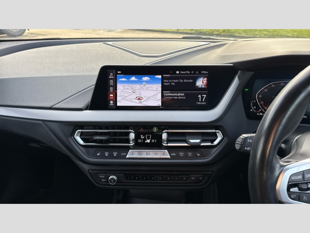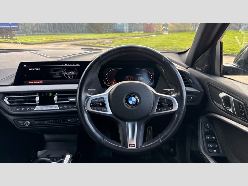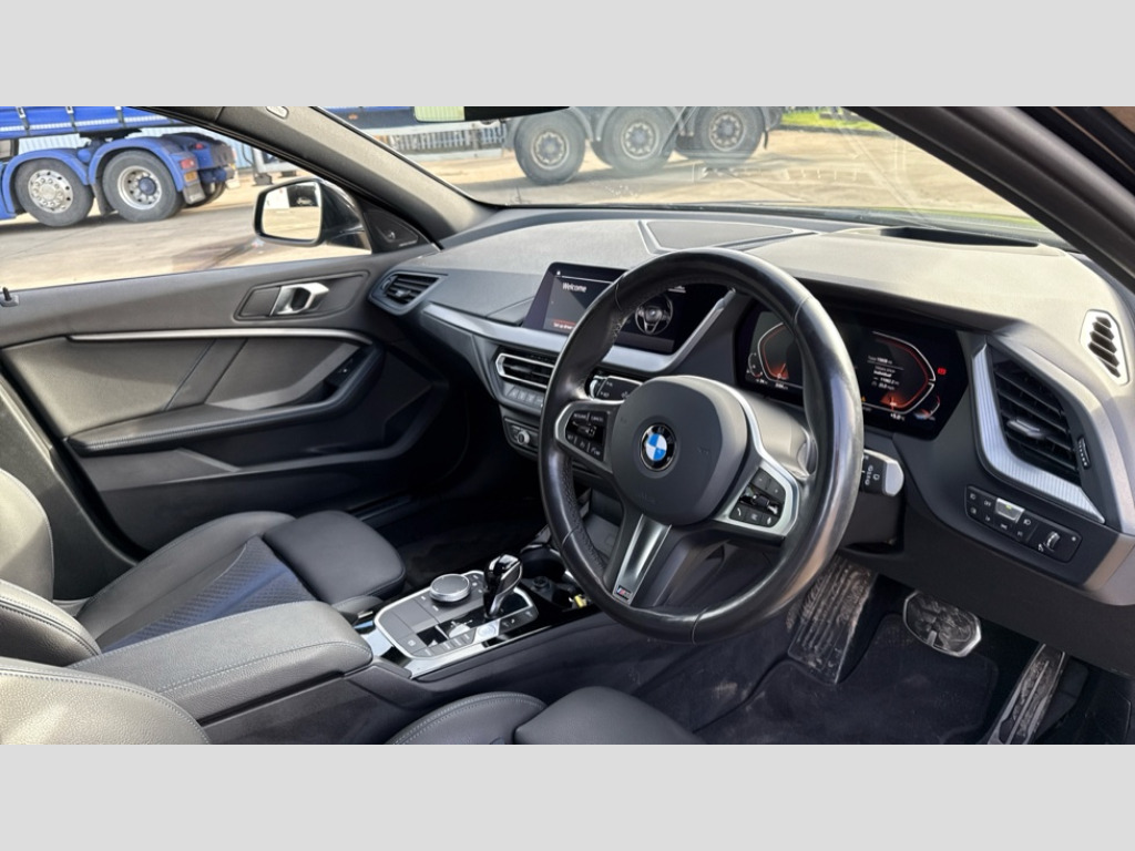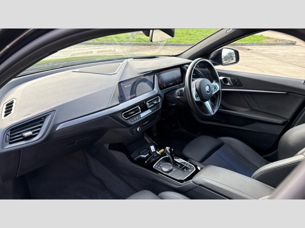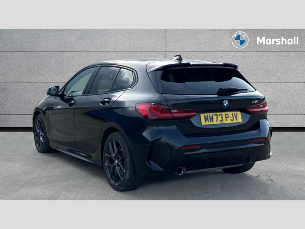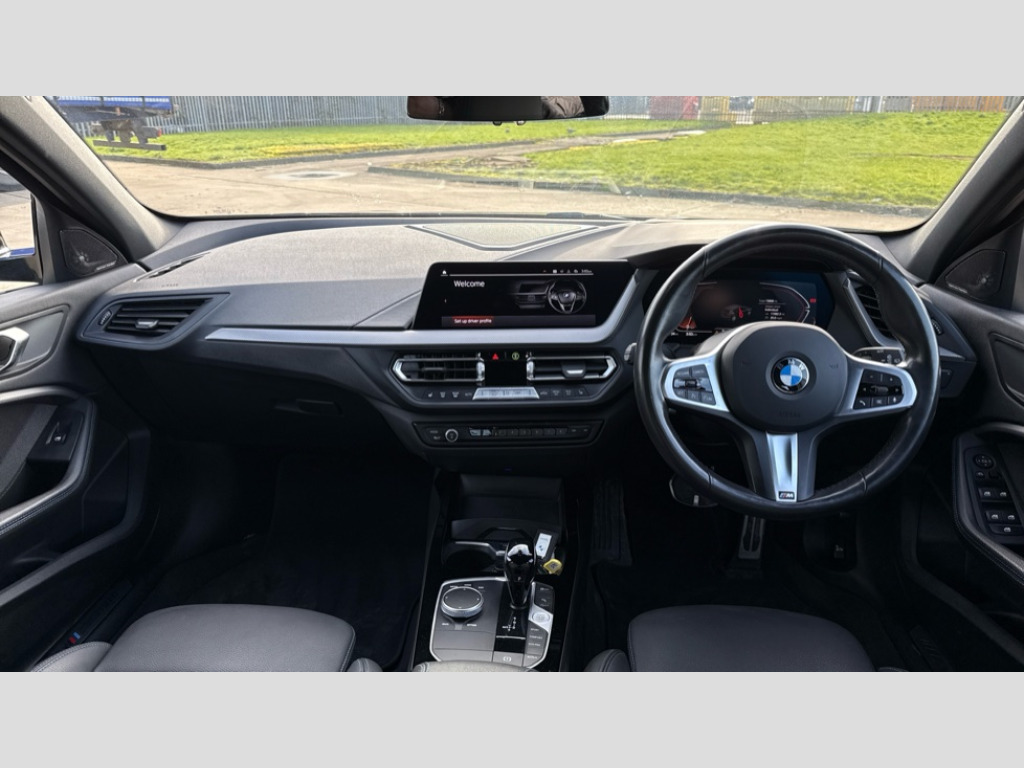 BMW 1 Series 118i [136] M Sport 5dr Step Auto [LCP] Active guard plus, Attentiveness assist, BMW ConnectedDrive online services, BMW Teleservices, Check Control warning system for monitoring of lights and door/luggage compartment open warning, Cruise control with speed limiter, Eco pro mode, Enhanced bluetooth with wireless charging and Wi-Fi hot spot, Front axle single joint with specific axle kinematics to minimise drive influences on steering + provide increased rigidity agile driving behaviour, Head up Display, Integrated owners handbook, Lane departure warning system, Oil sensor for level and grade, On board computer, Optimum shift indicator, Park assist including reversing assistant, lateral parking aid and reversing assist camera, Personal Profile, Pull away assistant, Rigidly mounted rear subframe - Multi link construction with separate spring / damper configuration and excellent driving characteristics, Speed limit Info including no-overtaking indicator, Aluminium lightweight construction, Anti roll bar front and rear, Balancer shaft, Double VANOS twin scroll turbocharging system, Drive Performance Control, Electronic differential lock, High precision injection, M sport suspension, Petrol Particulate Filter, Twin tube gas filled shock absorbers with degressive characteristic curve, VALVETRONIC engine management, DAB Digital radio, Harman/Kardon surround sound audio system with 464W amplifier power, 9 channels and 16 speakers, Adaptive LED headlights with high beam assist, Auto dimming rear view mirror, Automatic headlight beam throw control, Automatic windscreen wipers and automatic headlight, BMW individual high gloss shadow line with extended content, Body colour door handles, Body colour mirror caps, Body colour roof trims, Chrome 'M' logo side designation, Chrome exhaust twin tailpipes round 90mm in left, Chrome kidney grille frame with Satin Aluminium struts, Direction indicator side lights in exterior mirrors, Electrically adjustable exterior mirror with mirror adjustment switch on drivers armrest and aspheric on driver side, convex on passenger side, Fading support, Folding side mirrors with auto dimming/folding wing mirrors with auto dimming, Follow me home headlights, Front and rear bumper system with replaceable deformation elements, Front and rear electric windows with open and close fingertip control, anti trap facility and comfort closing, Front door sill finishers in black plastic with M designation in metallic look, Green tinted heat protection glazing, High gloss shadowline window frame, Recess cover mirror frames and B/C pillar embelisher trim, High level third brake light, Integrated front windscreen with washer jets, LED daytime running lights, LED eyebrow turn indicators, LED front fog lights, Lightweight engineering, M Sport spoiler, Matt black air guide grilles, Matt black wheel arch trim, Model designation on electric bootlid, Nearside reverse light in rear light cluster, Preparation for high beam assistant, Rear fog lights, Rear side wing doors, Rear window wiper, Shark fin antenna, Trailer stabilisation logic, Visible VIN plate, Welcome lighting, 12V power socket in front centre console with blanking plug, 3 rear seat head restraints, 3 seat bench in 2nd row, 3 spoke sports leather steering wheel with black leather and stitching, pearl chrome decorative finish, specific M Badge, Anthracite headlining, Black boot net with lashing eyes, Cargo function on 2nd seat row, Child seat ISOFIX attachment for two outer rear seats and front passenger seat with anchorage points, Conditioned based service, Driver and front passenger backrest net on rear, Driver and front passenger seat heating, Driver side folding compartment in instrument panel, Folding rear clothes hook, Four grab handles integrated in roof lining, Front and rear door pockets with bottle holders, Front and rear side armrest integrated into door trim, Front armrest, Front sports seats, Glove compartment, Height adjustable front head restraints, Luggage compartment for bag hooks on left and right, foldable luggage compartment liner and four lashing eyelets, Manual adjust steering wheel, Multi-function controls for steering wheel, Single front passenger seat, Storage compartment in centre console, Storage compartment in luggage compartment, Stowage of the parcel shelf in luggage compartment trim, Sun visors with vanity mirrors and insert tab, Two front centre console cupholders, Two zone automatic air conditioning, Type C two USB ports in rear centre console, Velour floor mats, Additional interior lighting pack - 1 Series, BMW live cockpit professional pack- 1 Series, Connected pack professional - 1 Series, Interior lights pack - 1 Series, M Sport exterior styling aerodynamics pack - 1 Series, 2 tone horn, 3 point seatbelts on all seats, front pyrotechnic belt tensioners, stopper and belt force limiters, rear coded belt buckles, Airbags - Front driver/passenger, front and rear curtain head protection, front side, manual deactivation of front passenger airbag, Anti lock braking system (ABS) with brake assist, BMW emergency call, Brake drying, Braking readiness, Child proof locking system in rear door, City braking function, Comfort modes, Cornering brake control, Crash sensor activating of airbags, Unlocking doors, hazard warning lights, interior light, safety battery terminal, Driver and front passenger seat belt security check, Dynamic stability control + (DSC+), Dynamic Traction Control - DTC, Electrically operated hand brake including automatic hold function, Front and rear disc brakes, M Sport brakes with blue calipers M designation in front, M Sport seatbelts, Seatbelt warning, Side impact protection, Tyre pressure monitoring system, Warning triangle and first aid kit, Central locking switch for all doors, fuel filler cap and luggage compartment, Deadlocking function system to all doors, Drive away locking system on all doors and luggage compartment with de-activated in iDrive settings, Locking wh
