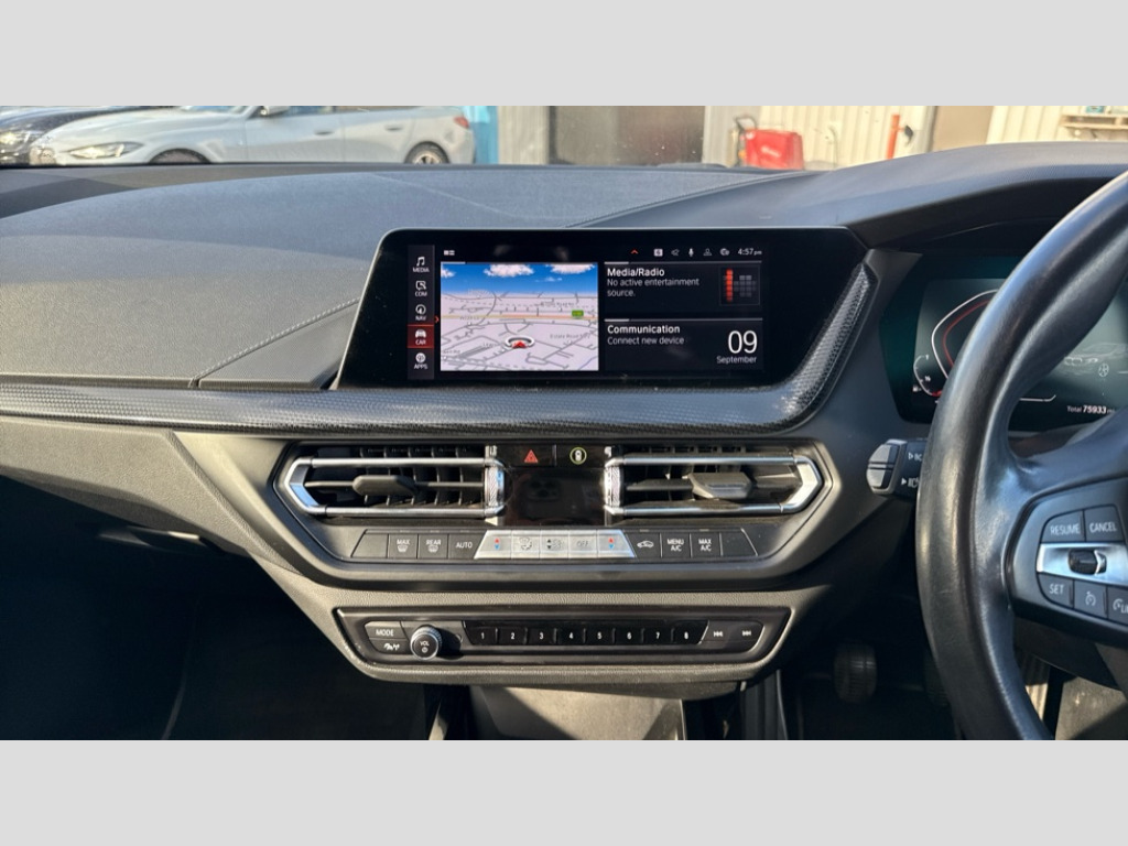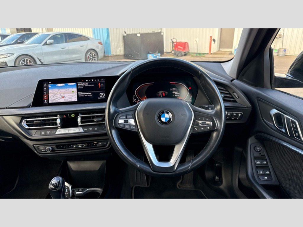 BMW 1 Series 118i [136] Sport 5dr Active guard plus, Attentiveness assist, BMW Online services, BMW Teleservices, Check Control warning system for monitoring of lights and door/luggage compartment open warning, Connected eDrive Services, Cruise control with brake assist, Eco pro mode, Electric power steering with Servotronic steering optimised at all speed ranges, Integrated owners handbook, Lane departure warning system, Oil sensor for level and grade, On board computer, Optimum shift indicator, Personal Profile, Pull away assistant, Speed limiter, 6 speed manual transmission, Aluminium lightweight construction, Anti roll bar front and rear, Balancer shaft, Double VANOS, Drive Performance Control, Electronic differential lock, High precision injection, Petrol Particulate Filter, VALVETRONIC engine management, Bluetooth audio streaming, DAB Digital radio, Auto dimming rear view mirror, Automatic windscreen wipers and automatic headlight, Body colour door handles, Body colour mirror caps, Chrome exhaust tailpipe in single, round (Exhaust tailpipe, stainless steel - single, round), Chrome kidney grille with extra wide black, high gloss black vertical slats, Direction indicator side lights in exterior mirrors, Fading support, Follow me home headlights, Front and rear bumper system with replaceable deformation elements, Front and rear electric windows with open and close fingertip control, anti trap facility and comfort closing, Front bumper in Body colour with exclusive Sport air inlets finished in High gloss Black, Front door sill finishers in black plastic with BMW designation, Green tinted heat protection glazing, Heated, electrically adjustable exterior mirror aspheric on driver side, convex on passenger side, High gloss shadowline window frame, Recess cover mirror frames and B/C pillar embelisher trim, High level third brake light, LED daytime running lights, LED eyebrow turn indicators, LED front fog lights, Lightweight engineering, Manual headlight beam throw control, Matt black air guide grilles, Model designation on right side of tailgate, Nearside reverse light in rear light cluster, Preparation for high beam assistant, Rain sensor including auto headlights activation, Rear bumper in Body colour with exclusive Sport design elements finished in High gloss Black, Rear fog lights, Rear window wiper, Shark fin antenna, Visible VIN plate, Welcome lighting, 12V power socket in centre console, 3 rear seat head restraints, 3 spoke sports leather steering wheel in pearl Chrome, Child seat ISOFIX attachment for two outer rear seats and front passenger seat with anchorage points, Conditioned based service, Folding rear clothes hook, Four grab handles integrated in roof lining, Front and rear door pockets, Front and rear door pockets with bottle holders, Front and rear side armrest integrated into door trim, Front armrest foldable with integrated storage compartment, Front sports seats with electric side bolster adjustment, Glove compartment, Height adjustable front head restraints, Manual adjust steering wheel, Multi-function controls for steering wheel, Storage compartment in centre console, Sun visors with vanity mirrors and insert tab, Two zone automatic air conditioning, Velour floor mats, Connected pack professional - 1 Series, Extended storage pack - 1 Series, Interior lights pack - 1 Series, 2 tone horn, 3 point seatbelts on all seats, front pyrotechnic belt tensioners, stopper and belt force limiters, rear coded belt buckles, Airbags - front driver/passenger, front & rear curtain, front side, Anti lock braking system (ABS) with brake assist, BMW emergency call, Brake drying, Braking readiness, City braking function, Crash sensor activating central locking release, hazard warning lights, fuel cut off, interior lighting + activation of safety battery terminal clamp, Driver and front passenger seat belt security check, Dynamic stability control + (DSC+), Dynamic Traction Control - DTC, Electrically operated hand brake, Front and rear disc brakes, Front passenger manual airbag deactivation, Seatbelt warning, Side impact protection, Tyre pressure monitoring system, Warning triangle and first aid kit, Automatic drive away locking facility, Central locking switch for all doors, fuel filler cap and luggage compartment, Deadlocking function system to all doors, Locking wheel bolts, Remote central locking with two Integrate key, one button for opening and closing all lock, open and close window, button for open luggage compartment, Start/stop button with comfort go keyless engine start and auto start stop deactivation button, Thatcham Cat.1 alarm and immobiliser, Contrast stitching on instrument panel, Illuminated Berlin interior trim, Reduced rolling resistance tyres