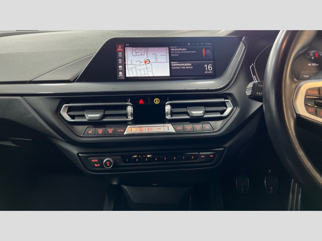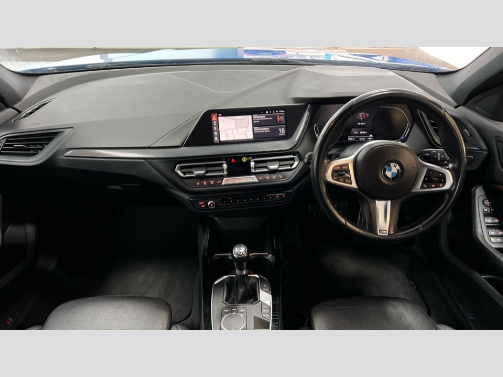 BMW 1 Series 118i M Sport 5dr Active guard plus, Attentiveness assist, BMW Online services, BMW Teleservices, Check Control warning system for monitoring of lights and door/luggage compartment open warning, Connected eDrive Services, Cruise control with brake assist, Eco pro mode, Electric power steering with Servotronic steering optimised at all speed ranges, Integrated owners handbook, Lane departure warning system, Oil sensor for level and grade, On board computer, Optimum shift indicator, Personal Profile, Pull away assistant, Speed limiter, 6 speed manual transmission, Aluminium lightweight construction, Anti roll bar front and rear, Balancer shaft, Double VANOS, Drive Performance Control, Electronic differential lock, High precision injection, M sports suspension + self levelling, Petrol Particulate Filter, VALVETRONIC engine management, Bluetooth audio streaming, DAB Digital radio, Auto dimming rear view mirror, Automatic headlight beam throw control, Body colour door handles, Body colour mirror caps, Chrome 'M' logo side designation, Chrome exhaust tailpipe in single, round (Exhaust tailpipe, stainless steel - single, round), Chrome kidney grille frame with Satin Aluminium struts, Direction indicator side lights in exterior mirrors, Electric folding and anti dazzle exterior mirrors, Fading support, Follow me home headlights, Front and rear electric windows with open and close fingertip control, anti trap facility and comfort closing, Front door sill finishers in black plastic with BMW designation, Green tinted heat protection glazing, Heated, electrically adjustable exterior mirror aspheric on driver side, convex on passenger side, High gloss shadow line exterior trim, High gloss shadowline window frame, Recess cover mirror frames and B/C pillar embelisher trim, High level third brake light, LED daytime running lights, LED eyebrow turn indicators, LED front fog lights, Lightweight engineering, Matt black air guide grilles, Model designation on right side of tailgate, Nearside reverse light in rear light cluster, Preparation for high beam assistant, Rain sensor including auto headlights activation, Rear fog lights, Rear window wiper, Shark fin antenna, Visible VIN plate, Welcome lighting, Windscreen wipers with integrated washing jets, 12V power socket in centre console, 2 cupholders in front centre console, 3 rear seat head restraints, 3 spoke M sports design leather steering wheel finished in nappa leather with specific M badge, Anthracite headlining, Anthracite Velour floor mats, Child seat ISOFIX attachment for two outer rear seats and front passenger seat with anchorage points, Conditioned based service, Dakota leather upholstery with perforation and contrast stitching, Driver and front passenger seat heating, Driver side folding compartment in instrument panel, Folding rear clothes hook, Folding rear seats, Four grab handles integrated in roof lining, Front and rear door pockets, Front and rear side armrest integrated into door trim, Front armrest foldable with integrated storage compartment, Front sports seats with electric side bolster adjustment, Gearshift lever with M designation, Glove compartment, Height adjustable front head restraints, Manual adjust steering wheel, Multi-function controls for steering wheel, Rear seat backrest with manual 60:40 split folding with 3 top tether clips integrated on rear of seat panels, Storage compartment in centre console, Sun visors with vanity mirrors and insert tab, Two zone automatic air conditioning, Connected pack professional - 1 Series, Extended Lighting pack - 1 Series, Extended storage pack - 1 Series, Interior lights pack - 1 Series, Luggage compartment pack - 1 Series, M Sport exterior styling aerodynamics pack - 1 Series, 2 tone horn, 3 point seatbelts on all seats, front pyrotechnic belt tensioners, stopper and belt force limiters, rear coded belt buckles, Airbags - Front driver and passenger, front and rear head, front side, curtain head protection, Anti lock braking system (ABS) with brake assist, BMW emergency call, Brake drying, Braking readiness, City braking function, Crash sensor activating central locking release, hazard warning lights, fuel cut off, interior lighting + activation of safety battery terminal clamp, Driver and front passenger seat belt security check, Dynamic stability control + (DSC+), Dynamic Traction Control - DTC, Electrically operated hand brake, Front and rear disc brakes, Front passenger manual airbag deactivation, Rear child proof door locks, Seatbelt warning, Side impact protection, Tyre pressure monitoring system, Warning triangle and first aid kit, Automatic drive away locking facility, Central locking switch for all doors, fuel filler cap and luggage compartment, Deadlocking function system to all doors, Locking wheel bolts, Remote control with integrated key with High-gloss Black inlay and M designation and 1 button for open/ close lock, window, open luggage compartment, Start/stop button with comfort go keyless engine start and auto start stop deactivation button, Thatcham Cat.1 alarm and immobiliser, Contrast stitching on instrument panel, Reduced rolling resistance tyres
