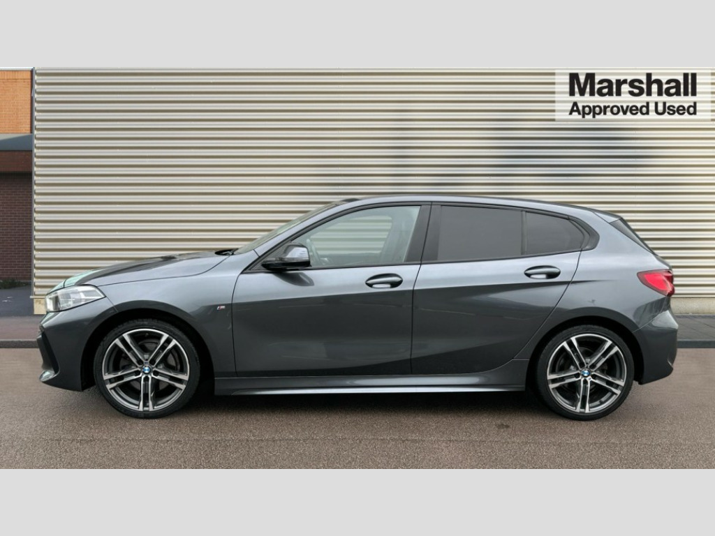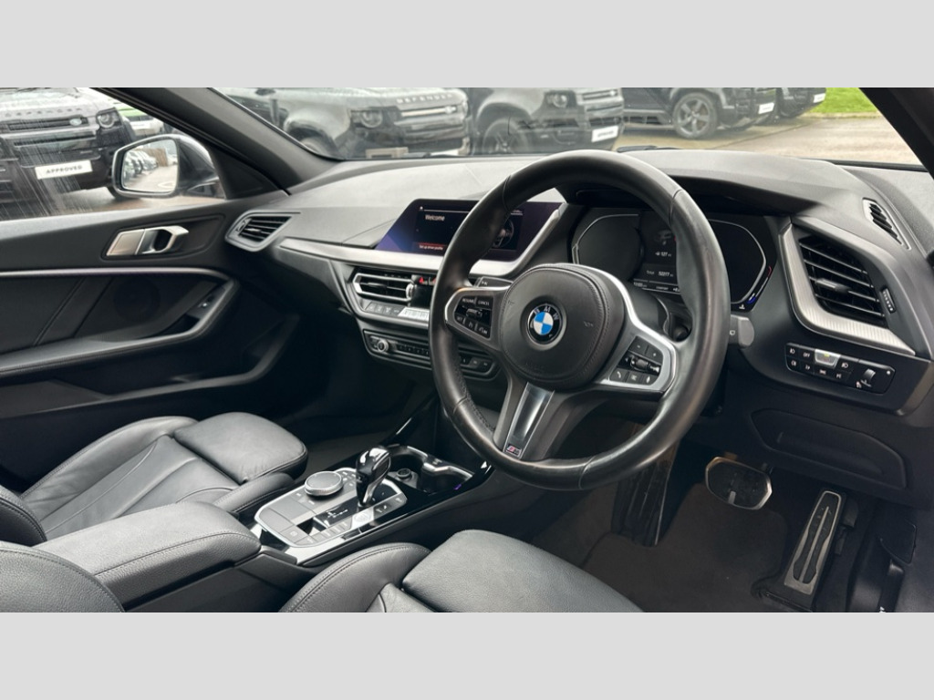 BMW 1 Series 118i M Sport 5dr Step Auto Active guard plus, Attentiveness assist, BMW Online services, BMW Teleservices, Check Control warning system for monitoring of lights and door/luggage compartment open warning, Connected eDrive Services, Eco pro mode, Electric power steering with Servotronic steering optimised at all speed ranges, Integrated owners handbook, Oil sensor for level and grade, On board computer, Optimum shift indicator, Personal Profile, Pull away assistant, Speed limiter, Aluminium lightweight construction, Anti roll bar front and rear, Balancer shaft, Double VANOS, Drive Performance Control, Electronic differential lock, High precision injection, M sports suspension + self levelling, Petrol Particulate Filter, VALVETRONIC engine management, Bluetooth audio streaming, DAB Digital radio, Auto dimming rear view mirror, Automatic headlight beam throw control, Body colour door handles, Body colour mirror caps, Chrome 'M' logo side designation, Chrome exhaust tailpipe in single, round (Exhaust tailpipe, stainless steel - single, round), Chrome kidney grille frame with Satin Aluminium struts, Direction indicator side lights in exterior mirrors, Electric folding and anti dazzle exterior mirrors, Fading support, Follow me home headlights, Front and rear electric windows with open and close fingertip control, anti trap facility and comfort closing, Front door sill finishers in black plastic with BMW designation, Green tinted heat protection glazing, Heated, electrically adjustable exterior mirror aspheric on driver side, convex on passenger side, High gloss shadow line exterior trim, High gloss shadowline window frame, Recess cover mirror frames and B/C pillar embelisher trim, High level third brake light, LED daytime running lights, LED eyebrow turn indicators, LED front fog lights, Lightweight engineering, Matt black air guide grilles, Model designation on right side of tailgate, Nearside reverse light in rear light cluster, Preparation for high beam assistant, Rain sensor including auto headlights activation, Rear fog lights, Rear window wiper, Shark fin antenna, Visible VIN plate, Welcome lighting, Windscreen wipers with integrated washing jets, 12V power socket in centre console, 2 cupholders in front centre console, 3 rear seat head restraints, 3 spoke M sports design leather steering wheel finished in nappa leather with specific M badge, Anthracite headlining, Anthracite Velour floor mats, Child seat ISOFIX attachment for two outer rear seats and front passenger seat with anchorage points, Conditioned based service, Dakota leather upholstery with perforation and contrast stitching, Driver and front passenger seat heating, Driver side folding compartment in instrument panel, Folding rear clothes hook, Folding rear seats, Four grab handles integrated in roof lining, Front and rear door pockets, Front and rear side armrest integrated into door trim, Front armrest foldable with integrated storage compartment, Front sports seats with electric side bolster adjustment, Glove compartment, Height adjustable front head restraints, Manual adjust steering wheel, Multi-function controls for steering wheel, Rear seat backrest with manual 60:40 split folding with 3 top tether clips integrated on rear of seat panels, Storage compartment in centre console, Sun visors with vanity mirrors and insert tab, Two zone automatic air conditioning, Connected pack professional - 1 Series, Extended Lighting pack - 1 Series, Extended storage pack - 1 Series, Interior lights pack - 1 Series, Luggage compartment pack - 1 Series, M Sport exterior styling aerodynamics pack - 1 Series, 2 tone horn, 3 point seatbelts on all seats, front pyrotechnic belt tensioners, stopper and belt force limiters, rear coded belt buckles, Airbags - Front driver and passenger, front and rear head, front side, curtain head protection, Anti lock braking system (ABS) with brake assist, BMW emergency call, Brake drying, Braking readiness, Crash sensor activating central locking release, hazard warning lights, fuel cut off, interior lighting + activation of safety battery terminal clamp, Driver and front passenger seat belt security check, Dynamic stability control + (DSC+), Dynamic Traction Control - DTC, Electrically operated hand brake, Front and rear disc brakes, Front passenger manual airbag deactivation, Rear child proof door locks, Seatbelt warning, Side impact protection, Tyre pressure monitoring system, Warning triangle and first aid kit, Automatic drive away locking facility, Central locking switch for all doors, fuel filler cap and luggage compartment, Deadlocking function system to all doors, Locking wheel bolts, Remote control with integrated key with High-gloss Black inlay and M designation and 1 button for open/ close lock, window, open luggage compartment, Start/stop button with comfort go keyless engine start and auto start stop deactivation button, Thatcham Cat.1 alarm and immobiliser, Contrast stitching on instrument panel, Reduced rolling resistance tyres