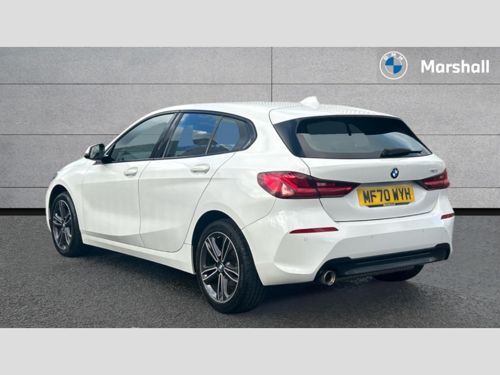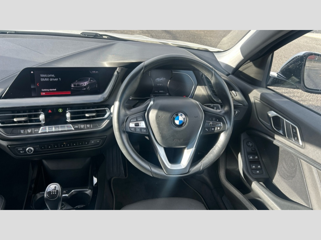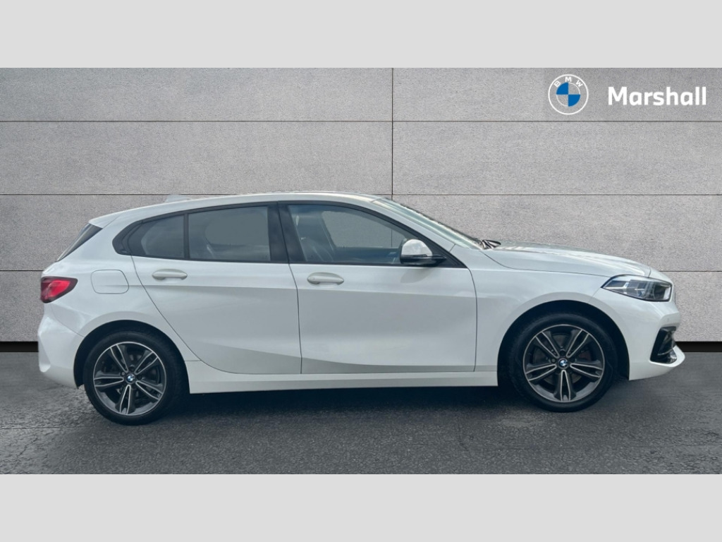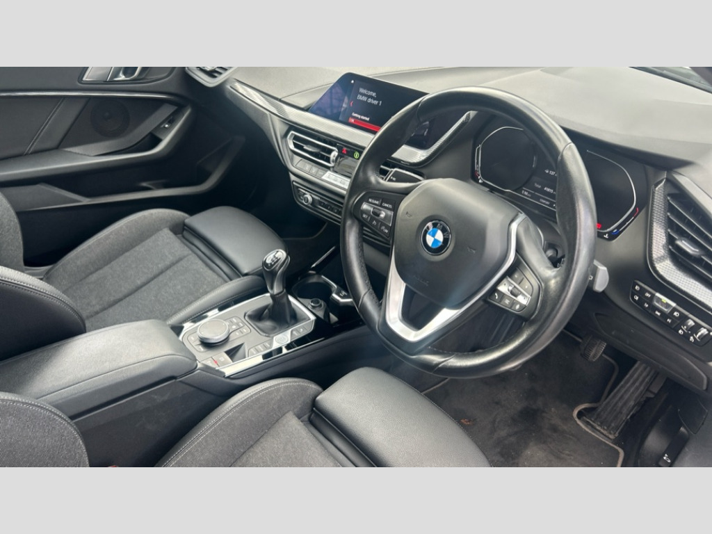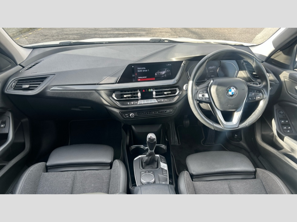 BMW 1 Series 118i Sport 5dr Active guard plus, Attentiveness assist, BMW Online services, BMW Teleservices, Check Control warning system for monitoring of lights and door/luggage compartment open warning, Connected eDrive Services, Cruise control with brake assist, Eco pro mode, Electric power steering with Servotronic steering optimised at all speed ranges, Integrated owners handbook, Lane departure warning system, Oil sensor for level and grade, On board computer, Optimum shift indicator, Personal Profile, Pull away assistant, Speed limiter, 6 speed manual transmission, Aluminium lightweight construction, Anti roll bar front and rear, Balancer shaft, Double VANOS, Drive Performance Control, Electronic differential lock, High precision injection, Petrol Particulate Filter, VALVETRONIC engine management, Bluetooth audio streaming, DAB Digital radio, Auto dimming rear view mirror, Body colour door handles, Body colour mirror caps, Chrome exhaust tailpipe in single, round (Exhaust tailpipe, stainless steel - single, round), Chrome kidney grille with extra wide black, high gloss black vertical slats, Direction indicator side lights in exterior mirrors, Fading support, Follow me home headlights, Front and rear electric windows with open and close fingertip control, anti trap facility and comfort closing, Front bumper in Body colour with exclusive Sport air inlets finished in High gloss Black, Front door sill finishers in black plastic with BMW designation, Green tinted heat protection glazing, Heated, electrically adjustable exterior mirror aspheric on driver side, convex on passenger side, High gloss shadow line exterior trim, High level third brake light, LED daytime running lights, LED eyebrow turn indicators, LED front fog lights, Lightweight engineering, Manual headlight beam throw control, Matt black air guide grilles, Matt black roof moulding, B pillar finisher and wheel arch trim, Matt black window frame, Model designation on right side of tailgate, Nearside reverse light in rear light cluster, Preparation for high beam assistant, Rain sensor including auto headlights activation, Rear bumper in Body colour with exclusive Sport design elements finished in High gloss Black, Rear fog lights, Rear window wiper, Shark fin antenna, Visible VIN plate, Welcome lighting, Windscreen wipers with integrated washing jets, 12V power socket in centre console, 2 cupholders in front centre console, 3 rear seat head restraints, 3 spoke sports leather steering wheel in pearl Chrome, Child seat ISOFIX attachment for two outer rear seats and front passenger seat with anchorage points, Conditioned based service, Driver side folding compartment in instrument panel, Folding rear clothes hook, Folding rear seats, Four grab handles integrated in roof lining, Front and rear door pockets, Front and rear side armrest integrated into door trim, Front armrest foldable with integrated storage compartment, Front sports seats with electric side bolster adjustment, Glove compartment, Height adjustable front head restraints, Manual adjust steering wheel, Multi-function controls for steering wheel, Rear seat backrest with manual 60:40 split folding with 3 top tether clips integrated on rear of seat panels, Storage compartment in centre console, Sun visors with vanity mirrors and insert tab, Two zone automatic air conditioning, Velour floor mats, Connected pack professional - 1 Series, Extended storage pack - 1 Series, Interior lights pack - 1 Series, 2 tone horn, 3 point seatbelts on all seats, front pyrotechnic belt tensioners, stopper and belt force limiters, rear coded belt buckles, Airbags - Front driver and passenger, front and rear head, front side, curtain head protection, Anti lock braking system (ABS) with brake assist, BMW emergency call, Brake drying, Braking readiness, City braking function, Crash sensor activating central locking release, hazard warning lights, fuel cut off, interior lighting + activation of safety battery terminal clamp, Driver and front passenger seat belt security check, Dynamic stability control + (DSC+), Dynamic Traction Control - DTC, Electrically operated hand brake, Front and rear disc brakes, Front passenger manual airbag deactivation, Rear child proof door locks, Seatbelt warning, Side impact protection, Tyre pressure monitoring system, Warning triangle and first aid kit, Automatic drive away locking facility, Central locking switch for all doors, fuel filler cap and luggage compartment, Deadlocking function system to all doors, Locking wheel bolts, Remote central locking with two Integrate key, one button for opening and closing all lock, open and close window, button for open luggage compartment, Start/stop button with comfort go keyless engine start and auto start stop deactivation button, Thatcham Cat.1 alarm and immobiliser, Contrast stitching on instrument panel, Illuminated Berlin interior trim, Reduced rolling resistance tyres