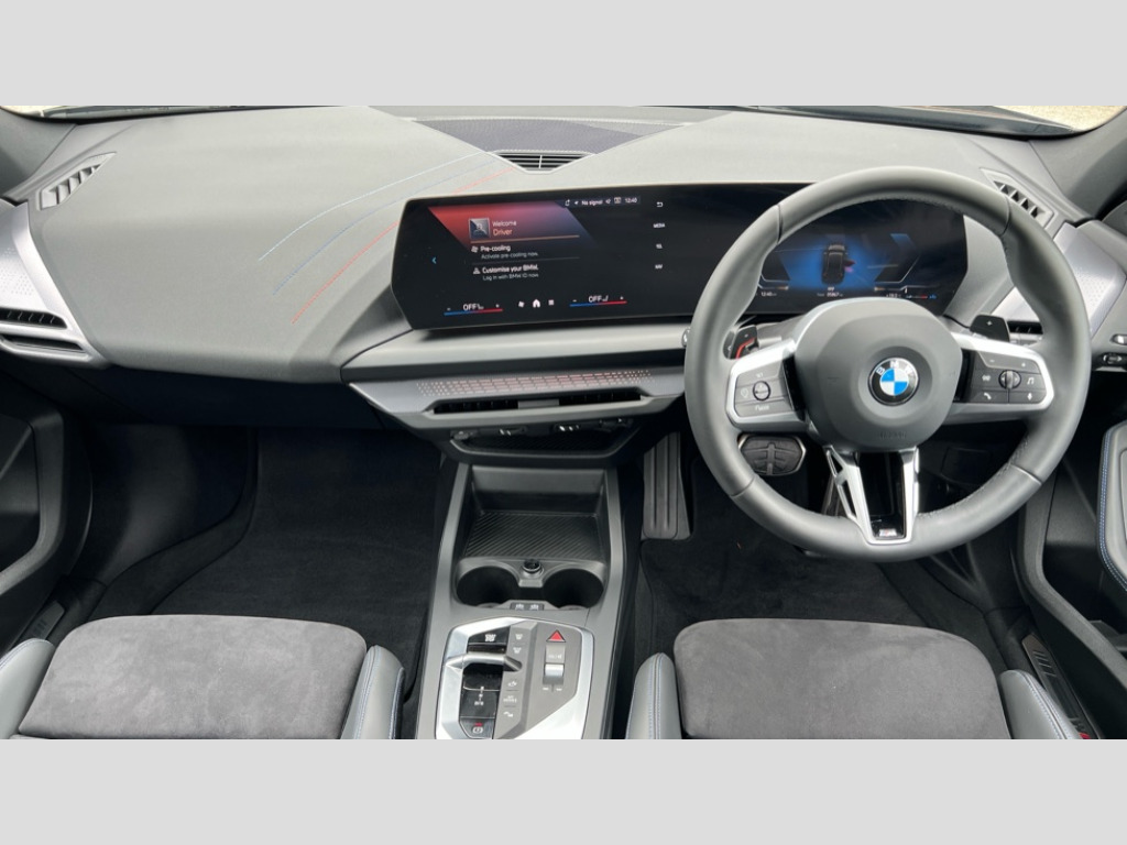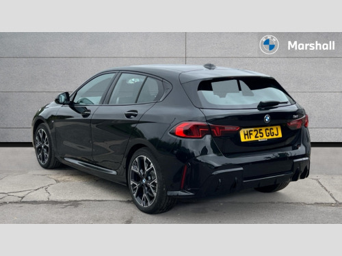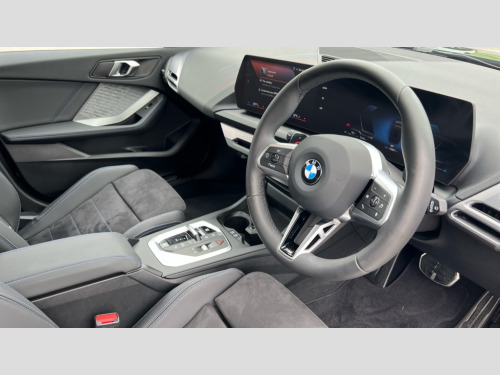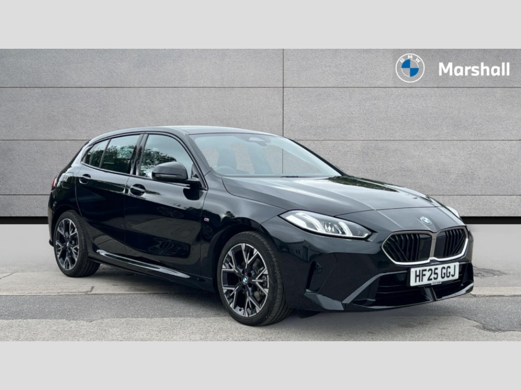 BMW 1 Series 120 M Sport 5dr Step Auto Active guard plus, Attentiveness assist, Bluetooth / WiFi interface for wireless connection of mobile terminal devices and audio streaming, BMW ConnectedDrive online services, BMW Live cockpit plus, BMW Teleservices, Check Control warning system for monitoring of lights and door/luggage compartment open warning, Eco pro mode, Electric power steering with Servotronic steering optimised at all speed ranges, Evasion assistant, Flat airvents in instrument panel with adjustable slats, Front and rear parking sensors, Front axle single joint with specific axle kinematics to minimise drive influences on steering + provide increased rigidity agile driving behaviour, Gearshift time display in manual mode, Integrated owners handbook, Left turn warning with brake function, My modes (Personal / Efficient / Sport), Oil sensor for level and grade, On board computer, Optimum shift indicator, Park assist including reversing assistant, lateral parking aid and reversing assist camera, Personal e-SIM, Personal Profile, Pull away assistant, Rigidly mounted rear subframe - Multi link construction with separate spring / damper configuration and excellent driving characteristics, Speed limit Info including no-overtaking indicator, Speed limiter, 49 litre fuel tank, Aluminium lightweight construction, Anti roll bar front and rear, Balancer shaft, Double VANOS twin scroll turbocharging system, Drive Performance Control, Electronic differential lock, Electronic selector lever, High precision injection, M Adaptive suspension, Petrol Particulate Filter, Steptronic transmission with double clutch, Twin tube gas filled shock absorbers with degressive characteristic curve, VALVETRONIC engine management, DAB Digital radio, Auto dimming rear view mirror, Automatic windscreen wipers and automatic headlight, Body colour door handles, Body colour mirror caps, Body colour roof trims, Chrome 'M' logo side designation, Chrome exhaust twin tailpipes round 90mm in left, Chrome kidney grille frame with Satin Aluminium struts, Direction indicator side lights in exterior mirrors, Electrically adjustable exterior mirror with mirror adjustment switch on drivers armrest and aspheric on driver side, convex on passenger side, Exterior M sport design elements, Fading support, Folding side mirrors with auto dimming/folding wing mirrors with auto dimming, Follow me home headlights, Front and rear bumper system with replaceable deformation elements, Front and rear electric windows with open and close fingertip control, anti trap facility and comfort closing, Front bumper panel with M specific design in vehicle colour with inserts in black high gloss, Front door sill finishers in black plastic with M designation in metallic look, Green tinted heat protection glazing, Heated rear window, High gloss black exterior mirrors, High gloss shadowline window frame, Recess cover mirror frames and B/C pillar embelisher trim, High level third brake light, Integrated front windscreen with washer jets, LED daytime running lights, LED eyebrow turn indicators, LED front fog lights, LED Headlights, Lightweight engineering, M identification on the sides, Matt black air guide grilles, Matt black wheel arch trim, Model badge on tailgate right, Nearside reverse light in rear light cluster, Preparation for high beam assistant, Rain sensor, Rear bumper panel with M-specific design in vehicle colour with inserts in black high gloss, Rear fog lights, Rear side wing doors, Rear window wiper, Shark fin antenna, Side sill covers with M specific design in body colour, Trailer stabilisation logic, Visible VIN plate, Welcome lighting, 12V power socket in front centre console with blanking plug, 3 rear seat head restraints, 3 seat bench in 2nd row, 3 spoke sports leather steering wheel with black leather and stitching, pearl chrome decorative finish, specific M Badge, Anthracite front and rear floor mats, Anthracite headlining, Black boot net with lashing eyes, Cargo function on 2nd seat row, Child seat ISOFIX attachment for two outer rear seats and front passenger seat with anchorage points, Conditioned based service, Driver and front passenger backrest net on rear, Driver and front passenger seat heating, Driver side folding compartment in instrument panel, Folding rear clothes hook, Footrest and pedals in black plastic, Four grab handles integrated in roof lining, Front and rear door pockets with bottle holders, Front and rear side armrest integrated into door trim, Front armrest with storage compartment, Gearshift paddles on steering wheel, Glove compartment, Height adjustable front head restraints, Luggage compartment for bag hooks on left and right, foldable luggage compartment liner and four lashing eyelets, Manual adjust steering wheel, Multi-function controls for steering wheel, Rear seat backrest with manual 60:40 split folding with 3 top tether clips integrated on rear of seat panels, Single front passenger seat, Storage compartment in centre console, Storage compartment in luggage compartment, Stowage of the parcel shelf in luggage compartment trim, Sun visors with vanity mirrors and insert tab, Two front centre console cupholders, Type C two USB ports in rear centre console, Upper retaining strap integrated into backrest rear panels, Connected pack professional - 1 Series, Interior lights pack - 1 Series, M Sport exterior styling aerodynamics pack - 1 Series, 2 tone horn, 3 point seatbelts on all seats, front pyrotechnic belt tensioners, stopper and belt force limiters, rear coded belt buckles, Airbags - Front driver/passenger, front and rear curtain head protection, front side, manual deactivation of front passenger airbag, Anti lock braking system (ABS) with brake assist, BMW emergency call, Brake drying, Braking readiness, Child proof locking system in rear door, Comfort modes, Cornering brake control, Crash sensor activating of airbags, Unlocking doors, hazard warning lights, interior light, safety battery terminal, D