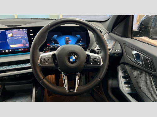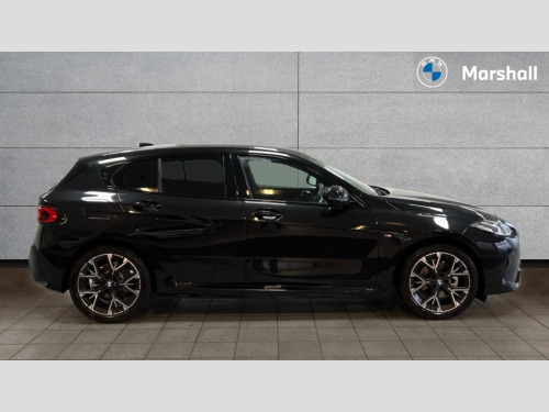BMW 1 Series 120 M Sport 5dr Step Auto Active guard plus, Attentiveness assist, Bluetooth / WiFi interface for wireless connection of mobile terminal devices and audio streaming, BMW ConnectedDrive online services, BMW Live cockpit plus, BMW Teleservices, Check Control warning system for monitoring of lights and door/luggage compartment open warning, Eco pro mode, Electric power steering with Servotronic steering optimised at all speed ranges, Evasion assistant, Flat airvents in instrument panel with adjustable slats, Front and rear parking sensors, Front axle single joint with specific axle kinematics to minimise drive influences on steering + provide increased rigidity agile driving behaviour, Gearshift time display in manual mode, Integrated owners handbook, Left turn warning with brake function, My modes (Personal / Efficient / Sport), Oil sensor for level and grade, On board computer, Optimum shift indicator, Park assist including reversing assistant, lateral parking aid and reversing assist camera, Personal e-SIM, Personal Profile, Pull away assistant, Rigidly mounted rear subframe - Multi link construction with separate spring / damper configuration and excellent driving characteristics, Speed limit Info including no-overtaking indicator, Speed limiter, 49 litre fuel tank, Aluminium lightweight construction, Anti roll bar front and rear, Balancer shaft, Double VANOS twin scroll turbocharging system, Drive Performance Control, Electronic differential lock, Electronic selector lever, High precision injection, M Adaptive suspension, Petrol Particulate Filter, Steptronic transmission with double clutch, Twin tube gas filled shock absorbers with degressive characteristic curve, VALVETRONIC engine management, DAB Digital radio, Auto dimming rear view mirror, Automatic windscreen wipers and automatic headlight, Body colour door handles, Body colour mirror caps, Body colour roof trims, Chrome 'M' logo side designation, Chrome exhaust twin tailpipes round 90mm in left, Chrome kidney grille frame with Satin Aluminium struts, Direction indicator side lights in exterior mirrors, Electrically adjustable exterior mirror with mirror adjustment switch on drivers armrest and aspheric on driver side, convex on passenger side, Exterior M sport design elements, Fading support, Folding side mirrors with auto dimming/folding wing mirrors with auto dimming, Follow me home headlights, Front and rear bumper system with replaceable deformation elements, Front and rear electric windows with open and close fingertip control, anti trap facility and comfort closing, Front bumper panel with M specific design in vehicle colour with inserts in black high gloss, Front door sill finishers in black plastic with M designation in metallic look, Green tinted heat protection glazing, Heated rear window, High gloss black exterior mirrors, High gloss shadowline window frame, Recess cover mirror frames and B/C pillar embelisher trim, High level third brake light, Integrated front windscreen with washer jets, LED daytime running lights, LED eyebrow turn indicators, LED front fog lights, LED Headlights, Lightweight engineering, M identification on the sides, Matt black air guide grilles, Matt black wheel arch trim, Model badge on tailgate right, Nearside reverse light in rear light cluster, Preparation for high beam assistant, Rain sensor, Rear bumper panel with M-specific design in vehicle colour with inserts in black high gloss, Rear fog lights, Rear side wing doors, Rear window wiper, Shark fin antenna, Side sill covers with M specific design in body colour, Trailer stabilisation logic, Visible VIN plate, Welcome lighting, 12V power socket in front centre console with blanking plug, 3 rear seat head restraints, 3 seat bench in 2nd row, 3 spoke sports leather steering wheel with black leather and stitching, pearl chrome decorative finish, specific M Badge, Anthracite front and rear floor mats, Anthracite headlining, Black boot net with lashing eyes, Cargo function on 2nd seat row, Child seat ISOFIX attachment for two outer rear seats and front passenger seat with anchorage points, Conditioned based service, Driver and front passenger backrest net on rear, Driver and front passenger seat heating, Driver side folding compartment in instrument panel, Folding rear clothes hook, Footrest and pedals in black plastic, Four grab handles integrated in roof lining, Front and rear door pockets with bottle holders, Front and rear side armrest integrated into door trim, Front armrest with storage compartment, Gearshift paddles on steering wheel, Glove compartment, Height adjustable front head restraints, Luggage compartment for bag hooks on left and right, foldable luggage compartment liner and four lashing eyelets, Manual adjust steering wheel, Multi-function controls for steering wheel, Rear seat backrest with manual 60:40 split folding with 3 top tether clips integrated on rear of seat panels, Single front passenger seat, Storage compartment in centre console, Storage compartment in luggage compartment, Stowage of the parcel shelf in luggage compartment trim, Sun visors with vanity mirrors and insert tab, Two front centre console cupholders, Type C two USB ports in rear centre console, Upper retaining strap integrated into backrest rear panels, Connected pack professional - 1 Series, Interior lights pack - 1 Series, M Sport exterior styling aerodynamics pack - 1 Series, 2 tone horn, 3 point seatbelts on all seats, front pyrotechnic belt tensioners, stopper and belt force limiters, rear coded belt buckles, Airbags - Front driver/passenger, front and rear curtain head protection, front side, manual deactivation of front passenger airbag, Anti lock braking system (ABS) with brake assist, BMW emergency call, Brake drying, Braking readiness, Child proof locking system in rear door, Comfort modes, Cornering brake control, Crash sensor activating of airbags, Unlocking doors, hazard warning lights, interior light, safety battery terminal, D