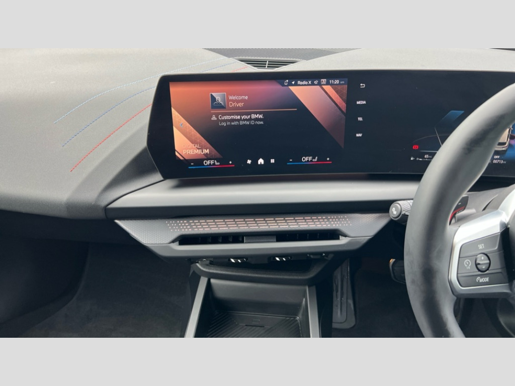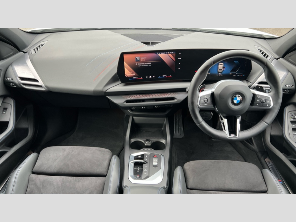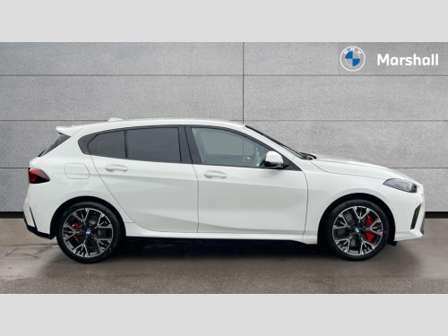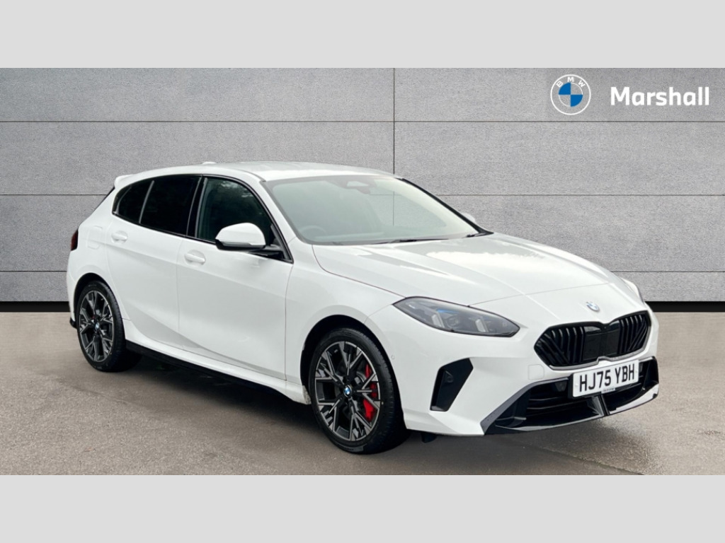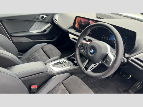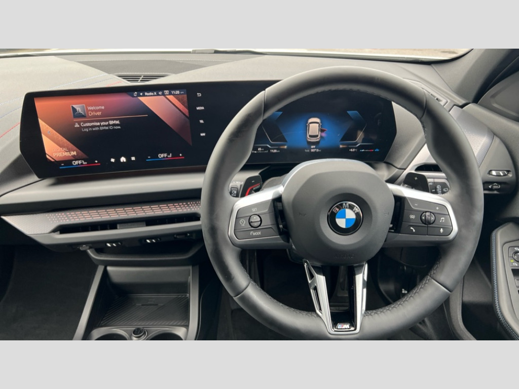 BMW 1 Series 120 M Sport 5dr Step Auto Active guard plus, Attentiveness assist, Bluetooth / WiFi interface for wireless connection of mobile terminal devices and audio streaming, BMW ConnectedDrive online services, BMW Live cockpit plus, BMW Teleservices, Check Control warning system for monitoring of lights and door/luggage compartment open warning, Eco pro mode, Electric power steering with Servotronic steering optimised at all speed ranges, Evasion assistant, Flat airvents in instrument panel with adjustable slats, Front and rear parking sensors, Front axle single joint with specific axle kinematics to minimise drive influences on steering + provide increased rigidity agile driving behaviour, Gearshift time display in manual mode, Integrated owners handbook, Left turn warning with brake function, My modes (Personal / Efficient / Sport), Oil sensor for level and grade, On board computer, Optimum shift indicator, Park assist including reversing assistant, lateral parking aid and reversing assist camera, Personal e-SIM, Personal Profile, Pull away assistant, Rigidly mounted rear subframe - Multi link construction with separate spring / damper configuration and excellent driving characteristics, Speed limit Info including no-overtaking indicator, Speed limiter, 49 litre fuel tank, Aluminium lightweight construction, Anti roll bar front and rear, Balancer shaft, Double VANOS twin scroll turbocharging system, Drive Performance Control, Electronic differential lock, Electronic selector lever, High precision injection, M Adaptive suspension, Petrol Particulate Filter, Steptronic transmission with double clutch, Twin tube gas filled shock absorbers with degressive characteristic curve, VALVETRONIC engine management, DAB Digital radio, Auto dimming rear view mirror, Automatic windscreen wipers and automatic headlight, Body colour door handles, Body colour roof trims, Chrome 'M' logo side designation, Chrome exhaust twin tailpipes round 90mm in left, Chrome kidney grille frame with Satin Aluminium struts, Direction indicator side lights in exterior mirrors, Electrically adjustable exterior mirror with mirror adjustment switch on drivers armrest and aspheric on driver side, convex on passenger side, Exterior M sport design elements, Fading support, Folding side mirrors with auto dimming/folding wing mirrors with auto dimming, Follow me home headlights, Front and rear bumper system with replaceable deformation elements, Front and rear electric windows with open and close fingertip control, anti trap facility and comfort closing, Front bumper panel with M specific design in vehicle colour with inserts in black high gloss, Front door sill finishers in black plastic with M designation in metallic look, Green tinted heat protection glazing, Heated rear window, High gloss black exterior mirrors, High gloss shadowline window frame, Recess cover mirror frames and B/C pillar embelisher trim, High level third brake light, Integrated front windscreen with washer jets, LED daytime running lights, LED eyebrow turn indicators, LED front fog lights, LED Headlights, Lightweight engineering, Matt black air guide grilles, Matt black wheel arch trim, Model badge on tailgate right, Nearside reverse light in rear light cluster, Preparation for high beam assistant, Rain sensor, Rear bumper panel with M-specific design in vehicle colour with inserts in black high gloss, Rear fog lights, Rear side wing doors, Rear window wiper, Shark fin antenna, Side sill covers with M specific design in body colour, Trailer stabilisation logic, Visible VIN plate, Welcome lighting, 12V power socket in front centre console with blanking plug, 3 rear seat head restraints, 3 seat bench in 2nd row, 3 spoke sports leather steering wheel with black leather and stitching, pearl chrome decorative finish, specific M Badge, Anthracite front and rear floor mats, Anthracite headlining, Black boot net with lashing eyes, Cargo function on 2nd seat row, Child seat ISOFIX attachment for two outer rear seats and front passenger seat with anchorage points, Conditioned based service, Driver and front passenger backrest net on rear, Driver and front passenger seat heating, Driver side folding compartment in instrument panel, Folding rear clothes hook, Footrest and pedals in black plastic, Four grab handles integrated in roof lining, Front and rear door pockets with bottle holders, Front and rear side armrest integrated into door trim, Front armrest with storage compartment, Gearshift paddles on steering wheel, Glove compartment, Height adjustable front head restraints, Luggage compartment for bag hooks on left and right, foldable luggage compartment liner and four lashing eyelets, Manual adjust steering wheel, Multi-function controls for steering wheel, Rear seat backrest with manual 60:40 split folding with 3 top tether clips integrated on rear of seat panels, Single front passenger seat, Storage compartment in centre console, Storage compartment in luggage compartment, Stowage of the parcel shelf in luggage compartment trim, Sun visors with vanity mirrors and insert tab, Two front centre console cupholders, Type C two USB ports in rear centre console, Upper retaining strap integrated into backrest rear panels, Connected pack professional - 1 Series, Interior lights pack - 1 Series, M Sport exterior styling aerodynamics pack - 1 Series, 2 tone horn, 3 point seatbelts on all seats, front pyrotechnic belt tensioners, stopper and belt force limiters, rear coded belt buckles, Airbags - Front driver/passenger, front and rear curtain head protection, front side, manual deactivation of front passenger airbag, Anti lock braking system (ABS) with brake assist, BMW emergency call, Brake drying, Braking readiness, Child proof locking system in rear door, Comfort modes, Cornering brake control, Crash sensor activating of airbags, Unlocking doors, hazard warning lights, interior light, safety battery terminal, Driver and front passenger seat belt security check, Dyna
