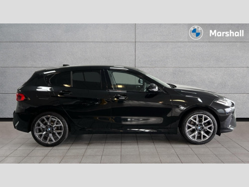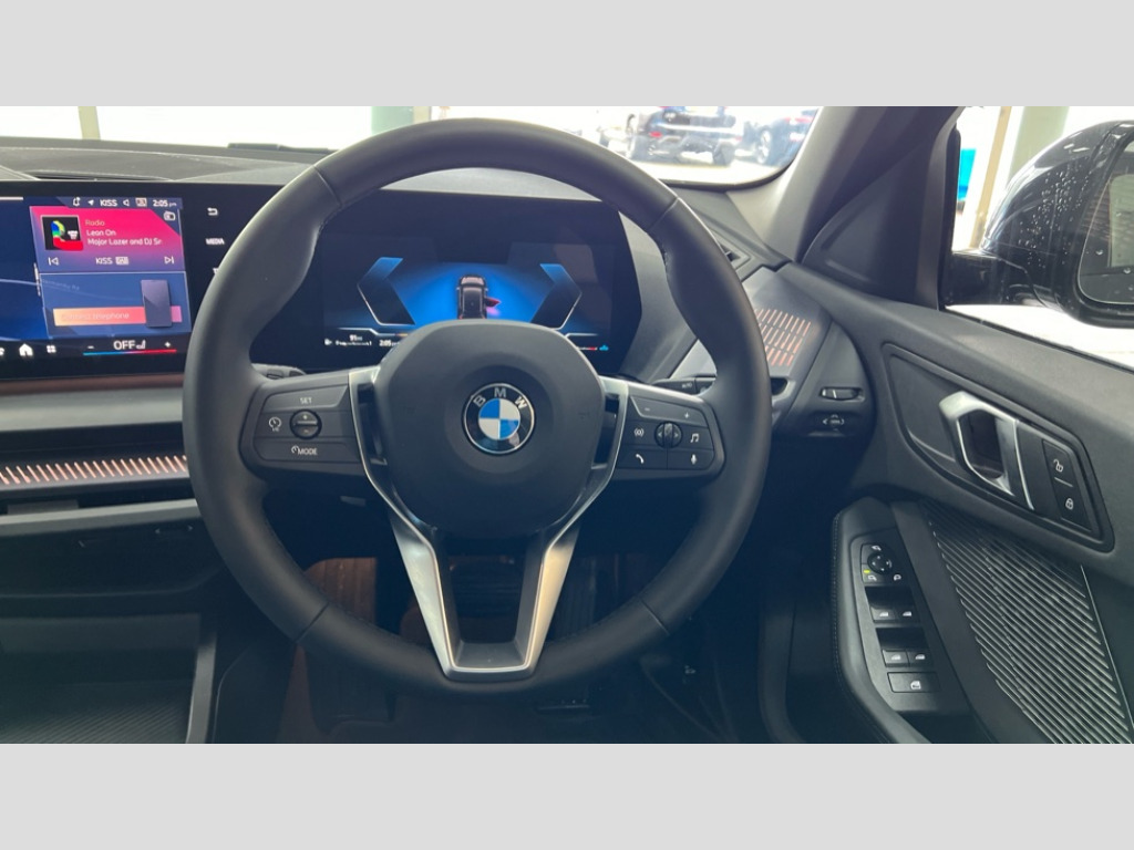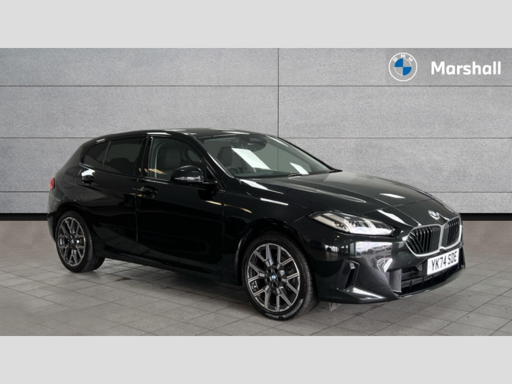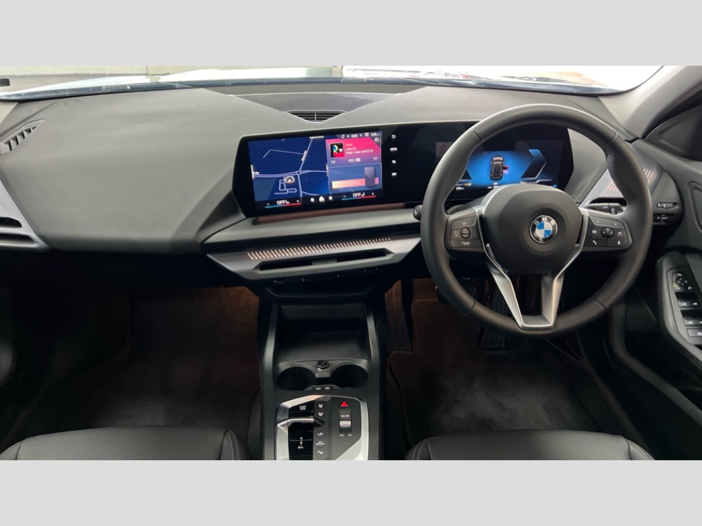 BMW 1 Series 120 Sport 5dr Step Auto Active guard plus, Attentiveness assist, Bluetooth / WiFi interface for wireless connection of mobile terminal devices and audio streaming, BMW ConnectedDrive online services, BMW Live cockpit plus, BMW Teleservices, Check Control warning system for monitoring of lights and door/luggage compartment open warning, Eco pro mode, Electric power steering with Servotronic steering optimised at all speed ranges, Evasion assistant, Flat airvents in instrument panel with adjustable slats, Front and rear parking sensors, Front axle single joint with specific axle kinematics to minimise drive influences on steering + provide increased rigidity agile driving behaviour, Integrated owners handbook, Left turn warning with brake function, My modes (Personal / Efficient / Sport), Oil sensor for level and grade, On board computer, Optimum shift indicator, Park assist including reversing assistant, lateral parking aid and reversing assist camera, Personal e-SIM, Personal Profile, Pull away assistant, Rigidly mounted rear subframe - Multi link construction with separate spring / damper configuration and excellent driving characteristics, Speed limit Info including no-overtaking indicator, Speed limiter, 49 litre fuel tank, 7 speed automatic transmission with double clutch technology, Aluminium lightweight construction, Anti roll bar front and rear, Balancer shaft, Double VANOS twin scroll turbocharging system, Drive Performance Control, Electronic differential lock, Electronic selector lever, High precision injection, Petrol Particulate Filter, Suspension with twin tube gas filled shock absorbers with degressive characteristic curve, VALVETRONIC engine management, DAB Digital radio, Auto dimming rear view mirror, Automatic windscreen wipers and automatic headlight, Body colour door handles, Body colour mirror caps, Chrome exhaust twin tailpipes round 90mm in left, Direction indicator side lights in exterior mirrors, Electrically adjustable exterior mirror with mirror adjustment switch on drivers armrest and aspheric on driver side, convex on passenger side, Fading support, Follow me home headlights, Front and rear bumper system with replaceable deformation elements, Front and rear electric windows with open and close fingertip control, anti trap facility and comfort closing, Front bumper in Body colour with exclusive Sport air inlets finished in High gloss Black, Front door sill finishers in black plastic with BMW designation in metallic look, Grained matt black roof strip, Green tinted heat protection glazing, Heated rear window, High gloss black exterior mirrors, High gloss shadowline window frame, Recess cover mirror frames and B/C pillar embelisher trim, High level third brake light, Integrated front windscreen with washer jets, Kidney grille in chrome frame with highgloss black struts, LED daytime running lights, LED eyebrow turn indicators, LED front fog lights, LED Headlights, Lightweight engineering, Manual headlight beam throw control, Manual headlight levelling, Matt black air guide grilles, Matt black wheel arch trim, Model badge on tailgate right, Nearside reverse light in rear light cluster, Power folding and heated door mirrors, Preparation for high beam assistant, Rain sensor, Rear bumper in Body colour with exclusive Sport design elements finished in High gloss Black, Rear fog lights, Rear side wing doors, Rear window wiper, Shark fin antenna, Trailer stabilisation logic, Visible VIN plate, Welcome lighting, 12V power socket in front centre console with blanking plug, 3 rear seat head restraints, 3 seat bench in 2nd row, 3 spoke sports leather steering wheel in black leather with black stitching and decorative finisher in pearl chrome, Anthracite front and rear floor mats, Black boot net with lashing eyes, Cargo function on 2nd seat row, Child seat ISOFIX attachment for two outer rear seats and front passenger seat with anchorage points, Conditioned based service, Driver and front passenger backrest net on rear, Driver and front passenger seat heating, Driver side folding compartment in instrument panel, Folding rear clothes hook, Footrest and pedals in black plastic, Four grab handles integrated in roof lining, Front and rear door pockets with bottle holders, Front and rear side armrest integrated into door trim, Front armrest with storage compartment, Glove compartment, Height adjustable front head restraints, Luggage compartment for bag hooks on left and right, foldable luggage compartment liner and four lashing eyelets, Manual adjust steering wheel, Multi-function controls for steering wheel, Rear seat backrest with manual 60:40 split folding with 3 top tether clips integrated on rear of seat panels, Single front passenger seat, Storage compartment in centre console, Storage compartment in luggage compartment, Stowage of the parcel shelf in luggage compartment trim, Sun visors with vanity mirrors and insert tab, Two front centre console cupholders, Type C two USB ports in rear centre console, Upper retaining strap integrated into backrest rear panels, Connected pack professional - 1 Series, Interior lights pack - 1 Series, 2 tone horn, 3 point seatbelts on all seats, front pyrotechnic belt tensioners, stopper and belt force limiters, rear coded belt buckles, Airbags - Front driver/passenger, front and rear curtain head protection, front side, manual deactivation of front passenger airbag, Anti lock braking system (ABS) with brake assist, BMW emergency call, Brake drying, Braking readiness, Child proof locking system in rear door, Comfort modes, Cornering brake control, Crash sensor activating of airbags, Unlocking doors, hazard warning lights, interior light, safety battery terminal, Driver and front passenger seat belt security check, Dynamic stability control + (DSC+), Dynamic Traction Control - DTC, Electrically operated hand brake including automatic hold function, Front and rear disc brakes, Seatbelt warning, Side impact protection, Tyre pressure