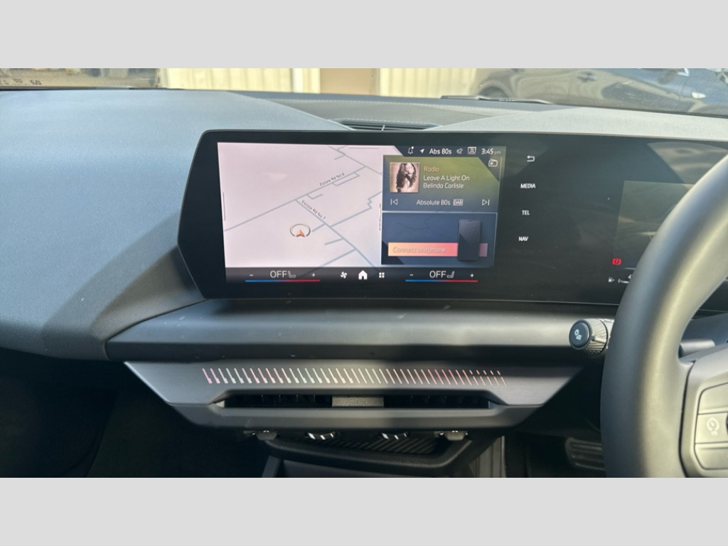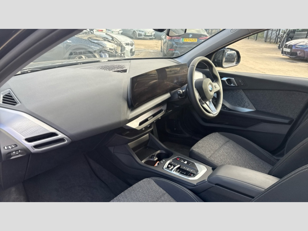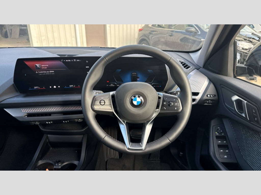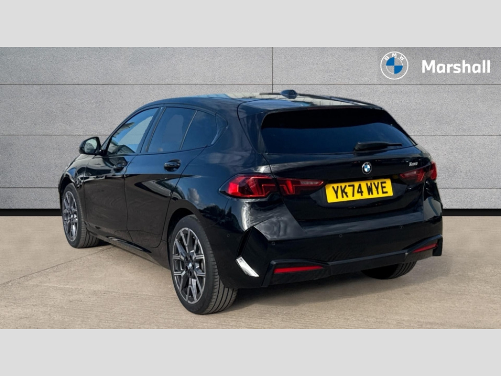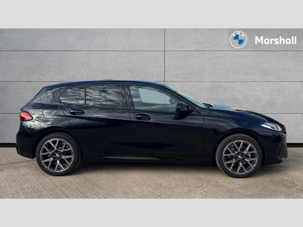 BMW 1 Series 120 Sport 5dr Step Auto Active guard plus, Attentiveness assist, Bluetooth / WiFi interface for wireless connection of mobile terminal devices and audio streaming, BMW ConnectedDrive online services, BMW Live cockpit plus, BMW Teleservices, Check Control warning system for monitoring of lights and door/luggage compartment open warning, Eco pro mode, Electric power steering with Servotronic steering optimised at all speed ranges, Evasion assistant, Flat airvents in instrument panel with adjustable slats, Front and rear parking sensors, Front axle single joint with specific axle kinematics to minimise drive influences on steering + provide increased rigidity agile driving behaviour, Integrated owners handbook, Left turn warning with brake function, My modes (Personal / Efficient / Sport), Oil sensor for level and grade, On board computer, Optimum shift indicator, Park assist including reversing assistant, lateral parking aid and reversing assist camera, Personal e-SIM, Personal Profile, Pull away assistant, Rigidly mounted rear subframe - Multi link construction with separate spring / damper configuration and excellent driving characteristics, Speed limit Info including no-overtaking indicator, Speed limiter, 49 litre fuel tank, 7 speed automatic transmission with double clutch technology, Aluminium lightweight construction, Anti roll bar front and rear, Balancer shaft, Double VANOS twin scroll turbocharging system, Drive Performance Control, Electronic differential lock, Electronic selector lever, High precision injection, Petrol Particulate Filter, Suspension with twin tube gas filled shock absorbers with degressive characteristic curve, VALVETRONIC engine management, DAB Digital radio, Auto dimming rear view mirror, Automatic windscreen wipers and automatic headlight, Body colour door handles, Body colour mirror caps, Chrome exhaust twin tailpipes round 90mm in left, Direction indicator side lights in exterior mirrors, Electrically adjustable exterior mirror with mirror adjustment switch on drivers armrest and aspheric on driver side, convex on passenger side, Fading support, Follow me home headlights, Front and rear bumper system with replaceable deformation elements, Front and rear electric windows with open and close fingertip control, anti trap facility and comfort closing, Front bumper in Body colour with exclusive Sport air inlets finished in High gloss Black, Front door sill finishers in black plastic with BMW designation in metallic look, Grained matt black roof strip, Green tinted heat protection glazing, Heated rear window, High gloss black exterior mirrors, High gloss shadowline window frame, Recess cover mirror frames and B/C pillar embelisher trim, High level third brake light, Integrated front windscreen with washer jets, Kidney grille in chrome frame with highgloss black struts, LED daytime running lights, LED eyebrow turn indicators, LED front fog lights, LED Headlights, Lightweight engineering, Manual headlight beam throw control, Manual headlight levelling, Matt black air guide grilles, Matt black wheel arch trim, Model badge on tailgate right, Nearside reverse light in rear light cluster, Power folding and heated door mirrors, Preparation for high beam assistant, Rain sensor, Rear bumper in Body colour with exclusive Sport design elements finished in High gloss Black, Rear fog lights, Rear side wing doors, Rear window wiper, Shark fin antenna, Trailer stabilisation logic, Visible VIN plate, Welcome lighting, 12V power socket in front centre console with blanking plug, 3 rear seat head restraints, 3 seat bench in 2nd row, 3 spoke sports leather steering wheel in black leather with black stitching and decorative finisher in pearl chrome, Anthracite front and rear floor mats, Black boot net with lashing eyes, Cargo function on 2nd seat row, Child seat ISOFIX attachment for two outer rear seats and front passenger seat with anchorage points, Conditioned based service, Driver and front passenger backrest net on rear, Driver and front passenger seat heating, Driver side folding compartment in instrument panel, Folding rear clothes hook, Footrest and pedals in black plastic, Four grab handles integrated in roof lining, Front and rear door pockets with bottle holders, Front and rear side armrest integrated into door trim, Front armrest with storage compartment, Glove compartment, Height adjustable front head restraints, Luggage compartment for bag hooks on left and right, foldable luggage compartment liner and four lashing eyelets, Manual adjust steering wheel, Multi-function controls for steering wheel, Rear seat backrest with manual 60:40 split folding with 3 top tether clips integrated on rear of seat panels, Single front passenger seat, Storage compartment in centre console, Storage compartment in luggage compartment, Stowage of the parcel shelf in luggage compartment trim, Sun visors with vanity mirrors and insert tab, Two front centre console cupholders, Type C two USB ports in rear centre console, Upper retaining strap integrated into backrest rear panels, Connected pack professional - 1 Series, Interior lights pack - 1 Series, 2 tone horn, 3 point seatbelts on all seats, front pyrotechnic belt tensioners, stopper and belt force limiters, rear coded belt buckles, Airbags - Front driver/passenger, front and rear curtain head protection, front side, manual deactivation of front passenger airbag, Anti lock braking system (ABS) with brake assist, BMW emergency call, Brake drying, Braking readiness, Child proof locking system in rear door, Comfort modes, Cornering brake control, Crash sensor activating of airbags, Unlocking doors, hazard warning lights, interior light, safety battery terminal, Driver and front passenger seat belt security check, Dynamic stability control + (DSC+), Dynamic Traction Control - DTC, Electrically operated hand brake including automatic hold function, Front and rear disc brakes, Seatbelt warning, Side impact protection, Tyre pressure