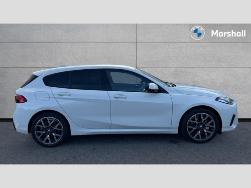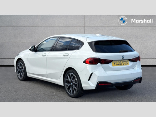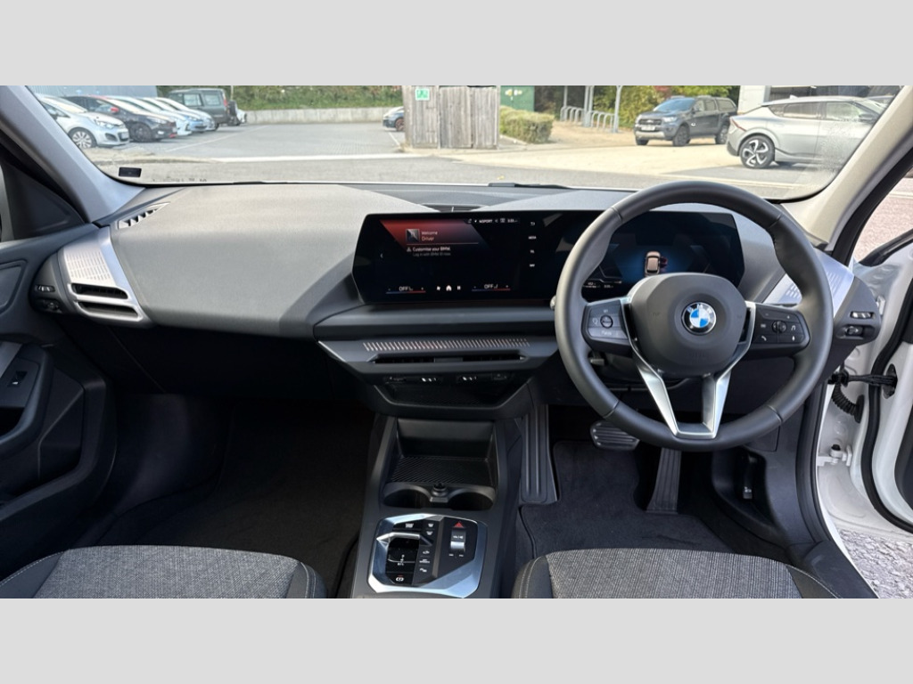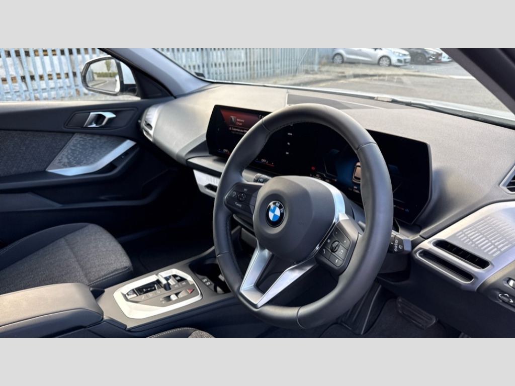 BMW 1 Series 120 Sport 5dr Step Auto Active guard plus, Attentiveness assist, Bluetooth / WiFi interface for wireless connection of mobile terminal devices and audio streaming, BMW ConnectedDrive online services, BMW Live cockpit plus, BMW Teleservices, Check Control warning system for monitoring of lights and door/luggage compartment open warning, Eco pro mode, Electric power steering with Servotronic steering optimised at all speed ranges, Evasion assistant, Flat airvents in instrument panel with adjustable slats, Front and rear parking sensors, Front axle single joint with specific axle kinematics to minimise drive influences on steering + provide increased rigidity agile driving behaviour, Integrated owners handbook, Left turn warning with brake function, My modes (Personal / Efficient / Sport), Oil sensor for level and grade, On board computer, Optimum shift indicator, Park assist including reversing assistant, lateral parking aid and reversing assist camera, Personal e-SIM, Personal Profile, Pull away assistant, Rigidly mounted rear subframe - Multi link construction with separate spring / damper configuration and excellent driving characteristics, Speed limit Info including no-overtaking indicator, Speed limiter, 49 litre fuel tank, 7 speed automatic transmission with double clutch technology, Aluminium lightweight construction, Anti roll bar front and rear, Balancer shaft, Double VANOS twin scroll turbocharging system, Drive Performance Control, Electronic differential lock, Electronic selector lever, High precision injection, Petrol Particulate Filter, Suspension with twin tube gas filled shock absorbers with degressive characteristic curve, VALVETRONIC engine management, DAB Digital radio, Auto dimming rear view mirror, Automatic windscreen wipers and automatic headlight, Body colour door handles, Body colour mirror caps, Chrome exhaust twin tailpipes round 90mm in left, Direction indicator side lights in exterior mirrors, Electrically adjustable exterior mirror with mirror adjustment switch on drivers armrest and aspheric on driver side, convex on passenger side, Fading support, Follow me home headlights, Front and rear bumper system with replaceable deformation elements, Front and rear electric windows with open and close fingertip control, anti trap facility and comfort closing, Front bumper in Body colour with exclusive Sport air inlets finished in High gloss Black, Front door sill finishers in black plastic with BMW designation in metallic look, Grained matt black roof strip, Green tinted heat protection glazing, Heated rear window, High gloss black exterior mirrors, High gloss shadowline window frame, Recess cover mirror frames and B/C pillar embelisher trim, High level third brake light, Integrated front windscreen with washer jets, Kidney grille in chrome frame with highgloss black struts, LED daytime running lights, LED eyebrow turn indicators, LED front fog lights, LED Headlights, Lightweight engineering, Manual headlight beam throw control, Manual headlight levelling, Matt black air guide grilles, Matt black wheel arch trim, Model badge on tailgate right, Nearside reverse light in rear light cluster, Power folding and heated door mirrors, Preparation for high beam assistant, Rain sensor, Rear bumper in Body colour with exclusive Sport design elements finished in High gloss Black, Rear fog lights, Rear side wing doors, Rear window wiper, Shark fin antenna, Trailer stabilisation logic, Visible VIN plate, Welcome lighting, 12V power socket in front centre console with blanking plug, 3 rear seat head restraints, 3 seat bench in 2nd row, 3 spoke sports leather steering wheel in black leather with black stitching and decorative finisher in pearl chrome, Anthracite front and rear floor mats, Black boot net with lashing eyes, Cargo function on 2nd seat row, Child seat ISOFIX attachment for two outer rear seats and front passenger seat with anchorage points, Conditioned based service, Driver and front passenger backrest net on rear, Driver and front passenger seat heating, Driver side folding compartment in instrument panel, Folding rear clothes hook, Footrest and pedals in black plastic, Four grab handles integrated in roof lining, Front and rear door pockets with bottle holders, Front and rear side armrest integrated into door trim, Front armrest with storage compartment, Glove compartment, Height adjustable front head restraints, Luggage compartment for bag hooks on left and right, foldable luggage compartment liner and four lashing eyelets, Manual adjust steering wheel, Multi-function controls for steering wheel, Rear seat backrest with manual 60:40 split folding with 3 top tether clips integrated on rear of seat panels, Single front passenger seat, Storage compartment in centre console, Storage compartment in luggage compartment, Stowage of the parcel shelf in luggage compartment trim, Sun visors with vanity mirrors and insert tab, Two front centre console cupholders, Type C two USB ports in rear centre console, Upper retaining strap integrated into backrest rear panels, Connected pack professional - 1 Series, Interior lights pack - 1 Series, 2 tone horn, 3 point seatbelts on all seats, front pyrotechnic belt tensioners, stopper and belt force limiters, rear coded belt buckles, Airbags - Front driver/passenger, front and rear curtain head protection, front side, manual deactivation of front passenger airbag, Anti lock braking system (ABS) with brake assist, BMW emergency call, Brake drying, Braking readiness, Child proof locking system in rear door, Comfort modes, Cornering brake control, Crash sensor activating of airbags, Unlocking doors, hazard warning lights, interior light, safety battery terminal, Driver and front passenger seat belt security check, Dynamic stability control + (DSC+), Dynamic Traction Control - DTC, Electrically operated hand brake including automatic hold function, Front and rear disc brakes, Seatbelt warning, Side impact protection, Tyre pressure