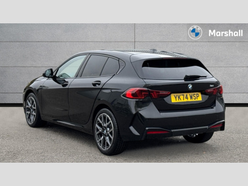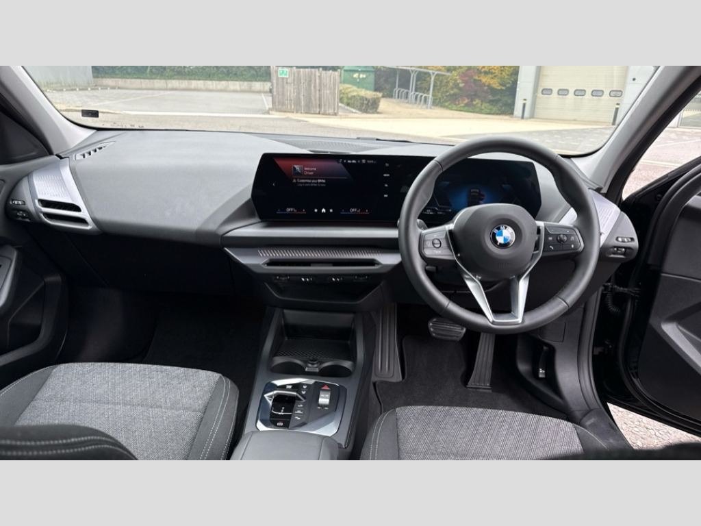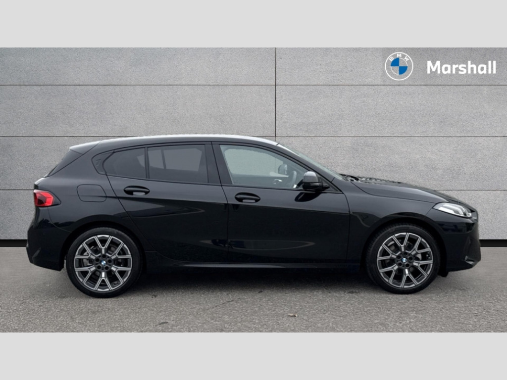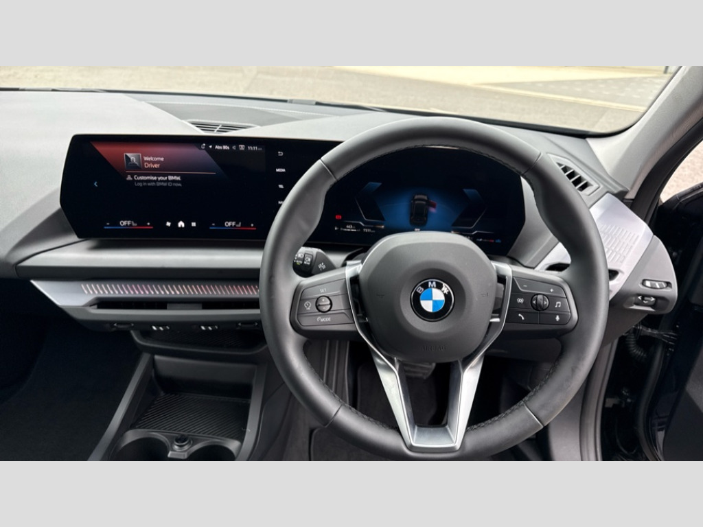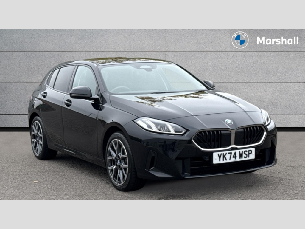 BMW 1 Series 120 Sport 5dr Step Auto Active guard plus, Attentiveness assist, Bluetooth / WiFi interface for wireless connection of mobile terminal devices and audio streaming, BMW ConnectedDrive online services, BMW Live cockpit plus, BMW Teleservices, Check Control warning system for monitoring of lights and door/luggage compartment open warning, Eco pro mode, Electric power steering with Servotronic steering optimised at all speed ranges, Evasion assistant, Flat airvents in instrument panel with adjustable slats, Front and rear parking sensors, Front axle single joint with specific axle kinematics to minimise drive influences on steering + provide increased rigidity agile driving behaviour, Integrated owners handbook, Left turn warning with brake function, My modes (Personal / Efficient / Sport), Oil sensor for level and grade, On board computer, Optimum shift indicator, Park assist including reversing assistant, lateral parking aid and reversing assist camera, Personal e-SIM, Personal Profile, Pull away assistant, Rigidly mounted rear subframe - Multi link construction with separate spring / damper configuration and excellent driving characteristics, Speed limit Info including no-overtaking indicator, Speed limiter, 49 litre fuel tank, 7 speed automatic transmission with double clutch technology, Aluminium lightweight construction, Anti roll bar front and rear, Balancer shaft, Double VANOS twin scroll turbocharging system, Drive Performance Control, Electronic differential lock, Electronic selector lever, High precision injection, Petrol Particulate Filter, Suspension with twin tube gas filled shock absorbers with degressive characteristic curve, VALVETRONIC engine management, DAB Digital radio, Auto dimming rear view mirror, Automatic windscreen wipers and automatic headlight, Body colour door handles, Body colour mirror caps, Chrome exhaust twin tailpipes round 90mm in left, Direction indicator side lights in exterior mirrors, Electrically adjustable exterior mirror with mirror adjustment switch on drivers armrest and aspheric on driver side, convex on passenger side, Fading support, Follow me home headlights, Front and rear bumper system with replaceable deformation elements, Front and rear electric windows with open and close fingertip control, anti trap facility and comfort closing, Front bumper in Body colour with exclusive Sport air inlets finished in High gloss Black, Front door sill finishers in black plastic with BMW designation in metallic look, Grained matt black roof strip, Green tinted heat protection glazing, Heated rear window, High gloss black exterior mirrors, High gloss shadowline window frame, Recess cover mirror frames and B/C pillar embelisher trim, High level third brake light, Integrated front windscreen with washer jets, Kidney grille in chrome frame with highgloss black struts, LED daytime running lights, LED eyebrow turn indicators, LED front fog lights, LED Headlights, Lightweight engineering, Manual headlight beam throw control, Manual headlight levelling, Matt black air guide grilles, Matt black wheel arch trim, Model badge on tailgate right, Nearside reverse light in rear light cluster, Power folding and heated door mirrors, Preparation for high beam assistant, Rain sensor, Rear bumper in Body colour with exclusive Sport design elements finished in High gloss Black, Rear fog lights, Rear side wing doors, Rear window wiper, Shark fin antenna, Trailer stabilisation logic, Visible VIN plate, Welcome lighting, 12V power socket in front centre console with blanking plug, 3 rear seat head restraints, 3 seat bench in 2nd row, 3 spoke sports leather steering wheel in black leather with black stitching and decorative finisher in pearl chrome, Anthracite front and rear floor mats, Black boot net with lashing eyes, Cargo function on 2nd seat row, Child seat ISOFIX attachment for two outer rear seats and front passenger seat with anchorage points, Conditioned based service, Driver and front passenger backrest net on rear, Driver and front passenger seat heating, Driver side folding compartment in instrument panel, Folding rear clothes hook, Footrest and pedals in black plastic, Four grab handles integrated in roof lining, Front and rear door pockets with bottle holders, Front and rear side armrest integrated into door trim, Front armrest with storage compartment, Glove compartment, Height adjustable front head restraints, Luggage compartment for bag hooks on left and right, foldable luggage compartment liner and four lashing eyelets, Manual adjust steering wheel, Multi-function controls for steering wheel, Rear seat backrest with manual 60:40 split folding with 3 top tether clips integrated on rear of seat panels, Single front passenger seat, Storage compartment in centre console, Storage compartment in luggage compartment, Stowage of the parcel shelf in luggage compartment trim, Sun visors with vanity mirrors and insert tab, Two front centre console cupholders, Type C two USB ports in rear centre console, Upper retaining strap integrated into backrest rear panels, Connected pack professional - 1 Series, Interior lights pack - 1 Series, 2 tone horn, 3 point seatbelts on all seats, front pyrotechnic belt tensioners, stopper and belt force limiters, rear coded belt buckles, Airbags - Front driver/passenger, front and rear curtain head protection, front side, manual deactivation of front passenger airbag, Anti lock braking system (ABS) with brake assist, BMW emergency call, Brake drying, Braking readiness, Child proof locking system in rear door, Comfort modes, Cornering brake control, Crash sensor activating of airbags, Unlocking doors, hazard warning lights, interior light, safety battery terminal, Driver and front passenger seat belt security check, Dynamic stability control + (DSC+), Dynamic Traction Control - DTC, Electrically operated hand brake including automatic hold function, Front and rear disc brakes, Seatbelt warning, Side impact protection, Tyre pressure