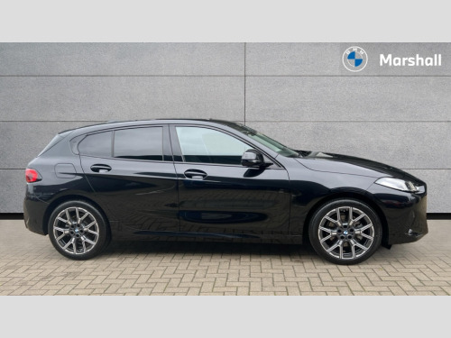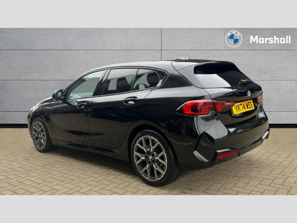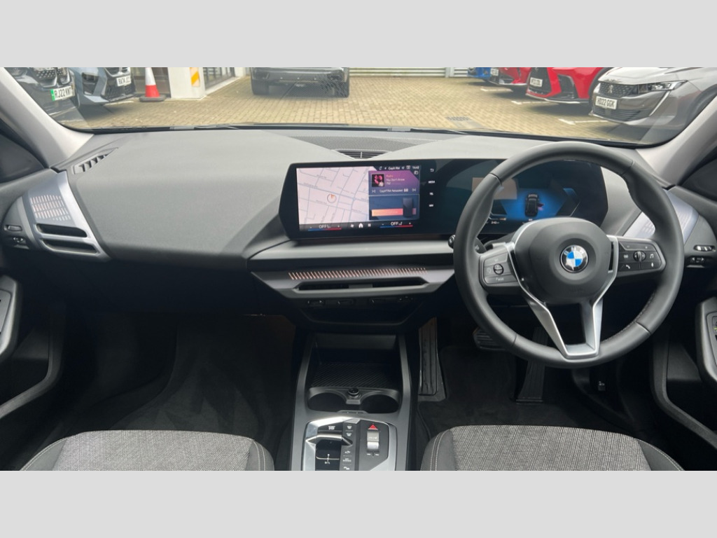 BMW 1 Series 120 Sport 5dr Step Auto Active guard plus, Attentiveness assist, Bluetooth / WiFi interface for wireless connection of mobile terminal devices and audio streaming, BMW ConnectedDrive online services, BMW Live cockpit plus, BMW Teleservices, Check Control warning system for monitoring of lights and door/luggage compartment open warning, Eco pro mode, Electric power steering with Servotronic steering optimised at all speed ranges, Evasion assistant, Flat airvents in instrument panel with adjustable slats, Front and rear parking sensors, Front axle single joint with specific axle kinematics to minimise drive influences on steering + provide increased rigidity agile driving behaviour, Integrated owners handbook, Left turn warning with brake function, My modes (Personal / Efficient / Sport), Oil sensor for level and grade, On board computer, Optimum shift indicator, Park assist including reversing assistant, lateral parking aid and reversing assist camera, Personal e-SIM, Personal Profile, Pull away assistant, Rigidly mounted rear subframe - Multi link construction with separate spring / damper configuration and excellent driving characteristics, Speed limit Info including no-overtaking indicator, Speed limiter, 49 litre fuel tank, 7 speed automatic transmission with double clutch technology, Aluminium lightweight construction, Anti roll bar front and rear, Balancer shaft, Double VANOS twin scroll turbocharging system, Drive Performance Control, Electronic differential lock, Electronic selector lever, High precision injection, Petrol Particulate Filter, Suspension with twin tube gas filled shock absorbers with degressive characteristic curve, VALVETRONIC engine management, DAB Digital radio, Auto dimming rear view mirror, Automatic windscreen wipers and automatic headlight, Body colour door handles, Body colour mirror caps, Chrome exhaust twin tailpipes round 90mm in left, Direction indicator side lights in exterior mirrors, Electrically adjustable exterior mirror with mirror adjustment switch on drivers armrest and aspheric on driver side, convex on passenger side, Fading support, Follow me home headlights, Front and rear bumper system with replaceable deformation elements, Front and rear electric windows with open and close fingertip control, anti trap facility and comfort closing, Front bumper in Body colour with exclusive Sport air inlets finished in High gloss Black, Front door sill finishers in black plastic with BMW designation in metallic look, Grained matt black roof strip, Green tinted heat protection glazing, Heated rear window, High gloss black exterior mirrors, High gloss shadowline window frame, Recess cover mirror frames and B/C pillar embelisher trim, High level third brake light, Integrated front windscreen with washer jets, Kidney grille in chrome frame with highgloss black struts, LED daytime running lights, LED eyebrow turn indicators, LED front fog lights, LED Headlights, Lightweight engineering, Manual headlight beam throw control, Manual headlight levelling, Matt black air guide grilles, Matt black wheel arch trim, Model badge on tailgate right, Nearside reverse light in rear light cluster, Power folding and heated door mirrors, Preparation for high beam assistant, Rain sensor, Rear bumper in Body colour with exclusive Sport design elements finished in High gloss Black, Rear fog lights, Rear side wing doors, Rear window wiper, Shark fin antenna, Trailer stabilisation logic, Visible VIN plate, Welcome lighting, 12V power socket in front centre console with blanking plug, 3 rear seat head restraints, 3 seat bench in 2nd row, 3 spoke sports leather steering wheel in black leather with black stitching and decorative finisher in pearl chrome, Anthracite front and rear floor mats, Black boot net with lashing eyes, Cargo function on 2nd seat row, Child seat ISOFIX attachment for two outer rear seats and front passenger seat with anchorage points, Conditioned based service, Driver and front passenger backrest net on rear, Driver and front passenger seat heating, Driver side folding compartment in instrument panel, Folding rear clothes hook, Footrest and pedals in black plastic, Four grab handles integrated in roof lining, Front and rear door pockets with bottle holders, Front and rear side armrest integrated into door trim, Front armrest with storage compartment, Glove compartment, Height adjustable front head restraints, Luggage compartment for bag hooks on left and right, foldable luggage compartment liner and four lashing eyelets, Manual adjust steering wheel, Multi-function controls for steering wheel, Rear seat backrest with manual 60:40 split folding with 3 top tether clips integrated on rear of seat panels, Single front passenger seat, Storage compartment in centre console, Storage compartment in luggage compartment, Stowage of the parcel shelf in luggage compartment trim, Sun visors with vanity mirrors and insert tab, Two front centre console cupholders, Type C two USB ports in rear centre console, Upper retaining strap integrated into backrest rear panels, Connected pack professional - 1 Series, Interior lights pack - 1 Series, 2 tone horn, 3 point seatbelts on all seats, front pyrotechnic belt tensioners, stopper and belt force limiters, rear coded belt buckles, Airbags - Front driver/passenger, front and rear curtain head protection, front side, manual deactivation of front passenger airbag, Anti lock braking system (ABS) with brake assist, BMW emergency call, Brake drying, Braking readiness, Child proof locking system in rear door, Comfort modes, Cornering brake control, Crash sensor activating of airbags, Unlocking doors, hazard warning lights, interior light, safety battery terminal, Driver and front passenger seat belt security check, Dynamic stability control + (DSC+), Dynamic Traction Control - DTC, Electrically operated hand brake including automatic hold function, Front and rear disc brakes, Seatbelt warning, Side impact protection, Tyre pressure