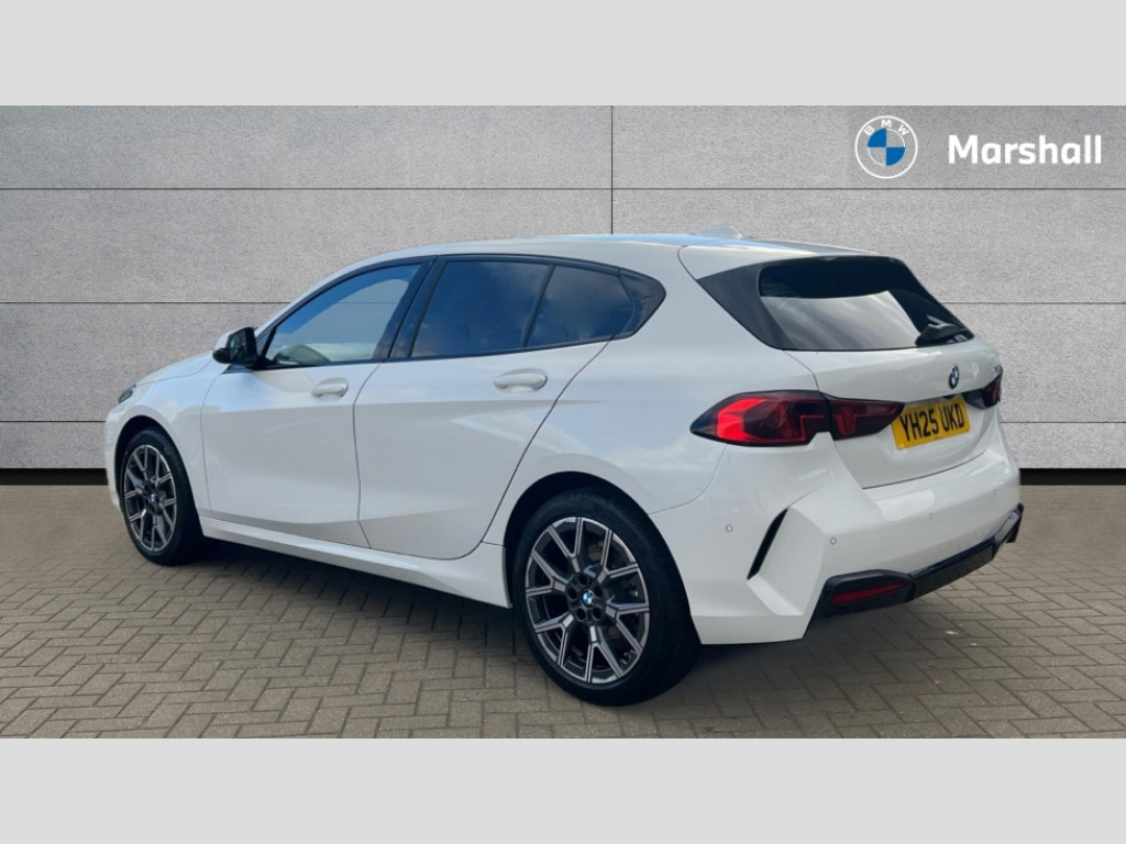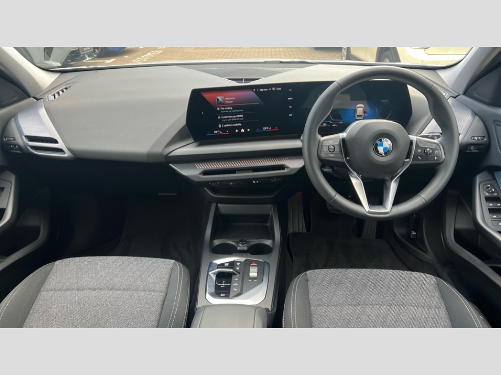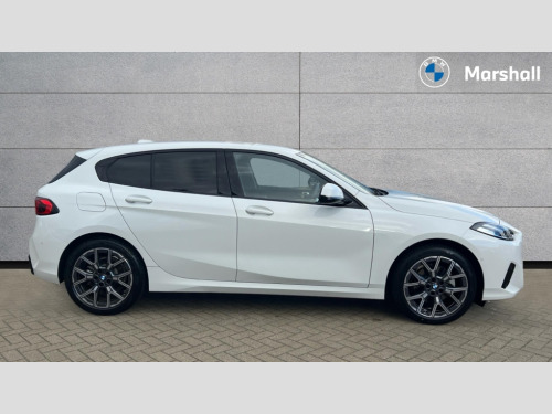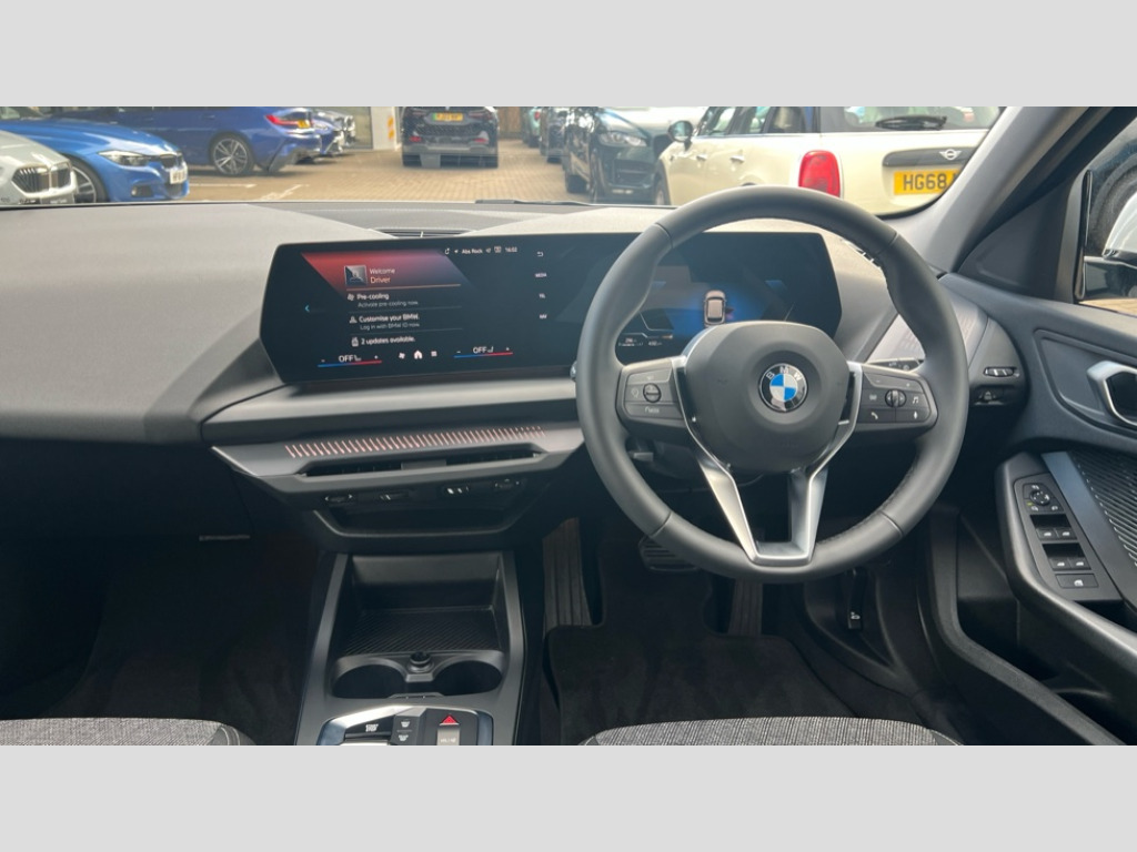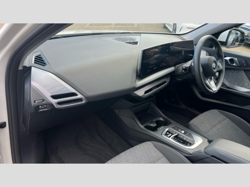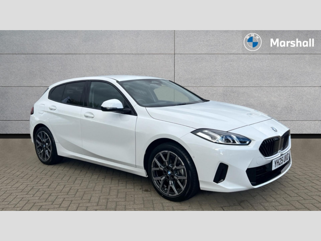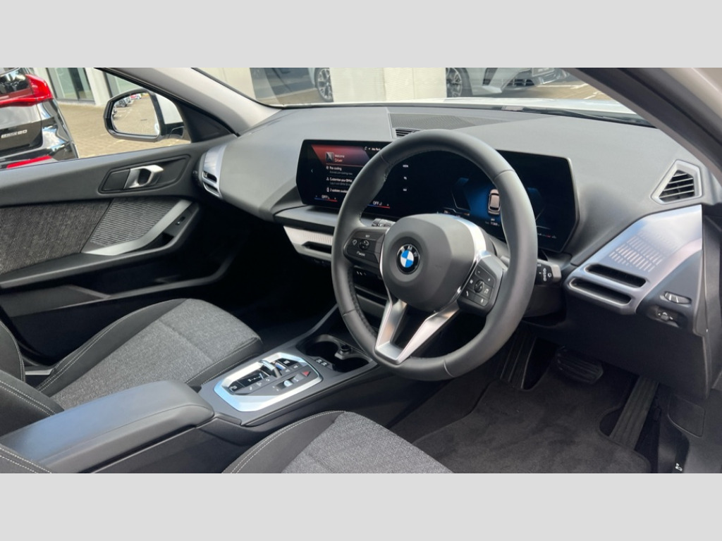 BMW 1 Series 120 Sport 5dr Step Auto Active guard plus, Attentiveness assist, Bluetooth / WiFi interface for wireless connection of mobile terminal devices and audio streaming, BMW ConnectedDrive online services, BMW Live cockpit plus, BMW Teleservices, Check Control warning system for monitoring of lights and door/luggage compartment open warning, Eco pro mode, Electric power steering with Servotronic steering optimised at all speed ranges, Evasion assistant, Flat airvents in instrument panel with adjustable slats, Front and rear parking sensors, Front axle single joint with specific axle kinematics to minimise drive influences on steering + provide increased rigidity agile driving behaviour, Integrated owners handbook, Left turn warning with brake function, My modes (Personal / Efficient / Sport), Oil sensor for level and grade, On board computer, Optimum shift indicator, Park assist including reversing assistant, lateral parking aid and reversing assist camera, Personal e-SIM, Personal Profile, Pull away assistant, Rigidly mounted rear subframe - Multi link construction with separate spring / damper configuration and excellent driving characteristics, Speed limit Info including no-overtaking indicator, Speed limiter, 49 litre fuel tank, 7 speed automatic transmission with double clutch technology, Aluminium lightweight construction, Anti roll bar front and rear, Balancer shaft, Double VANOS twin scroll turbocharging system, Drive Performance Control, Electronic differential lock, Electronic selector lever, High precision injection, Petrol Particulate Filter, Suspension with twin tube gas filled shock absorbers with degressive characteristic curve, VALVETRONIC engine management, DAB Digital radio, Auto dimming rear view mirror, Automatic windscreen wipers and automatic headlight, Body colour door handles, Body colour mirror caps, Chrome exhaust twin tailpipes round 90mm in left, Direction indicator side lights in exterior mirrors, Electrically adjustable exterior mirror with mirror adjustment switch on drivers armrest and aspheric on driver side, convex on passenger side, Fading support, Follow me home headlights, Front and rear bumper system with replaceable deformation elements, Front and rear electric windows with open and close fingertip control, anti trap facility and comfort closing, Front bumper in Body colour with exclusive Sport air inlets finished in High gloss Black, Front door sill finishers in black plastic with BMW designation in metallic look, Grained matt black roof strip, Green tinted heat protection glazing, Heated rear window, High gloss black exterior mirrors, High gloss shadowline window frame, Recess cover mirror frames and B/C pillar embelisher trim, High level third brake light, Integrated front windscreen with washer jets, Kidney grille in chrome frame with highgloss black struts, LED daytime running lights, LED eyebrow turn indicators, LED front fog lights, LED Headlights, Lightweight engineering, Manual headlight beam throw control, Manual headlight levelling, Matt black air guide grilles, Matt black wheel arch trim, Model badge on tailgate right, Nearside reverse light in rear light cluster, Power folding and heated door mirrors, Preparation for high beam assistant, Rain sensor, Rear bumper in Body colour with exclusive Sport design elements finished in High gloss Black, Rear fog lights, Rear side wing doors, Rear window wiper, Shark fin antenna, Trailer stabilisation logic, Visible VIN plate, Welcome lighting, 12V power socket in front centre console with blanking plug, 3 rear seat head restraints, 3 seat bench in 2nd row, 3 spoke sports leather steering wheel in black leather with black stitching and decorative finisher in pearl chrome, Anthracite front and rear floor mats, Black boot net with lashing eyes, Cargo function on 2nd seat row, Child seat ISOFIX attachment for two outer rear seats and front passenger seat with anchorage points, Conditioned based service, Driver and front passenger backrest net on rear, Driver and front passenger seat heating, Driver side folding compartment in instrument panel, Folding rear clothes hook, Footrest and pedals in black plastic, Four grab handles integrated in roof lining, Front and rear door pockets with bottle holders, Front and rear side armrest integrated into door trim, Front armrest with storage compartment, Glove compartment, Height adjustable front head restraints, Luggage compartment for bag hooks on left and right, foldable luggage compartment liner and four lashing eyelets, Manual adjust steering wheel, Multi-function controls for steering wheel, Rear seat backrest with manual 60:40 split folding with 3 top tether clips integrated on rear of seat panels, Single front passenger seat, Storage compartment in centre console, Storage compartment in luggage compartment, Stowage of the parcel shelf in luggage compartment trim, Sun visors with vanity mirrors and insert tab, Two front centre console cupholders, Type C two USB ports in rear centre console, Upper retaining strap integrated into backrest rear panels, Connected pack professional - 1 Series, Interior lights pack - 1 Series, 2 tone horn, 3 point seatbelts on all seats, front pyrotechnic belt tensioners, stopper and belt force limiters, rear coded belt buckles, Airbags - Front driver/passenger, front and rear curtain head protection, front side, manual deactivation of front passenger airbag, Anti lock braking system (ABS) with brake assist, BMW emergency call, Brake drying, Braking readiness, Child proof locking system in rear door, Comfort modes, Cornering brake control, Crash sensor activating of airbags, Unlocking doors, hazard warning lights, interior light, safety battery terminal, Driver and front passenger seat belt security check, Dynamic stability control + (DSC+), Dynamic Traction Control - DTC, Electrically operated hand brake including automatic hold function, Front and rear disc brakes, Seatbelt warning, Side impact protection, Tyre pressure