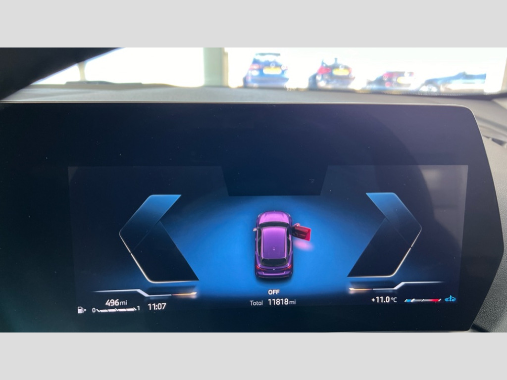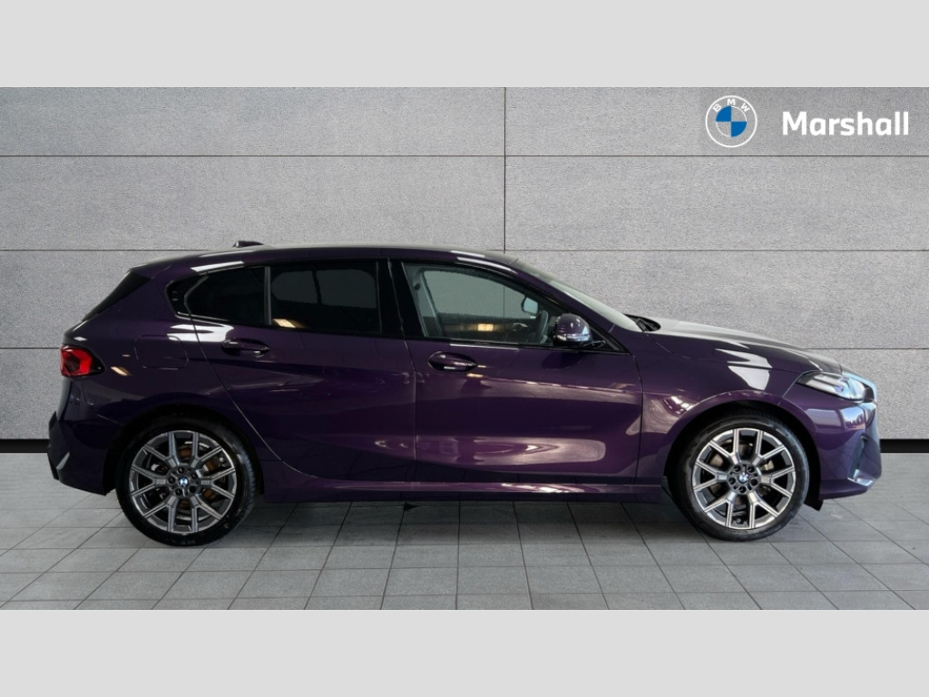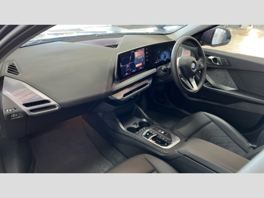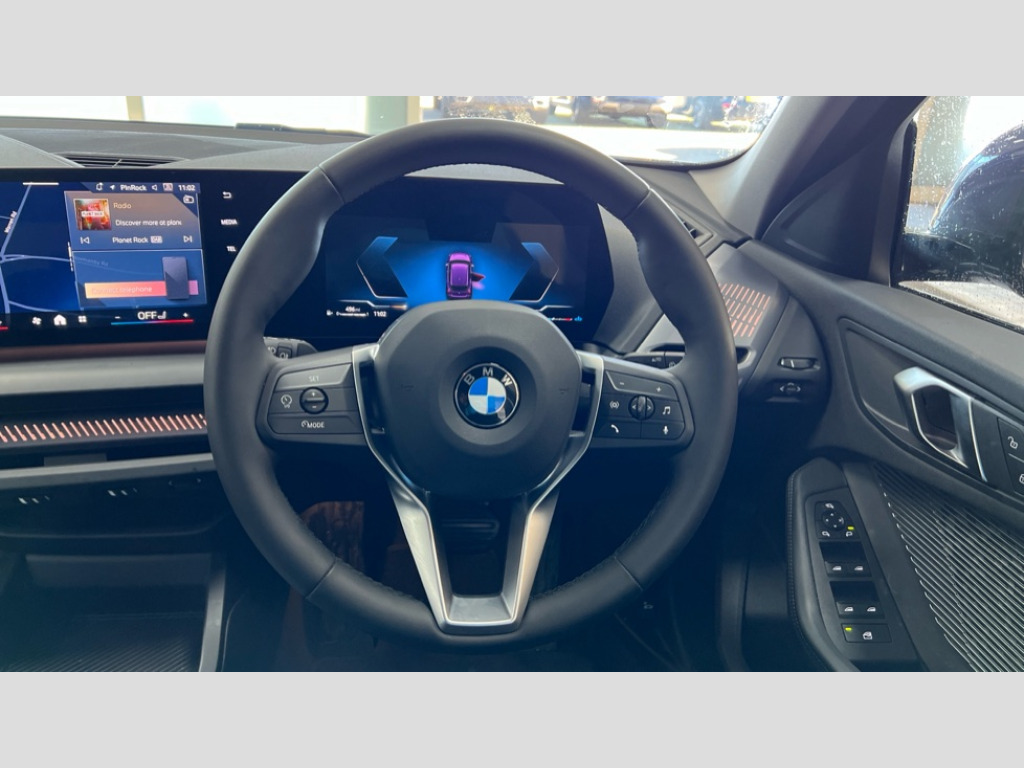 BMW 1 Series 120 Sport 5dr Step Auto Active guard plus, Attentiveness assist, Bluetooth / WiFi interface for wireless connection of mobile terminal devices and audio streaming, BMW ConnectedDrive online services, BMW Live cockpit plus, BMW Teleservices, Check Control warning system for monitoring of lights and door/luggage compartment open warning, Eco pro mode, Electric power steering with Servotronic steering optimised at all speed ranges, Evasion assistant, Flat airvents in instrument panel with adjustable slats, Front and rear parking sensors, Front axle single joint with specific axle kinematics to minimise drive influences on steering + provide increased rigidity agile driving behaviour, Integrated owners handbook, Left turn warning with brake function, My modes (Personal / Efficient / Sport), Oil sensor for level and grade, On board computer, Optimum shift indicator, Park assist including reversing assistant, lateral parking aid and reversing assist camera, Personal e-SIM, Personal Profile, Pull away assistant, Rigidly mounted rear subframe - Multi link construction with separate spring / damper configuration and excellent driving characteristics, Speed limit Info including no-overtaking indicator, Speed limiter, 49 litre fuel tank, 7 speed automatic transmission with double clutch technology, Aluminium lightweight construction, Anti roll bar front and rear, Balancer shaft, Double VANOS twin scroll turbocharging system, Drive Performance Control, Electronic differential lock, Electronic selector lever, High precision injection, Petrol Particulate Filter, Suspension with twin tube gas filled shock absorbers with degressive characteristic curve, VALVETRONIC engine management, DAB Digital radio, Auto dimming rear view mirror, Automatic windscreen wipers and automatic headlight, Body colour door handles, Body colour mirror caps, Chrome exhaust twin tailpipes round 90mm in left, Direction indicator side lights in exterior mirrors, Electrically adjustable exterior mirror with mirror adjustment switch on drivers armrest and aspheric on driver side, convex on passenger side, Fading support, Follow me home headlights, Front and rear bumper system with replaceable deformation elements, Front and rear electric windows with open and close fingertip control, anti trap facility and comfort closing, Front bumper in Body colour with exclusive Sport air inlets finished in High gloss Black, Front door sill finishers in black plastic with BMW designation in metallic look, Grained matt black roof strip, Green tinted heat protection glazing, Heated rear window, High gloss black exterior mirrors, High gloss shadowline window frame, Recess cover mirror frames and B/C pillar embelisher trim, High level third brake light, Integrated front windscreen with washer jets, Kidney grille in chrome frame with highgloss black struts, LED daytime running lights, LED eyebrow turn indicators, LED front fog lights, LED Headlights, Lightweight engineering, Manual headlight beam throw control, Manual headlight levelling, Matt black air guide grilles, Matt black wheel arch trim, Model badge on tailgate right, Nearside reverse light in rear light cluster, Power folding and heated door mirrors, Preparation for high beam assistant, Rain sensor, Rear bumper in Body colour with exclusive Sport design elements finished in High gloss Black, Rear fog lights, Rear side wing doors, Rear window wiper, Shark fin antenna, Trailer stabilisation logic, Visible VIN plate, Welcome lighting, 12V power socket in front centre console with blanking plug, 3 rear seat head restraints, 3 seat bench in 2nd row, 3 spoke sports leather steering wheel in black leather with black stitching and decorative finisher in pearl chrome, Anthracite front and rear floor mats, Black boot net with lashing eyes, Cargo function on 2nd seat row, Child seat ISOFIX attachment for two outer rear seats and front passenger seat with anchorage points, Conditioned based service, Driver and front passenger backrest net on rear, Driver and front passenger seat heating, Driver side folding compartment in instrument panel, Folding rear clothes hook, Footrest and pedals in black plastic, Four grab handles integrated in roof lining, Front and rear door pockets with bottle holders, Front and rear side armrest integrated into door trim, Front armrest with storage compartment, Glove compartment, Height adjustable front head restraints, Luggage compartment for bag hooks on left and right, foldable luggage compartment liner and four lashing eyelets, Manual adjust steering wheel, Multi-function controls for steering wheel, Rear seat backrest with manual 60:40 split folding with 3 top tether clips integrated on rear of seat panels, Single front passenger seat, Storage compartment in centre console, Storage compartment in luggage compartment, Stowage of the parcel shelf in luggage compartment trim, Sun visors with vanity mirrors and insert tab, Two front centre console cupholders, Type C two USB ports in rear centre console, Upper retaining strap integrated into backrest rear panels, Connected pack professional - 1 Series, Interior lights pack - 1 Series, 2 tone horn, 3 point seatbelts on all seats, front pyrotechnic belt tensioners, stopper and belt force limiters, rear coded belt buckles, Airbags - Front driver/passenger, front and rear curtain head protection, front side, manual deactivation of front passenger airbag, Anti lock braking system (ABS) with brake assist, BMW emergency call, Brake drying, Braking readiness, Child proof locking system in rear door, Comfort modes, Cornering brake control, Crash sensor activating of airbags, Unlocking doors, hazard warning lights, interior light, safety battery terminal, Driver and front passenger seat belt security check, Dynamic stability control + (DSC+), Dynamic Traction Control - DTC, Electrically operated hand brake including automatic hold function, Front and rear disc brakes, Seatbelt warning, Side impact protection, Tyre pressure