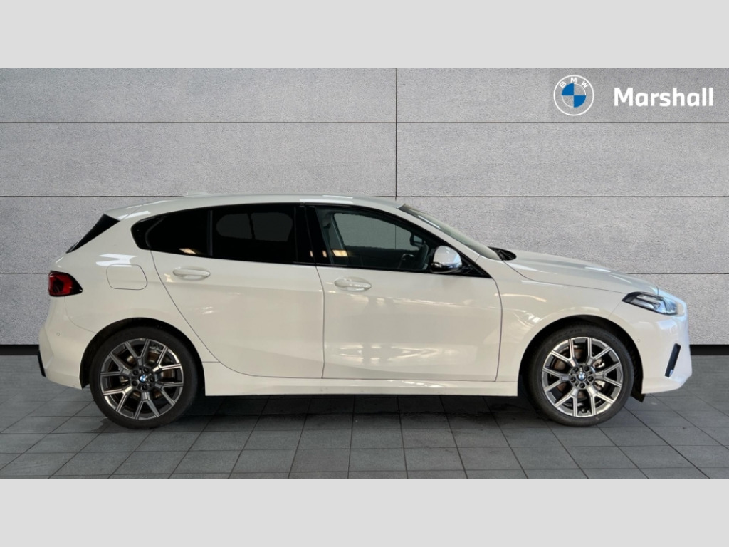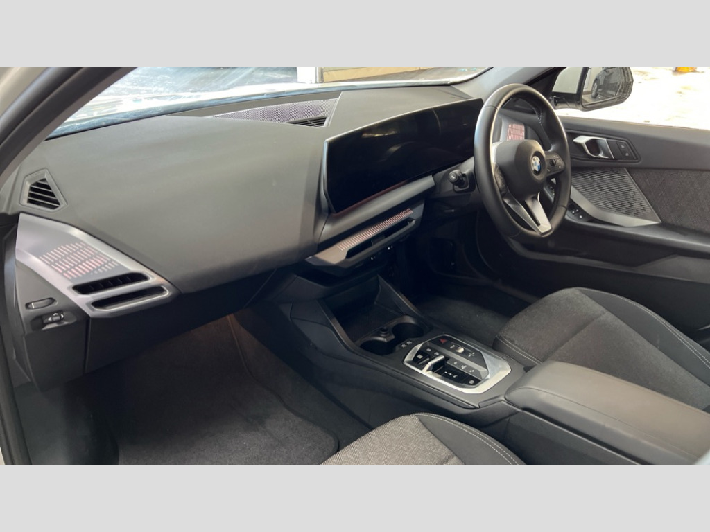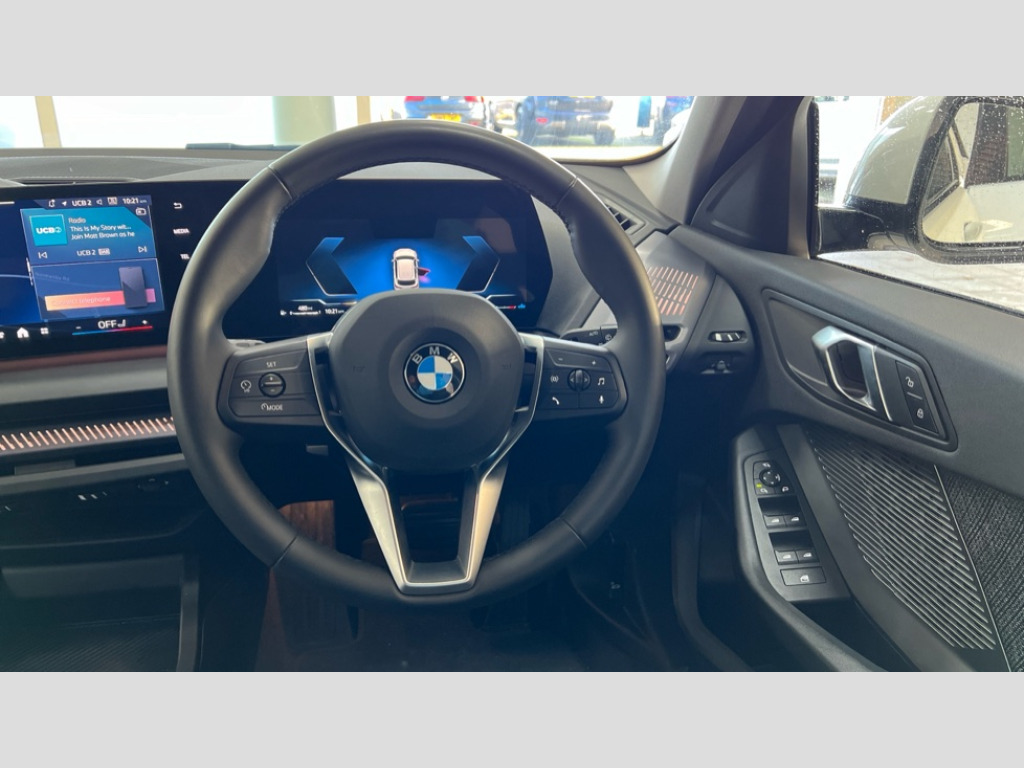 BMW 1 Series 120 Sport 5dr Step Auto Active guard plus, Attentiveness assist, Bluetooth / WiFi interface for wireless connection of mobile terminal devices and audio streaming, BMW ConnectedDrive online services, BMW Live cockpit plus, BMW Teleservices, Check Control warning system for monitoring of lights and door/luggage compartment open warning, Eco pro mode, Electric power steering with Servotronic steering optimised at all speed ranges, Evasion assistant, Flat airvents in instrument panel with adjustable slats, Front and rear parking sensors, Front axle single joint with specific axle kinematics to minimise drive influences on steering + provide increased rigidity agile driving behaviour, Integrated owners handbook, Left turn warning with brake function, My modes (Personal / Efficient / Sport), Oil sensor for level and grade, On board computer, Optimum shift indicator, Park assist including reversing assistant, lateral parking aid and reversing assist camera, Personal e-SIM, Personal Profile, Pull away assistant, Rigidly mounted rear subframe - Multi link construction with separate spring / damper configuration and excellent driving characteristics, Speed limit Info including no-overtaking indicator, Speed limiter, 49 litre fuel tank, 7 speed automatic transmission with double clutch technology, Aluminium lightweight construction, Anti roll bar front and rear, Balancer shaft, Double VANOS twin scroll turbocharging system, Drive Performance Control, Electronic differential lock, Electronic selector lever, High precision injection, Petrol Particulate Filter, Suspension with twin tube gas filled shock absorbers with degressive characteristic curve, VALVETRONIC engine management, DAB Digital radio, Auto dimming rear view mirror, Automatic windscreen wipers and automatic headlight, Body colour door handles, Body colour mirror caps, Chrome exhaust twin tailpipes round 90mm in left, Direction indicator side lights in exterior mirrors, Electrically adjustable exterior mirror with mirror adjustment switch on drivers armrest and aspheric on driver side, convex on passenger side, Fading support, Follow me home headlights, Front and rear bumper system with replaceable deformation elements, Front and rear electric windows with open and close fingertip control, anti trap facility and comfort closing, Front bumper in Body colour with exclusive Sport air inlets finished in High gloss Black, Front door sill finishers in black plastic with BMW designation in metallic look, Grained matt black roof strip, Green tinted heat protection glazing, Heated rear window, High gloss black exterior mirrors, High gloss shadowline window frame, Recess cover mirror frames and B/C pillar embelisher trim, High level third brake light, Integrated front windscreen with washer jets, Kidney grille in chrome frame with highgloss black struts, LED daytime running lights, LED eyebrow turn indicators, LED front fog lights, LED Headlights, Lightweight engineering, Manual headlight beam throw control, Manual headlight levelling, Matt black air guide grilles, Matt black wheel arch trim, Model badge on tailgate right, Nearside reverse light in rear light cluster, Power folding and heated door mirrors, Preparation for high beam assistant, Rain sensor, Rear bumper in Body colour with exclusive Sport design elements finished in High gloss Black, Rear fog lights, Rear side wing doors, Rear window wiper, Shark fin antenna, Trailer stabilisation logic, Visible VIN plate, Welcome lighting, 12V power socket in front centre console with blanking plug, 3 rear seat head restraints, 3 seat bench in 2nd row, 3 spoke sports leather steering wheel in black leather with black stitching and decorative finisher in pearl chrome, Anthracite front and rear floor mats, Black boot net with lashing eyes, Cargo function on 2nd seat row, Child seat ISOFIX attachment for two outer rear seats and front passenger seat with anchorage points, Conditioned based service, Driver and front passenger backrest net on rear, Driver and front passenger seat heating, Driver side folding compartment in instrument panel, Folding rear clothes hook, Footrest and pedals in black plastic, Four grab handles integrated in roof lining, Front and rear door pockets with bottle holders, Front and rear side armrest integrated into door trim, Front armrest with storage compartment, Glove compartment, Height adjustable front head restraints, Luggage compartment for bag hooks on left and right, foldable luggage compartment liner and four lashing eyelets, Manual adjust steering wheel, Multi-function controls for steering wheel, Rear seat backrest with manual 60:40 split folding with 3 top tether clips integrated on rear of seat panels, Single front passenger seat, Storage compartment in centre console, Storage compartment in luggage compartment, Stowage of the parcel shelf in luggage compartment trim, Sun visors with vanity mirrors and insert tab, Two front centre console cupholders, Type C two USB ports in rear centre console, Upper retaining strap integrated into backrest rear panels, Connected pack professional - 1 Series, Interior lights pack - 1 Series, 2 tone horn, 3 point seatbelts on all seats, front pyrotechnic belt tensioners, stopper and belt force limiters, rear coded belt buckles, Airbags - Front driver/passenger, front and rear curtain head protection, front side, manual deactivation of front passenger airbag, Anti lock braking system (ABS) with brake assist, BMW emergency call, Brake drying, Braking readiness, Child proof locking system in rear door, Comfort modes, Cornering brake control, Crash sensor activating of airbags, Unlocking doors, hazard warning lights, interior light, safety battery terminal, Driver and front passenger seat belt security check, Dynamic stability control + (DSC+), Dynamic Traction Control - DTC, Electrically operated hand brake including automatic hold function, Front and rear disc brakes, Seatbelt warning, Side impact protection, Tyre pressure