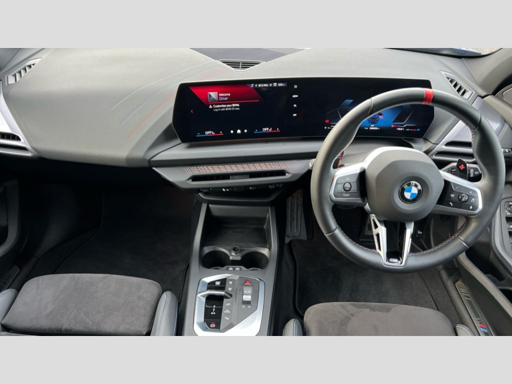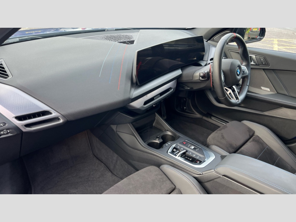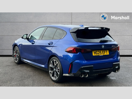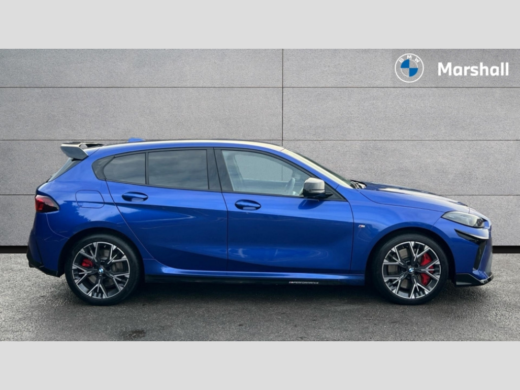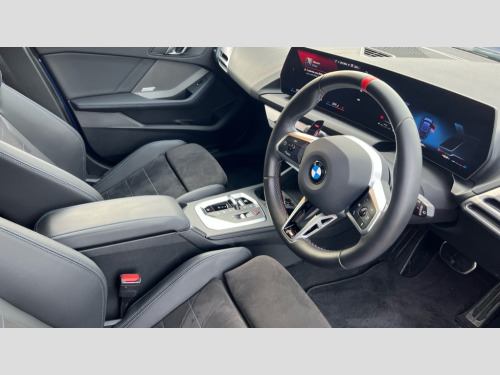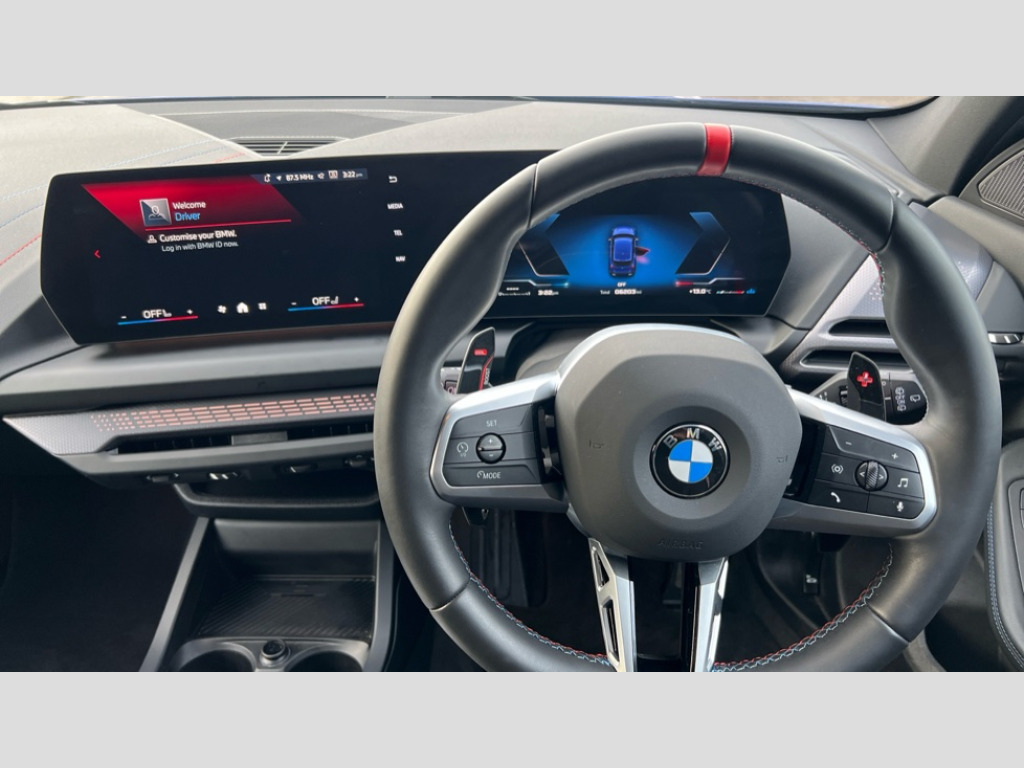BMW 1 Series M135 xDrive 5dr Step Auto Active guard plus, Attentiveness assist, Bluetooth / WiFi interface for wireless connection of mobile terminal devices and audio streaming, BMW ConnectedDrive online services, BMW Live cockpit plus, BMW Teleservices, Check Control warning system for monitoring of lights and door/luggage compartment open warning, Eco pro mode, Electric power steering, Electro hydraulically controlled multi-plate clutch transfers drive to rear axle and with power take-off device located on the front differential., Energy efficient operating strategy, Evasion assistant, Flat airvents in instrument panel with adjustable slats, Front and rear parking sensors, Front axle single joint with specific axle kinematics to minimise drive influences on steering + provide increased rigidity agile driving behaviour, Gearshift time display in manual mode, Integrated owners handbook, Left turn warning with brake function, M Sports steering with M135i xDrive specific settings, My modes (Personal / Efficient / Sport), Oil sensor for level and grade, On board computer, Optimum shift indicator, Park assist including reversing assistant, lateral parking aid and reversing assist camera, Personal e-SIM, Personal Profile, Pull away assistant, Rigidly mounted rear subframe - Multi link construction with separate spring / damper configuration and excellent driving characteristics, Speed limit Info including no-overtaking indicator, Speed limiter, Sporty fast gear shifting in sport mode, 49 litre fuel tank, Aluminium lightweight construction, Anti roll bar front and rear, Balancer shaft, Double VANOS, Drive Performance Control, Electronic differential lock, Electronic selector lever, Engine cover with M performance designation, High precision injection, Launch control, M Adaptive suspension, M135i specific heavily de-throttled engine intake air guide, M135i specific high-performance cooling package, M135i specific larger turbocharger with integrated divert-air valve, Petrol Particulate Filter, Steptronic transmission with double clutch, Twin tube gas filled shock absorbers with degressive characteristic curve, VALVETRONIC engine management, Variable, stepless and infinitely adjustable distribution of drive torque between the front and rear axles, xDrive intelligent all wheel drive with M135i specific reinforced components, DAB Digital radio, Harman/Kardon surround sound audio system with 12 speakers, Auto dimming rear view mirror, Automatic windscreen wipers and automatic headlight, Body colour door handles, Body colour roof trims, Cerium grey exterior mirror caps, Direction indicator side lights in exterior mirrors, Electrically adjustable exterior mirror with mirror adjustment switch on drivers armrest and aspheric on driver side, convex on passenger side, Exhaust tailpipe, Cerium Grey with bevelled finish - twin, round 100mm, left and right split, Fading support, Folding side mirrors with auto dimming/folding wing mirrors with auto dimming, Follow me home headlights, Front and rear bumper system with replaceable deformation elements, Front and rear electric windows with open and close fingertip control, anti trap facility and comfort closing, Front door sill finishers with M135i designation, Green tinted heat protection glazing, Heated rear window, High gloss shadowline window frame, Recess cover mirror frames and B/C pillar embelisher trim, High level third brake light, Integrated front windscreen with washer jets, Kidney grille frame in Cerium Grey with Mesh design, LED daytime running lights, LED eyebrow turn indicators, LED Headlights, Lightweight engineering, M Performance exhaust system with valve control and minimised exhaust back pressure, M Performance specific setup, M rear spoiler in high gloss black, M sport roof spoiler, Matt black air guide grilles, Matt black wheel arch trim, Model badge on tailgate right, Nearside reverse light in rear light cluster, Preparation for high beam assistant, Rain sensor, Rear fog lights, Rear side wing doors, Rear window wiper, Reinforced crank drive, new pistons and adapted con rods, Shark fin antenna, Sun protection glass, Trailer stabilisation logic, Visible VIN plate, Welcome lighting, 12V power socket in front centre console with blanking plug, 3 rear seat head restraints, 3 seat bench in 2nd row, 3 spoke Walknappa leather steering wheel, decorative stitching, badge, pearl chrome finish, thumbnails, red centre and black/red high gloss paddles, Anthracite front and rear floor mats, Anthracite headlining, Black boot net with lashing eyes, Cargo function on 2nd seat row, Child seat ISOFIX attachment for two outer rear seats and front passenger seat with anchorage points, Conditioned based service, Driver and front passenger backrest net on rear, Driver and front passenger seat heating, Driver side folding compartment in instrument panel, Folding rear clothes hook, Footrest and pedals in black plastic, Four grab handles integrated in roof lining, Front and rear door pockets with bottle holders, Front and rear side armrest integrated into door trim, Front armrest with storage compartment, Glove compartment, Height adjustable front head restraints, Luggage compartment for bag hooks on left and right, foldable luggage compartment liner and four lashing eyelets, Manual adjust steering wheel, Multi-function controls for steering wheel, Rear seat backrest with manual 60:40 split folding with 3 top tether clips integrated on rear of seat panels, Single front passenger seat, Storage compartment in centre console, Storage compartment in luggage compartment, Stowage of the parcel shelf in luggage compartment trim, Sun visors with vanity mirrors and insert tab, Two front centre console cupholders, Type C two USB ports in rear centre console, Upper retaining strap integrated into backrest rear panels, Connected pack professional - 1 Series, Interior lights pack - 1 Series, M Sport exterior styling aerodynamics pack - 1 Series 135i, 2 tone horn, 3 point seatb