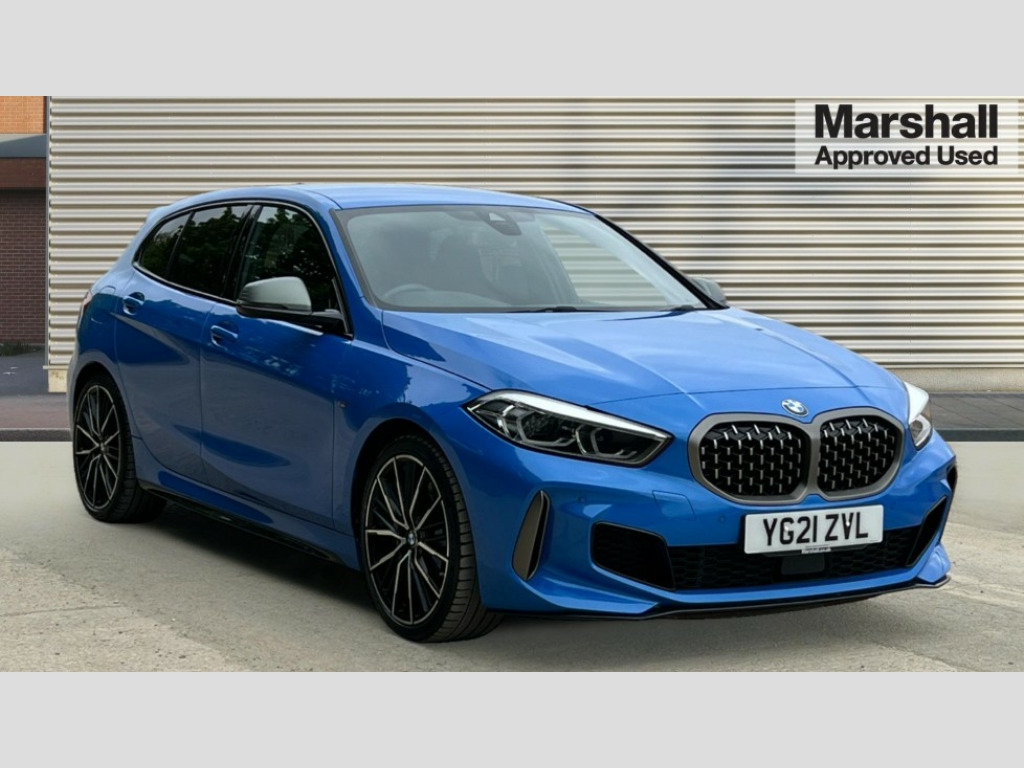 BMW 1 Series M135i xDrive 5dr Step Auto Active guard plus, Attentiveness assist, Bluetooth / WiFi interface for wireless connection of mobile terminal devices and audio streaming, BMW ConnectedDrive online services, BMW Teleservices, Check Control warning system for monitoring of lights and door/luggage compartment open warning, Eco pro mode, Electric power steering, Electro hydraulically controlled multi-plate clutch transfers drive to rear axle and with power take-off device located on the front differential., Energy efficient operating strategy, Front axle single joint with specific axle kinematics to minimise drive influences on steering + provide increased rigidity agile driving behaviour, Gearshift time display in manual mode, Integrated owners handbook, M Sports steering with M135i xDrive specific settings, Oil sensor for level and grade, On board computer, Optimum shift indicator, Personal Profile, Pull away assistant, Rigidly mounted rear subframe - Multi link construction with separate spring / damper configuration and excellent driving characteristics, Speed limit Info including no-overtaking indicator, Speed limiter, Sporty fast gear shifting in sport mode, Aluminium lightweight construction, Anti roll bar front and rear, Balancer shaft, Double VANOS, Drive Performance Control, Eight speed sport automatic transmission with gearshift paddle switches, Electronic differential lock, Electronic selector lever, Engine cover with M performance designation, High precision injection, Larger fuel tank capacity (50 litres), Launch control, M135i specific heavily de-throttled engine intake air guide, M135i specific high-performance cooling package, M135i specific larger turbocharger with integrated divert-air valve, Petrol Particulate Filter, Twin tube gas filled shock absorbers with degressive characteristic curve, VALVETRONIC engine management, Variable, stepless and infinitely adjustable distribution of drive torque between the front and rear axles, xDrive intelligent all wheel drive with M135i specific reinforced components, DAB Digital radio, HiFi loudspeaker audio system, Auto dimming rear view mirror, Automatic headlight beam throw control, Automatic windscreen wipers and automatic headlight, Body colour door handles, Body colour roof trims, Cerium grey exterior mirror caps, Direction indicator side lights in exterior mirrors, Exhaust tailpipe, Cerium Grey with bevelled finish - twin, round 100mm, left and right split, Fading support, Folding side mirrors with auto dimming/folding wing mirrors with auto dimming, Follow me home headlights, Front and rear bumper system with replaceable deformation elements, Front and rear electric windows with open and close fingertip control, anti trap facility and comfort closing, Front door sill finishers with M135i designation, Green tinted heat protection glazing, Heated, electrically adjustable exterior mirror aspheric on driver side, convex on passenger side, High gloss shadowline window frame, Recess cover mirror frames and B/C pillar embelisher trim, High level third brake light, Integrated front windscreen with washer jets, Kidney grille frame in Cerium Grey with Mesh design, LED daytime running lights, LED eyebrow turn indicators, LED front fog lights, Lightweight engineering, M logo designation side in cerium grey, M Performance exhaust system with valve control and minimised exhaust back pressure, M Performance specific setup, M Sport spoiler, Matt black air guide grilles, Matt black wheel arch trim, Model designation on electric bootlid includes xDrive designation for M135i xDrive, Nearside reverse light in rear light cluster, Preparation for high beam assistant, Rear fog lights, Rear window wiper, Reinforced crank drive, new pistons and adapted con rods, Shark fin antenna, Trailer stabilisation logic, Visible VIN plate, Welcome lighting, 12V power socket in front centre console with blanking plug, 3 rear seat head restraints, 3 spoke sports leather steering wheel with black leather and stitching, pearl chrome decorative finish, specific M Badge, Ambient interior lighting, Anthracite headlining, Child seat ISOFIX attachment for two outer rear seats and front passenger seat with anchorage points, Conditioned based service, Driver and front passenger seat heating, Floor mats in anthracite velour with contrasting colour seam to match contrast stitching on instrument panel, Folding rear clothes hook, Four grab handles integrated in roof lining, Front and rear door pockets with bottle holders, Front and rear side armrest integrated into door trim, Front armrest, Front integrated head restraints, Front M sports seats, Glove compartment, Luggage compartment for bag hooks on left and right, foldable luggage compartment liner and two lashing eyelets, Manual adjust steering wheel, Multi-function controls for steering wheel, Storage compartment in centre console, Sun visors with vanity mirrors and insert tab, Two front centre console cupholders, Two zone automatic air conditioning, Additional interior lighting pack - 1 Series M135i, Additional storage compartment pack with code 493 -1 series, BMW live cockpit professional pack- 1 Series, Connected pack professional - 1 Series, Interior lights pack - 1 Series, M Sport exterior styling aerodynamics pack - 1 Series 135i, 2 tone horn, 3 point seatbelts on all seats, front pyrotechnic belt tensioners, stopper and belt force limiters, rear coded belt buckles, Airbags - Front driver/passenger, front and rear curtain head protection, front side, manual deactivation of front passenger airbag, Anti lock braking system (ABS) with brake assist, BMW emergency call, Brake drying, Braking readiness, Child proof locking system in rear door, Comfort modes, Cornering brake control, Crash sensor activating central locking release, hazard warning lights, fuel cut off, interior lighting + activation of safety battery terminal clamp, Driver and front passenger seat belt security check, Dynamic stability control + (DSC
