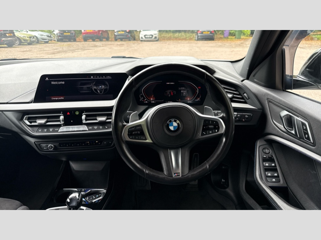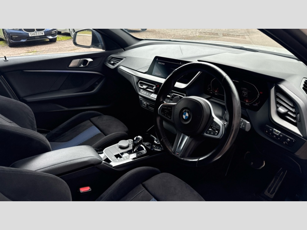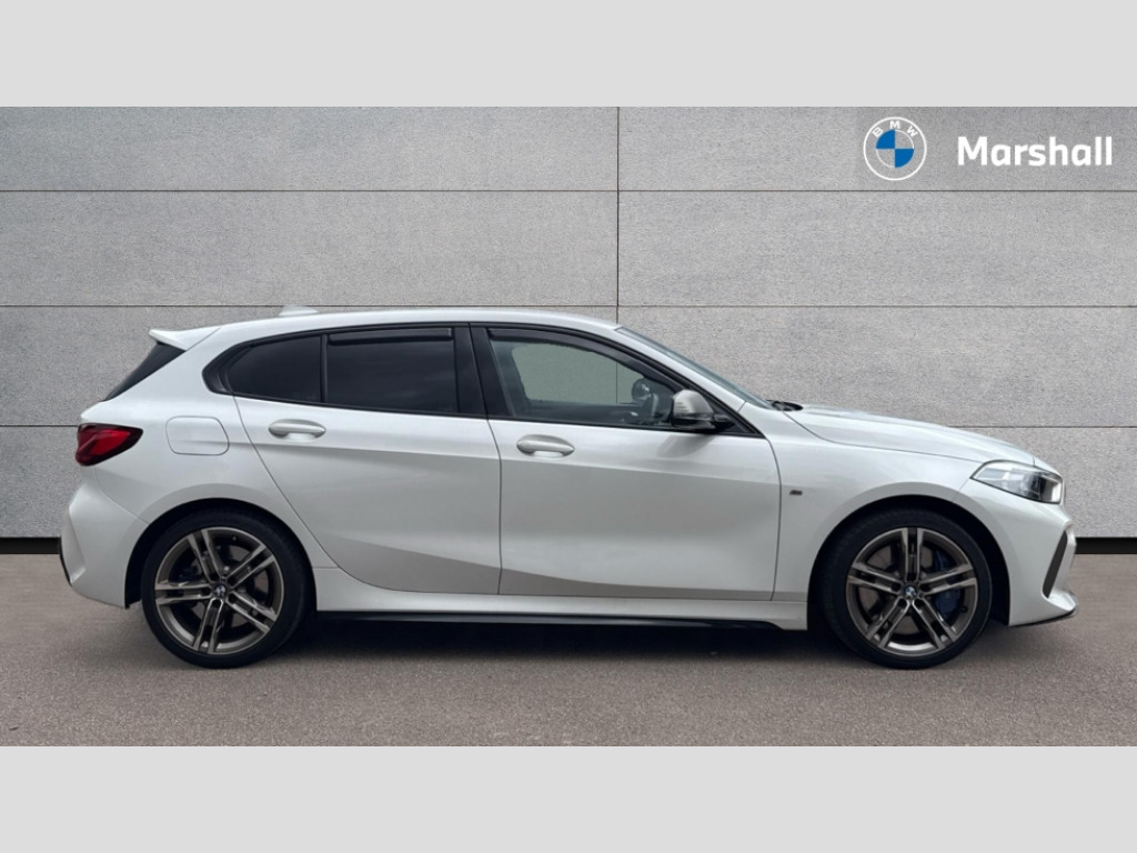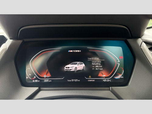BMW 1 Series M135i xDrive 5dr Step Auto Active guard plus, Attentiveness assist, BMW ConnectedDrive online services, BMW Teleservices, Check Control warning system for monitoring of lights and door/luggage compartment open warning, Eco pro mode, Electro hydraulically controlled multi-plate clutch transfers drive to rear axle and with power take-off device located on the front differential., Energy efficient operating strategy, Front axle single joint with specific axle kinematics to minimise drive influences on steering + provide increased rigidity agile driving behaviour, Gearshift time display in manual mode, Integrated owners handbook, M Sports steering with M135i xDrive specific settings, Oil sensor for level and grade, On board computer, Optimum shift indicator, Personal Profile, Pull away assistant, Rigidly mounted rear subframe - Multi link construction with separate spring / damper configuration and excellent driving characteristics, Speed limit Info including no-overtaking indicator, Sporty fast gear shifting in sport mode, Aluminium lightweight construction, Anti roll bar front and rear, Balancer shaft, Double VANOS, Drive Performance Control, Eight speed sport automatic transmission with gearshift paddle switches, Electronic differential lock, Electronic selector lever, Engine cover with M performance designation, High precision injection, Larger fuel tank capacity (50 litres), Launch control, M135i specific heavily de-throttled engine intake air guide, M135i specific high-performance cooling package, M135i specific larger turbocharger with integrated divert-air valve, Petrol Particulate Filter, Twin tube gas filled shock absorbers with degressive characteristic curve, VALVETRONIC engine management, Variable, stepless and infinitely adjustable distribution of drive torque between the front and rear axles, xDrive intelligent all wheel drive with M135i specific reinforced components, DAB Digital radio, Auto dimming rear view mirror, Automatic headlight beam throw control, Automatic windscreen wipers and automatic headlight, Body colour door handles, Body colour roof trims, Cerium grey exterior mirror caps, Direction indicator side lights in exterior mirrors, Fading support, Folding side mirrors with auto dimming/folding wing mirrors with auto dimming, Follow me home headlights, Front and rear bumper system with replaceable deformation elements, Front and rear electric windows with open and close fingertip control, anti trap facility and comfort closing, Front door sill finishers with M135i designation, Green tinted heat protection glazing, Heated, electrically adjustable exterior mirror aspheric on driver side, convex on passenger side, High gloss shadowline window frame, Recess cover mirror frames and B/C pillar embelisher trim, High level third brake light, Integrated front windscreen with washer jets, Kidney grille frame in Cerium Grey with Mesh design, LED daytime running lights, LED eyebrow turn indicators, LED front fog lights, Lightweight engineering, M logo designation side in cerium grey, M Performance exhaust system with valve control and minimised exhaust back pressure, M Performance specific setup, M Sport spoiler, Matt black air guide grilles, Matt black wheel arch trim, Model designation on electric bootlid includes xDrive designation for M135i xDrive, Nearside reverse light in rear light cluster, Preparation for high beam assistant, Rear fog lights, Rear window wiper, Reinforced crank drive, new pistons and adapted con rods, Round exhaust system with twin cerium grey tailpipes in left and right split, Shark fin antenna, Trailer stabilisation logic, Visible VIN plate, Welcome lighting, 12V power socket in front centre console with blanking plug, 3 rear seat head restraints, 3 spoke sports leather steering wheel with black leather and stitching, pearl chrome decorative finish, specific M Badge, Anthracite headlining, Child seat ISOFIX attachment for two outer rear seats and front passenger seat with anchorage points, Conditioned based service, Driver and front passenger seat heating, Floor mats in anthracite velour with contrasting colour seam to match contrast stitching on instrument panel, Folding rear clothes hook, Four grab handles integrated in roof lining, Front and rear door pockets with bottle holders, Front and rear side armrest integrated into door trim, Front armrest, Front M sports seats, Glove compartment, Height adjustable front head restraints, Luggage compartment for bag hooks on left and right, foldable luggage compartment liner and two lashing eyelets, Manual adjust steering wheel, Multi-function controls for steering wheel, Storage compartment in centre console, Sun visors with vanity mirrors and insert tab, Two front centre console cupholders, Two zone automatic air conditioning, Additional interior lighting pack - 1 Series M135i, Additional storage compartment pack - 1 Series, Additional storage compartment pack with code 493 -1 series, BMW live cockpit professional pack- 1 Series, Connected pack professional - 1 Series, Interior lights pack - 1 Series, M Sport exterior styling aerodynamics pack - 1 Series 135i, 2 tone horn, 3 point seatbelts on all seats, front pyrotechnic belt tensioners, stopper and belt force limiters, rear coded belt buckles, Airbags - Front driver/passenger, front and rear curtain head protection, front side, manual deactivation of front passenger airbag, Anti lock braking system (ABS) with brake assist, BMW emergency call, Brake drying, Braking readiness, Child proof locking system in rear door, Comfort modes, Cornering brake control, Crash sensor activating central locking release, hazard warning lights, fuel cut off, interior lighting + activation of safety battery terminal clamp, Driver and front passenger seat belt security check, Dynamic stability control + (DSC+), Dynamic Traction Control - DTC, Electrically operated hand brake including automatic hold function, Front and rear disc brakes, Integrated torsen mechanic