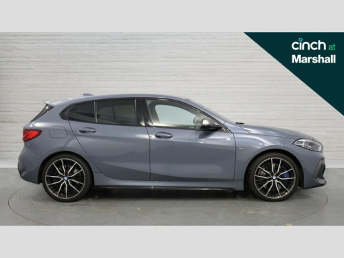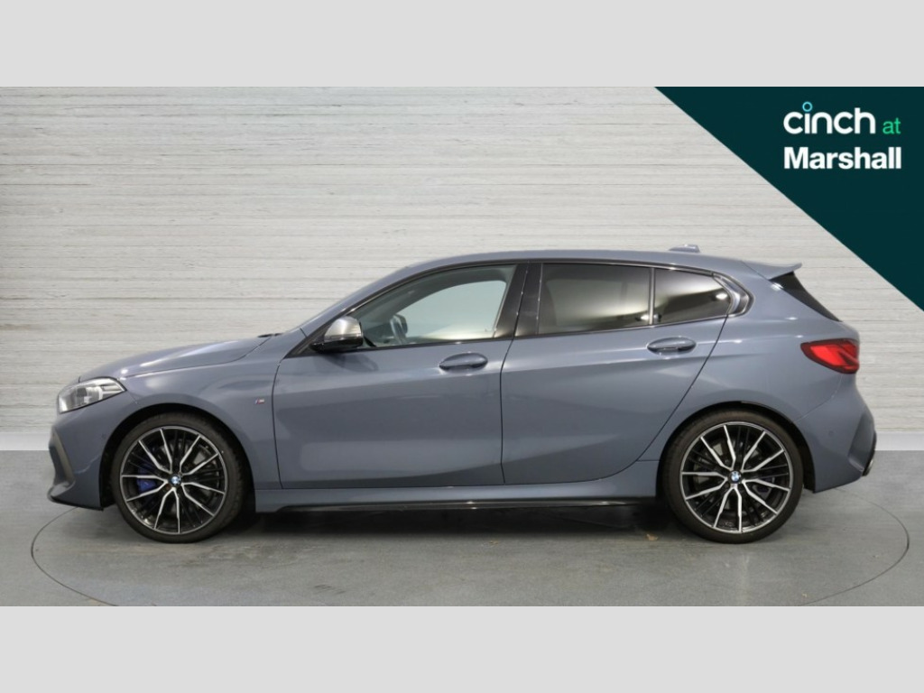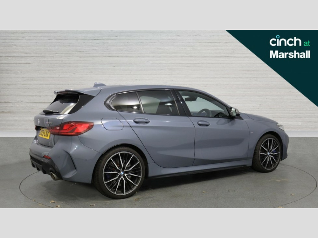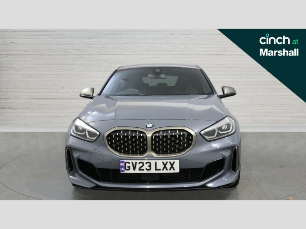 BMW 1 Series M135i xDrive 5dr Step Auto Active guard plus, Attentiveness assist, BMW ConnectedDrive online services, BMW Teleservices, Check Control warning system for monitoring of lights and door/luggage compartment open warning, Cruise control with speed limiter, Eco pro mode, Electric power steering, Electro hydraulically controlled multi-plate clutch transfers drive to rear axle and with power take-off device located on the front differential., Energy efficient operating strategy, Front axle single joint with specific axle kinematics to minimise drive influences on steering + provide increased rigidity agile driving behaviour, Gearshift time display in manual mode, Integrated owners handbook, Lane departure warning system, M Sports steering with M135i xDrive specific settings, Oil sensor for level and grade, On board computer, Optimum shift indicator, Personal Profile, Pull away assistant, Rigidly mounted rear subframe - Multi link construction with separate spring / damper configuration and excellent driving characteristics, Speed limit Info including no-overtaking indicator, Sporty fast gear shifting in sport mode, Aluminium lightweight construction, Anti roll bar front and rear, Balancer shaft, Double VANOS, Drive Performance Control, Eight speed sport automatic transmission with gearshift paddle switches, Electronic differential lock, Electronic selector lever, Engine cover with M performance designation, High precision injection, Larger fuel tank capacity (50 litres), Launch control, M135i specific heavily de-throttled engine intake air guide, M135i specific high-performance cooling package, M135i specific larger turbocharger with integrated divert-air valve, Petrol Particulate Filter, Twin tube gas filled shock absorbers with degressive characteristic curve, VALVETRONIC engine management, Variable, stepless and infinitely adjustable distribution of drive torque between the front and rear axles, xDrive intelligent all wheel drive with M135i specific reinforced components, DAB Digital radio, Auto dimming rear view mirror, Automatic headlight beam throw control, Automatic windscreen wipers and automatic headlight, Body colour door handles, Body colour roof trims, Cerium grey exterior mirror caps, Direction indicator side lights in exterior mirrors, Electrically adjustable exterior mirror with mirror adjustment switch on drivers armrest and aspheric on driver side, convex on passenger side, Exhaust tailpipe, Cerium Grey with bevelled finish - twin, round 100mm, left and right split, Fading support, Folding side mirrors with auto dimming/folding wing mirrors with auto dimming, Follow me home headlights, Front and rear bumper system with replaceable deformation elements, Front and rear electric windows with open and close fingertip control, anti trap facility and comfort closing, Front door sill finishers with M135i designation, Green tinted heat protection glazing, High gloss shadowline window frame, Recess cover mirror frames and B/C pillar embelisher trim, High level third brake light, Integrated front windscreen with washer jets, Kidney grille frame in Cerium Grey with Mesh design, LED daytime running lights, LED eyebrow turn indicators, Lightweight engineering, M logo designation side in cerium grey, M Performance exhaust system with valve control and minimised exhaust back pressure, M Performance specific setup, M Sport spoiler, Matt black air guide grilles, Matt black wheel arch trim, Model designation on electric bootlid includes xDrive designation for M135i xDrive, Nearside reverse light in rear light cluster, Preparation for high beam assistant, Rear fog lights, Rear side wing doors, Rear window wiper, Reinforced crank drive, new pistons and adapted con rods, Shark fin antenna, Trailer stabilisation logic, Visible VIN plate, Welcome lighting, 12V power socket in front centre console with blanking plug, 3 rear seat head restraints, 3 seat bench in 2nd row, 3 spoke sports leather steering wheel with black leather and stitching, pearl chrome decorative finish, specific M Badge, Anthracite headlining, Black boot net with lashing eyes, Cargo function on 2nd seat row, Child seat ISOFIX attachment for two outer rear seats and front passenger seat with anchorage points, Conditioned based service, Driver and front passenger backrest net on rear, Driver and front passenger seat heating, Driver side folding compartment in instrument panel, Folding rear clothes hook, Four grab handles integrated in roof lining, Front and rear door pockets with bottle holders, Front and rear side armrest integrated into door trim, Front armrest, Front M sports seats, Glove compartment, Height adjustable front head restraints, Luggage compartment for bag hooks on left and right, foldable luggage compartment liner and four lashing eyelets, Manual adjust steering wheel, Multi-function controls for steering wheel, Single front passenger seat, Storage compartment in centre console, Storage compartment in luggage compartment, Stowage of the parcel shelf in luggage compartment trim, Sun visors with vanity mirrors and insert tab, Two front centre console cupholders, Two zone automatic air conditioning, Type C two USB ports in rear centre console, Velour floor mats, Additional interior lighting pack - 1 Series M135i, BMW live cockpit professional pack- 1 Series, Connected pack professional - 1 Series, Interior lights pack - 1 Series, M Sport exterior styling aerodynamics pack - 1 Series 135i, 2 tone horn, 3 point seatbelts on all seats, front pyrotechnic belt tensioners, stopper and belt force limiters, rear coded belt buckles, Airbags - Front driver/passenger, front and rear curtain head protection, front side, manual deactivation of front passenger airbag, Anti lock braking system (ABS) with brake assist, BMW emergency call, Brake drying, Braking readiness, Child proof locking system in rear door, City braking function, Comfort modes, Cornering brake control, Crash sensor activating of airbags, Unlocking door