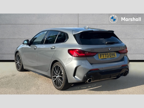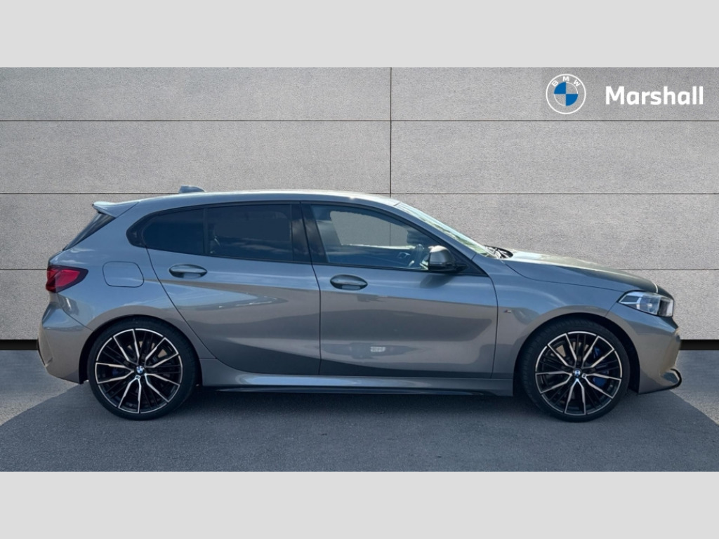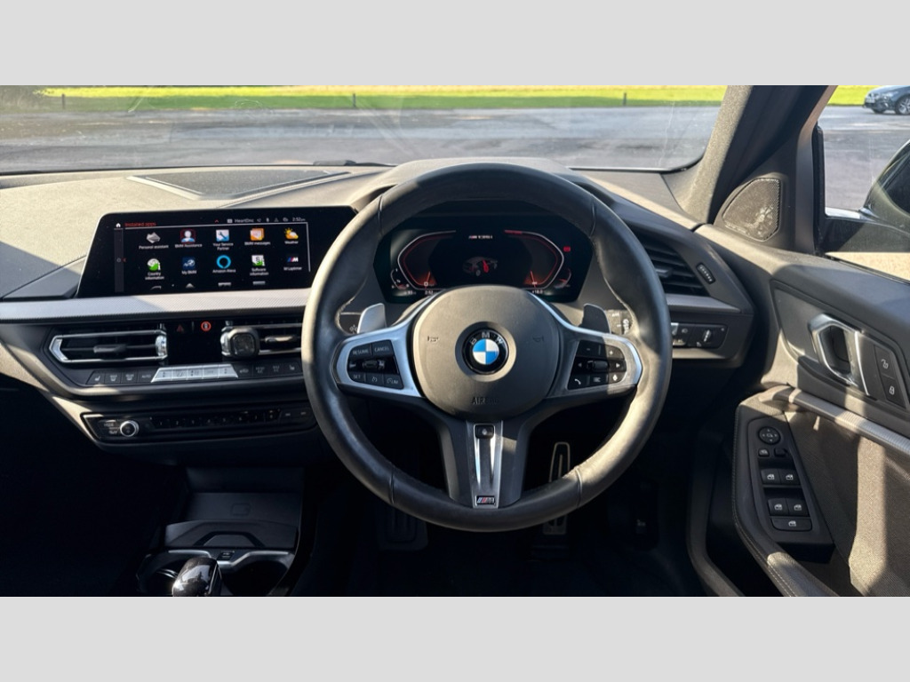 BMW 1 Series M135i xDrive 5dr Step Auto Active guard plus, Attentiveness assist, BMW ConnectedDrive online services, BMW Teleservices, Check Control warning system for monitoring of lights and door/luggage compartment open warning, Cruise control with speed limiter, Eco pro mode, Electric power steering, Electro hydraulically controlled multi-plate clutch transfers drive to rear axle and with power take-off device located on the front differential., Energy efficient operating strategy, Front axle single joint with specific axle kinematics to minimise drive influences on steering + provide increased rigidity agile driving behaviour, Gearshift time display in manual mode, Integrated owners handbook, Lane departure warning system, M Sports steering with M135i xDrive specific settings, Oil sensor for level and grade, On board computer, Optimum shift indicator, Personal Profile, Pull away assistant, Rigidly mounted rear subframe - Multi link construction with separate spring / damper configuration and excellent driving characteristics, Speed limit Info including no-overtaking indicator, Sporty fast gear shifting in sport mode, Aluminium lightweight construction, Anti roll bar front and rear, Balancer shaft, Double VANOS, Drive Performance Control, Eight speed sport automatic transmission with gearshift paddle switches, Electronic differential lock, Electronic selector lever, Engine cover with M performance designation, High precision injection, Larger fuel tank capacity (50 litres), Launch control, M135i specific heavily de-throttled engine intake air guide, M135i specific high-performance cooling package, M135i specific larger turbocharger with integrated divert-air valve, Petrol Particulate Filter, Twin tube gas filled shock absorbers with degressive characteristic curve, VALVETRONIC engine management, Variable, stepless and infinitely adjustable distribution of drive torque between the front and rear axles, xDrive intelligent all wheel drive with M135i specific reinforced components, DAB Digital radio, Auto dimming rear view mirror, Automatic headlight beam throw control, Automatic windscreen wipers and automatic headlight, Body colour door handles, Body colour roof trims, Cerium grey exterior mirror caps, Direction indicator side lights in exterior mirrors, Electrically adjustable exterior mirror with mirror adjustment switch on drivers armrest and aspheric on driver side, convex on passenger side, Exhaust tailpipe, Cerium Grey with bevelled finish - twin, round 100mm, left and right split, Fading support, Folding side mirrors with auto dimming/folding wing mirrors with auto dimming, Follow me home headlights, Front and rear bumper system with replaceable deformation elements, Front and rear electric windows with open and close fingertip control, anti trap facility and comfort closing, Front door sill finishers with M135i designation, Green tinted heat protection glazing, High gloss shadowline window frame, Recess cover mirror frames and B/C pillar embelisher trim, High level third brake light, Integrated front windscreen with washer jets, Kidney grille frame in Cerium Grey with Mesh design, LED daytime running lights, LED eyebrow turn indicators, Lightweight engineering, M logo designation side in cerium grey, M Performance exhaust system with valve control and minimised exhaust back pressure, M Performance specific setup, M Sport spoiler, Matt black air guide grilles, Matt black wheel arch trim, Model designation on electric bootlid includes xDrive designation for M135i xDrive, Nearside reverse light in rear light cluster, Preparation for high beam assistant, Rear fog lights, Rear side wing doors, Rear window wiper, Reinforced crank drive, new pistons and adapted con rods, Shark fin antenna, Trailer stabilisation logic, Visible VIN plate, Welcome lighting, 12V power socket in front centre console with blanking plug, 3 rear seat head restraints, 3 seat bench in 2nd row, 3 spoke sports leather steering wheel with black leather and stitching, pearl chrome decorative finish, specific M Badge, Anthracite headlining, Black boot net with lashing eyes, Cargo function on 2nd seat row, Child seat ISOFIX attachment for two outer rear seats and front passenger seat with anchorage points, Conditioned based service, Driver and front passenger backrest net on rear, Driver and front passenger seat heating, Driver side folding compartment in instrument panel, Folding rear clothes hook, Four grab handles integrated in roof lining, Front and rear door pockets with bottle holders, Front and rear side armrest integrated into door trim, Front armrest, Front M sports seats, Glove compartment, Height adjustable front head restraints, Luggage compartment for bag hooks on left and right, foldable luggage compartment liner and four lashing eyelets, Manual adjust steering wheel, Multi-function controls for steering wheel, Single front passenger seat, Storage compartment in centre console, Storage compartment in luggage compartment, Stowage of the parcel shelf in luggage compartment trim, Sun visors with vanity mirrors and insert tab, Two front centre console cupholders, Two zone automatic air conditioning, Type C two USB ports in rear centre console, Velour floor mats, Additional interior lighting pack - 1 Series M135i, BMW live cockpit professional pack- 1 Series, Connected pack professional - 1 Series, Interior lights pack - 1 Series, M Sport exterior styling aerodynamics pack - 1 Series 135i, 2 tone horn, 3 point seatbelts on all seats, front pyrotechnic belt tensioners, stopper and belt force limiters, rear coded belt buckles, Airbags - Front driver/passenger, front and rear curtain head protection, front side, manual deactivation of front passenger airbag, Anti lock braking system (ABS) with brake assist, BMW emergency call, Brake drying, Braking readiness, Child proof locking system in rear door, City braking function, Comfort modes, Cornering brake control, Crash sensor activating of airbags, Unlocking door