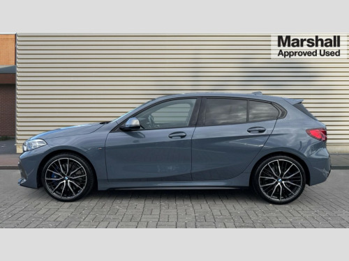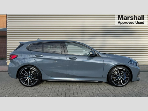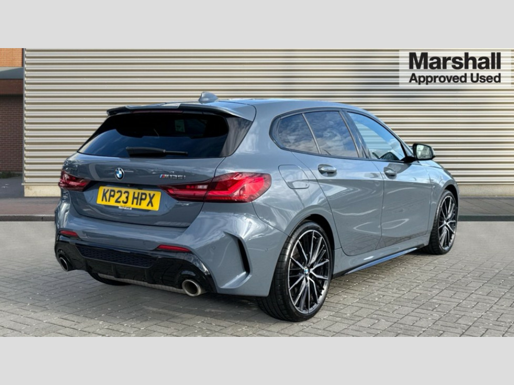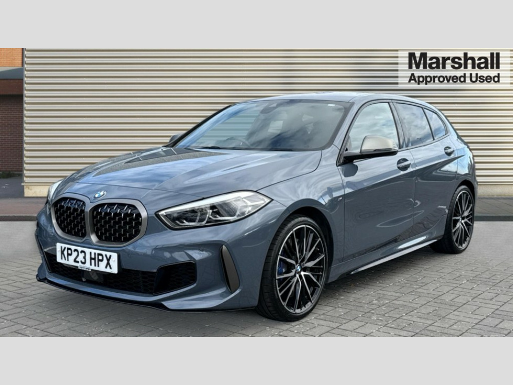 BMW 1 Series M135i xDrive 5dr Step Auto Active guard plus, Attentiveness assist, BMW ConnectedDrive online services, BMW Teleservices, Check Control warning system for monitoring of lights and door/luggage compartment open warning, Cruise control with speed limiter, Eco pro mode, Electric power steering, Electro hydraulically controlled multi-plate clutch transfers drive to rear axle and with power take-off device located on the front differential., Energy efficient operating strategy, Front axle single joint with specific axle kinematics to minimise drive influences on steering + provide increased rigidity agile driving behaviour, Gearshift time display in manual mode, Integrated owners handbook, Lane departure warning system, M Sports steering with M135i xDrive specific settings, Oil sensor for level and grade, On board computer, Optimum shift indicator, Personal Profile, Pull away assistant, Rigidly mounted rear subframe - Multi link construction with separate spring / damper configuration and excellent driving characteristics, Speed limit Info including no-overtaking indicator, Sporty fast gear shifting in sport mode, Aluminium lightweight construction, Anti roll bar front and rear, Balancer shaft, Double VANOS, Drive Performance Control, Eight speed sport automatic transmission with gearshift paddle switches, Electronic differential lock, Electronic selector lever, Engine cover with M performance designation, High precision injection, Larger fuel tank capacity (50 litres), Launch control, M135i specific heavily de-throttled engine intake air guide, M135i specific high-performance cooling package, M135i specific larger turbocharger with integrated divert-air valve, Petrol Particulate Filter, Twin tube gas filled shock absorbers with degressive characteristic curve, VALVETRONIC engine management, Variable, stepless and infinitely adjustable distribution of drive torque between the front and rear axles, xDrive intelligent all wheel drive with M135i specific reinforced components, DAB Digital radio, Auto dimming rear view mirror, Automatic headlight beam throw control, Automatic windscreen wipers and automatic headlight, Body colour door handles, Body colour roof trims, Cerium grey exterior mirror caps, Direction indicator side lights in exterior mirrors, Electrically adjustable exterior mirror with mirror adjustment switch on drivers armrest and aspheric on driver side, convex on passenger side, Exhaust tailpipe, Cerium Grey with bevelled finish - twin, round 100mm, left and right split, Fading support, Folding side mirrors with auto dimming/folding wing mirrors with auto dimming, Follow me home headlights, Front and rear bumper system with replaceable deformation elements, Front and rear electric windows with open and close fingertip control, anti trap facility and comfort closing, Front door sill finishers with M135i designation, Green tinted heat protection glazing, High gloss shadowline window frame, Recess cover mirror frames and B/C pillar embelisher trim, High level third brake light, Integrated front windscreen with washer jets, Kidney grille frame in Cerium Grey with Mesh design, LED daytime running lights, LED eyebrow turn indicators, LED front fog lights, Lightweight engineering, M logo designation side in cerium grey, M Performance exhaust system with valve control and minimised exhaust back pressure, M Performance specific setup, M Sport spoiler, Matt black air guide grilles, Matt black wheel arch trim, Model designation on electric bootlid includes xDrive designation for M135i xDrive, Nearside reverse light in rear light cluster, Preparation for high beam assistant, Rear fog lights, Rear side wing doors, Rear window wiper, Reinforced crank drive, new pistons and adapted con rods, Shark fin antenna, Trailer stabilisation logic, Visible VIN plate, Welcome lighting, 12V power socket in front centre console with blanking plug, 3 rear seat head restraints, 3 seat bench in 2nd row, 3 spoke sports leather steering wheel with black leather and stitching, pearl chrome decorative finish, specific M Badge, Anthracite headlining, Black boot net with lashing eyes, Cargo function on 2nd seat row, Child seat ISOFIX attachment for two outer rear seats and front passenger seat with anchorage points, Conditioned based service, Driver and front passenger backrest net on rear, Driver and front passenger seat heating, Driver side folding compartment in instrument panel, Folding rear clothes hook, Four grab handles integrated in roof lining, Front and rear door pockets with bottle holders, Front and rear side armrest integrated into door trim, Front armrest, Front M sports seats, Glove compartment, Height adjustable front head restraints, Luggage compartment for bag hooks on left and right, foldable luggage compartment liner and four lashing eyelets, Manual adjust steering wheel, Multi-function controls for steering wheel, Single front passenger seat, Storage compartment in centre console, Storage compartment in luggage compartment, Stowage of the parcel shelf in luggage compartment trim, Sun visors with vanity mirrors and insert tab, Two front centre console cupholders, Two zone automatic air conditioning, Type C two USB ports in rear centre console, Velour floor mats, Additional interior lighting pack - 1 Series M135i, BMW live cockpit professional pack- 1 Series, Connected pack professional - 1 Series, Interior lights pack - 1 Series, M Sport exterior styling aerodynamics pack - 1 Series 135i, 2 tone horn, 3 point seatbelts on all seats, front pyrotechnic belt tensioners, stopper and belt force limiters, rear coded belt buckles, Airbags - Front driver/passenger, front and rear curtain head protection, front side, manual deactivation of front passenger airbag, Anti lock braking system (ABS) with brake assist, BMW emergency call, Brake drying, Braking readiness, Child proof locking system in rear door, City braking function, Comfort modes, Cornering brake control, Crash sensor activating of a