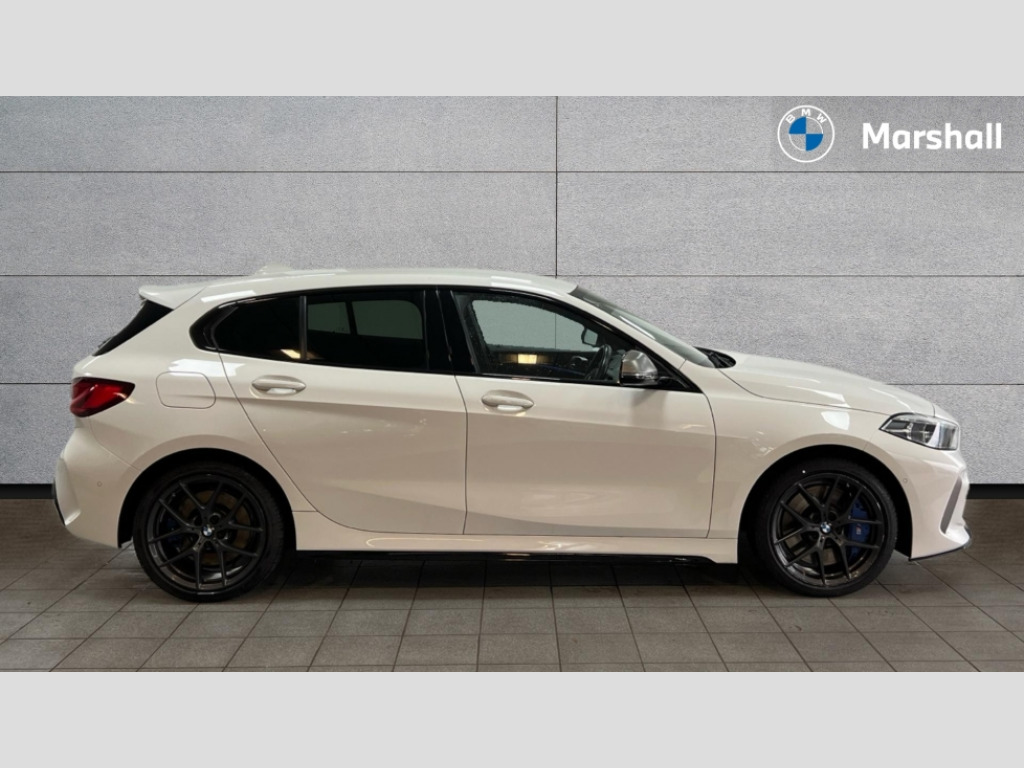 BMW 1 Series M135i xDrive 5dr Step Auto Active guard plus, Attentiveness assist, BMW ConnectedDrive online services, BMW Teleservices, Check Control warning system for monitoring of lights and door/luggage compartment open warning, Cruise control with speed limiter, Eco pro mode, Electric power steering, Electro hydraulically controlled multi-plate clutch transfers drive to rear axle and with power take-off device located on the front differential., Energy efficient operating strategy, Front axle single joint with specific axle kinematics to minimise drive influences on steering + provide increased rigidity agile driving behaviour, Gearshift time display in manual mode, Integrated owners handbook, Lane departure warning system, M Sports steering with M135i xDrive specific settings, Oil sensor for level and grade, On board computer, Optimum shift indicator, Personal Profile, Pull away assistant, Rigidly mounted rear subframe - Multi link construction with separate spring / damper configuration and excellent driving characteristics, Speed limit Info including no-overtaking indicator, Sporty fast gear shifting in sport mode, Aluminium lightweight construction, Anti roll bar front and rear, Balancer shaft, Double VANOS, Drive Performance Control, Eight speed sport automatic transmission with gearshift paddle switches, Electronic differential lock, Electronic selector lever, Engine cover with M performance designation, High precision injection, Larger fuel tank capacity (50 litres), Launch control, M135i specific heavily de-throttled engine intake air guide, M135i specific high-performance cooling package, M135i specific larger turbocharger with integrated divert-air valve, Petrol Particulate Filter, Twin tube gas filled shock absorbers with degressive characteristic curve, VALVETRONIC engine management, Variable, stepless and infinitely adjustable distribution of drive torque between the front and rear axles, xDrive intelligent all wheel drive with M135i specific reinforced components, DAB Digital radio, Auto dimming rear view mirror, Automatic headlight beam throw control, Automatic windscreen wipers and automatic headlight, Body colour door handles, Body colour roof trims, Cerium grey exterior mirror caps, Direction indicator side lights in exterior mirrors, Electrically adjustable exterior mirror with mirror adjustment switch on drivers armrest and aspheric on driver side, convex on passenger side, Exhaust tailpipe, Cerium Grey with bevelled finish - twin, round 100mm, left and right split, Fading support, Folding side mirrors with auto dimming/folding wing mirrors with auto dimming, Follow me home headlights, Front and rear bumper system with replaceable deformation elements, Front and rear electric windows with open and close fingertip control, anti trap facility and comfort closing, Front door sill finishers with M135i designation, Green tinted heat protection glazing, High gloss shadowline window frame, Recess cover mirror frames and B/C pillar embelisher trim, High level third brake light, Integrated front windscreen with washer jets, Kidney grille frame in Cerium Grey with Mesh design, LED daytime running lights, LED eyebrow turn indicators, Lightweight engineering, M logo designation side in cerium grey, M Performance exhaust system with valve control and minimised exhaust back pressure, M Performance specific setup, M Sport spoiler, Matt black air guide grilles, Matt black wheel arch trim, Model designation on electric bootlid includes xDrive designation for M135i xDrive, Nearside reverse light in rear light cluster, Preparation for high beam assistant, Rear fog lights, Rear side wing doors, Rear window wiper, Reinforced crank drive, new pistons and adapted con rods, Shark fin antenna, Trailer stabilisation logic, Visible VIN plate, Welcome lighting, 12V power socket in front centre console with blanking plug, 3 rear seat head restraints, 3 seat bench in 2nd row, 3 spoke sports leather steering wheel with black leather and stitching, pearl chrome decorative finish, specific M Badge, Anthracite headlining, Black boot net with lashing eyes, Cargo function on 2nd seat row, Child seat ISOFIX attachment for two outer rear seats and front passenger seat with anchorage points, Conditioned based service, Driver and front passenger backrest net on rear, Driver and front passenger seat heating, Driver side folding compartment in instrument panel, Folding rear clothes hook, Four grab handles integrated in roof lining, Front and rear door pockets with bottle holders, Front and rear side armrest integrated into door trim, Front armrest, Front M sports seats, Glove compartment, Height adjustable front head restraints, Luggage compartment for bag hooks on left and right, foldable luggage compartment liner and four lashing eyelets, Manual adjust steering wheel, Multi-function controls for steering wheel, Single front passenger seat, Storage compartment in centre console, Storage compartment in luggage compartment, Stowage of the parcel shelf in luggage compartment trim, Sun visors with vanity mirrors and insert tab, Two front centre console cupholders, Two zone automatic air conditioning, Type C two USB ports in rear centre console, Velour floor mats, Additional interior lighting pack - 1 Series M135i, BMW live cockpit professional pack- 1 Series, Connected pack professional - 1 Series, Interior lights pack - 1 Series, M Sport exterior styling aerodynamics pack - 1 Series 135i, 2 tone horn, 3 point seatbelts on all seats, front pyrotechnic belt tensioners, stopper and belt force limiters, rear coded belt buckles, Airbags - Front driver/passenger, front and rear curtain head protection, front side, manual deactivation of front passenger airbag, Anti lock braking system (ABS) with brake assist, BMW emergency call, Brake drying, Braking readiness, Child proof locking system in rear door, City braking function, Comfort modes, Cornering brake control, Crash sensor activating of airbags, Unlocking door
