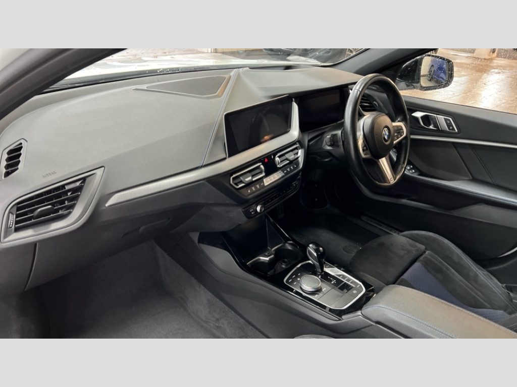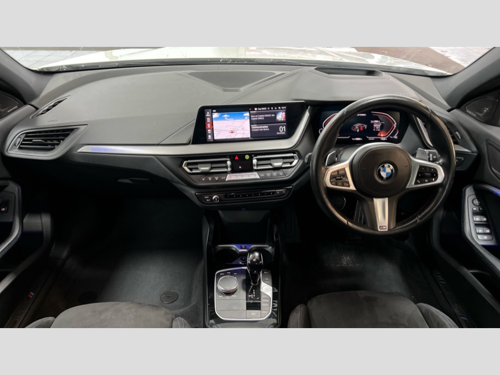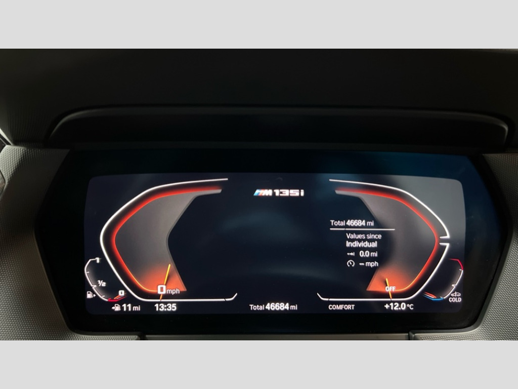 BMW 1 Series M135i xDrive 5dr Step Auto Active guard plus, Attentiveness assist, Bluetooth / WiFi interface for wireless connection of mobile terminal devices and audio streaming, BMW ConnectedDrive online services, BMW Teleservices, Check Control warning system for monitoring of lights and door/luggage compartment open warning, Cruise control with brake assist, Eco pro mode, Electric power steering, Electro hydraulically controlled multi-plate clutch transfers drive to rear axle and with power take-off device located on the front differential., Energy efficient operating strategy, Front axle single joint with specific axle kinematics to minimise drive influences on steering + provide increased rigidity agile driving behaviour, Gearshift time display in manual mode, Integrated owners handbook, Lane departure warning system, M Sports steering with M135i xDrive specific settings, Oil sensor for level and grade, On board computer, Optimum shift indicator, Personal Profile, Pull away assistant, Rigidly mounted rear subframe - Multi link construction with separate spring / damper configuration and excellent driving characteristics, Speed limit Info including no-overtaking indicator, Speed limiter, Sporty fast gear shifting in sport mode, Aluminium lightweight construction, Anti roll bar front and rear, Balancer shaft, Double VANOS, Drive Performance Control, Eight speed sport automatic transmission with gearshift paddle switches, Electronic differential lock, Electronic selector lever, Engine cover with M performance designation, High precision injection, Larger fuel tank capacity (50 litres), Launch control, M135i specific heavily de-throttled engine intake air guide, M135i specific high-performance cooling package, M135i specific larger turbocharger with integrated divert-air valve, Petrol Particulate Filter, Twin tube gas filled shock absorbers with degressive characteristic curve, VALVETRONIC engine management, Variable, stepless and infinitely adjustable distribution of drive torque between the front and rear axles, xDrive intelligent all wheel drive with M135i specific reinforced components, DAB Digital radio, Auto dimming rear view mirror, Automatic headlight beam throw control, Automatic windscreen wipers and automatic headlight, Body colour door handles, Body colour roof trims, Cerium grey exterior mirror caps, Direction indicator side lights in exterior mirrors, Exhaust tailpipe, Cerium Grey with bevelled finish - twin, round 100mm, left and right split, Fading support, Folding side mirrors with auto dimming/folding wing mirrors with auto dimming, Follow me home headlights, Front and rear bumper system with replaceable deformation elements, Front and rear electric windows with open and close fingertip control, anti trap facility and comfort closing, Front door sill finishers with M135i designation, Green tinted heat protection glazing, Heated, electrically adjustable exterior mirror aspheric on driver side, convex on passenger side, High gloss shadowline window frame, Recess cover mirror frames and B/C pillar embelisher trim, High level third brake light, Integrated front windscreen with washer jets, Kidney grille frame in Cerium Grey with Mesh design, LED daytime running lights, LED eyebrow turn indicators, LED front fog lights, Lightweight engineering, M logo designation side in cerium grey, M Performance exhaust system with valve control and minimised exhaust back pressure, M Performance specific setup, M Sport spoiler, Matt black air guide grilles, Matt black wheel arch trim, Model designation on electric bootlid includes xDrive designation for M135i xDrive, Nearside reverse light in rear light cluster, Preparation for high beam assistant, Rear fog lights, Rear side wing doors, Rear window wiper, Reinforced crank drive, new pistons and adapted con rods, Shark fin antenna, Trailer stabilisation logic, Visible VIN plate, Welcome lighting, 12V power socket in front centre console with blanking plug, 3 rear seat head restraints, 3 seat bench in 2nd row, 3 spoke sports leather steering wheel with black leather and stitching, pearl chrome decorative finish, specific M Badge, Ambient interior lighting, Anthracite headlining, Black boot net with lashing eyes, Cargo function on 2nd seat row, Child seat ISOFIX attachment for two outer rear seats and front passenger seat with anchorage points, Conditioned based service, Driver and front passenger seat heating, Folding rear clothes hook, Four grab handles integrated in roof lining, Front and rear door pockets with bottle holders, Front and rear side armrest integrated into door trim, Front armrest, Front integrated head restraints, Front M sports seats, Glove compartment, Luggage compartment for bag hooks on left and right, foldable luggage compartment liner and four lashing eyelets, Manual adjust steering wheel, Multi-function controls for steering wheel, Single front passenger seat, Storage compartment in centre console, Sun visors with vanity mirrors and insert tab, Two front centre console cupholders, Two zone automatic air conditioning, Velour floor mats, Additional interior lighting pack - 1 Series M135i, BMW live cockpit professional pack- 1 Series, Connected pack professional - 1 Series, Interior lights pack - 1 Series, M Sport exterior styling aerodynamics pack - 1 Series 135i, 2 tone horn, 3 point seatbelts on all seats, front pyrotechnic belt tensioners, stopper and belt force limiters, rear coded belt buckles, Airbags - Front driver/passenger, front and rear curtain head protection, front side, manual deactivation of front passenger airbag, Anti lock braking system (ABS) with brake assist, BMW emergency call, Brake drying, Braking readiness, Child proof locking system in rear door, City braking function, Comfort modes, Cornering brake control, Crash sensor activating central locking release, hazard warning lights, fuel cut off, interior lighting + activation of safety battery terminal clamp, Driver and front passenger seat belt 