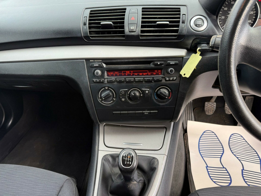 This 2010 BMW 1 Series 116d ES is a great find, having had only three owners from new. It features a 2.0 litre diesel engine and comes with the ES trim level. For your convenience, this model is equipped with Bluetooth hands free facility, allowing for telephone preparation and connection, all controlled through the BMW Professional Radio which includes a CD player and MP3 compatibility.This BMW 1 Series stands out with its low insurance group, making it an economical choice for many drivers. Furthermore, you will appreciate the generous boot space, offering ample room for shopping, luggage, or equipment. These features combined indicate how this vehicle offers a more practical and cost effective ownership experience compared to other similar cars on the market. uetooth telephone preparation, bluetooth hands free facility, bluetooth handsfree telephone connection, bmw professional radio - single cd and mp3, bmw professional radio with cd player, cloth- elektra- anthracite, 12v power socket - rear of centre console, 16in alloy wheels - light v spoke - 229, 16in v- spoke alloy wheels- style 229, 3spoke steering wheel, abs - anti lock braking system, air conditioning - manual, airbags - driver and front passenger head, airbags - driver and front passenger side, airbags - front and rear passenger, airbags - impact dependent system for driver and front passenger, alarm system thatcham 1 with remote control, auxiliary input, bmw business radio with single cd player, cbc - cornering brake control, child seat isofix attachment - front and rear, crash sensor - activating central locking release, dsc - dynamic stability control - stabilises the vehicle in extreme situations - controls traction, deformation zones - front and rear, door mirrors - electrically adjustable, ebd - electronic brake-force distribution, electric windows - front and rear with open-close fingertip control, floor mats - velour, front centre armrest when with bluetooth, incorrect fuelling protection system, manual air conditioning, manual height adjust front seats, mobility tyre sealing system, non smokers pack, obc - on-board computer, obd - on board diagnosis, pas, power steering - electric, runflat tyres when with larger wheel sizes, seats - 60-40 split folding rear, seats - front - manual height adjustment, side impact protection, silver interior trim, smokers package, steering column with manual reach and rake adjustment, tpws - tyre pressure warning system, trim - silver, vanity mirrors