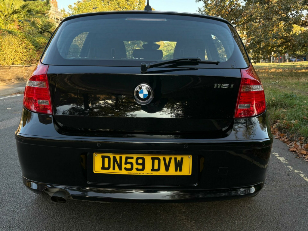 Blackheath Motor Group Are Humbled To Offer This Lovely Looking Low Mileage BMW 116i Automatic 2009/09 Finished in a Metallic Black With Contrasting Black Upholstery. A Colour Combination Which Looks Great In Person. As You Can See By The Pictures The Paintwork Still Maintains A Deep Shine. Only Covered A Very Low & Vosa Verified 35,000 Miles From New With A Full Service History. Just Been Recently Serviced at 35K in Oct 25. MOT: Fresh 1 Year Upon Sale. 2 Keys. Very Well Maintained Vehicle Via 1 F Owner From New. Specification Includes: Parking Sensors, Heated Seats, BMW in Car Entertainment With MP3, Electric /Heated Mirrors, Climate Control, Traction Control, ISOFIX, Multi Function Steering Wheel and Much More. A Very Nice Low Mileage Example Which Has Clearly Been Looked After. Blackheath Motor Group is a Family Run Business Which Prides Itself in Not Only Supplying Motor Vehicles, But Also Building Positive Relationships with its Satisfied Customers. All of Our Stock is Carefully Picked From Main Dealers Throughout the UK. Please Visit Our Website or Call Us To Book an Appointment on 07543455948 / 02084655506. We Are Always Happy to Give Car Related Advice and Answer Any Questions. Finance Available Via Zuto. 3 Months Warranty. 1 Year Free AA Breakdown Cover. mfort package se & m sport, heated front seats, auto dimming interior mirror, rain sensor with auto headlights activation, cloth- elektra- anthracite, 16in double spoke alloy wheels style 222, 16in v- spoke alloy wheels- style 229, 16in v- spoke alloy wheels- style 255, 16in v- spoke light alloy wheels style 360, bmw business radio with single cd player, bmw connecteddrive- assist, bmw connecteddrive- online, manual height adjust front seats, model designation deletion, non smokers pack, pas, runflat tyres when with larger wheel sizes, silver interior trim, smokers pack, voice control system when with bluetooth interface