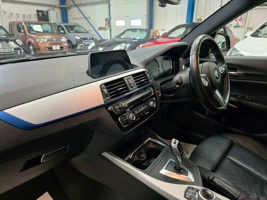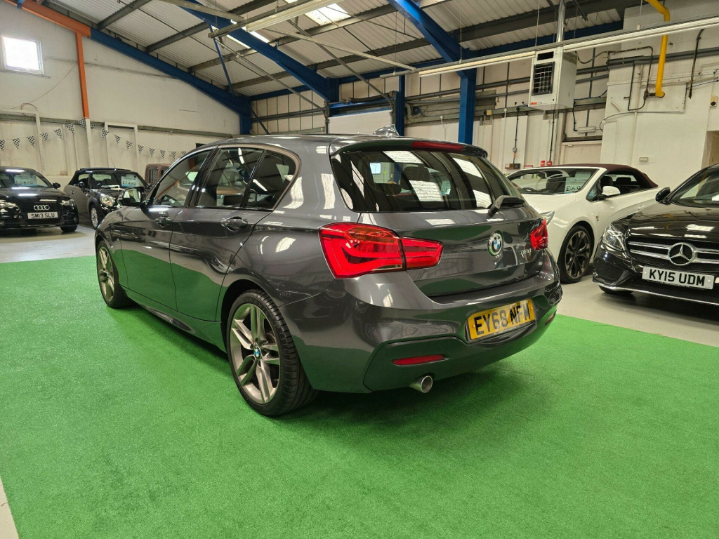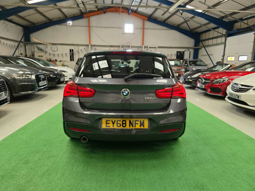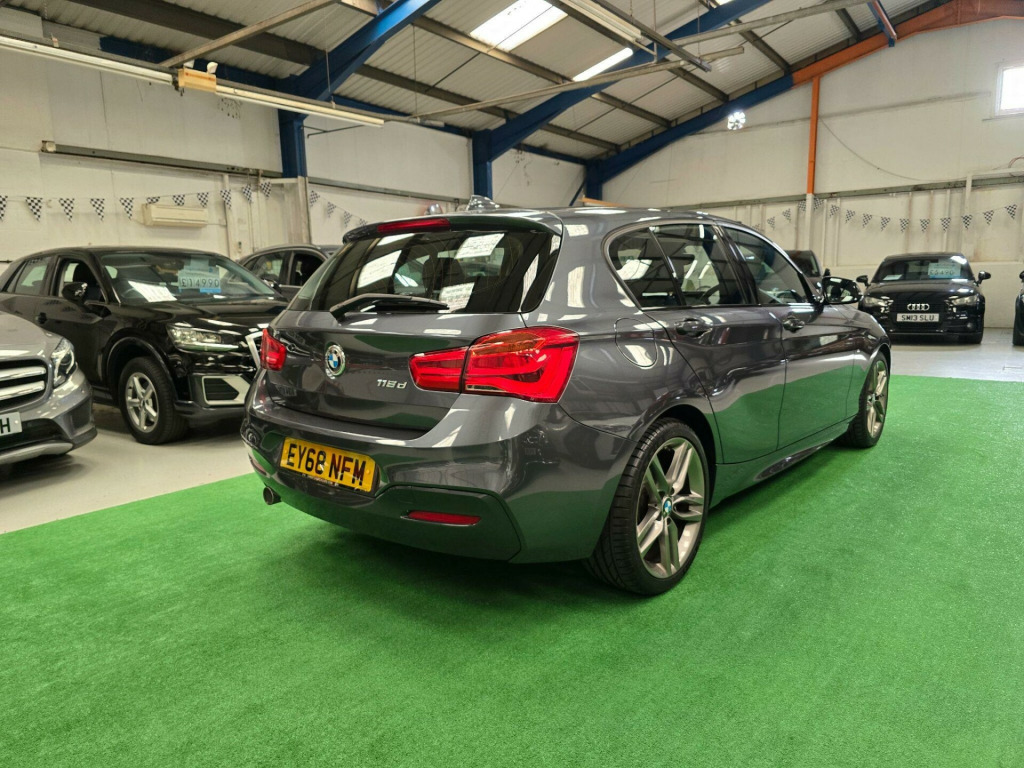 This 2018 BMW 1 Series 118d M Sport offers a clear vehicle history, providing peace of mind for its next owner.  Powered by a 2.0L Euro 6 diesel engine, this M Sport variant combines efficient performance with a sporty driving experience.  Inside, you'll find comfort and convenience with automatic single zone climate control and Bluetooth hands free connectivity, complete with USB audio interface.  The car also features LED headlights for enhanced visibility and a rain sensor that automatically activates the headlights, ensuring you're prepared for changing weather conditions.The BMW 1 Series 118d M Sport is designed to impress, boasting an acceleration of 0 to 62mph in just 8.2 seconds, demonstrating its responsive power. This particular model also offers a generous boot space, making it a practical choice for everyday use and longer journeys alike. These attributes, combined with its well maintained provenance and desirable M Sport trim, set this BMW apart from other vehicles in its class.. 12V Power Socket - Centre Console, 12V Power Socket - Passenger Footwell, 18in Alloy Wheels - M Double Spoke in Ferric Grey - 461M, Active Differential Brake - ADB Sport - Electronic Differential Lock in DSC-Off Mode, Air Conditioning - Automatic - Single Zone, Airbags, Alarm System - Thatcham 1 with Remote Control and Engine Immobiliser, Ambient Lighting - Switchable BMW Classic Orange - Cold White - LED, Armrest - Front with Sliding Adjustment, BMW ConnectedDrive Online Services, BMW ConnectedDrive Services, BMW Emergency Call, BMW Navigation System, BMW Professional Radio - Single CD and MP3, BMW TeleServices, Battery Age Recognition Function, Battery Safety Cut Off, Bluetooth Hands Free with USB Audio Interface, Brake Pad Wear Indicator - Front and Rear, Bumper System Front and Rear - Replaceable Deformation Elements for Impacts Up to 9mph, Central Locking Switch - Doors - Fuel Filler Cap - Luggage Compartment, Check Control Warning System for Monitoring of Lights and Door-Luggage Compartment Open Warning, Child Proof Locking System - Rear Doors, Child Seat ISOFIX Attachment for the Two Outer Rear Seats, Condition Based Service, Crash Sensor - Activating Central Locking Release - Hazard Warning Lights - Battery Safety Cut Off - Interior Lighting, Cupholders Two with Sliding Cover and Inlay Mat, DAB Digital Radio, DSC - Dynamic Stability Control Plus, Direction Indicator - Side Repeaters - Integrated in Exterior Mirrors, Direction Indicator Lights - Clear Lenses, Door Sill Finishers - M Designation, Drive Performance Control - ECO PRO - Comfort - Sport - Sport Plus Modes, Dynamic Brake Lights, ECO PRO Mode, EPS - Electric Power Steering, Electric Windows - Front and Rear with Open-Close Fingertip Control - Anti-Trap Facility and Comfort Closing Function, Exhaust Tailpipe - Chrome, Extended Storage, Exterior Mirrors Electrically Adjustable, Exterior Parts in Body Colour, Exterior Trim - High Gloss Shadowline, First Aid Kit and Warning Triangle, Floor Mats - Velour, Glove Compartment, Glovebox - Handle with Chrome Surround, Grab Handles - Integrated in Roof Linings - Four, Handbrake and Gear Knob - Leather, Head Restraints - Rear and Folding, Headlining - Anthracite, Heat Protection Glazing with Green Tint, High Level Third Brake Light, Incorrect Fuelling Protection System, Instrument Cluster - Sports with Red Highlight, Interior Lighting - Front Centre Over Interior Mirror and Rear Centre, Interior Trim - Aluminium Hexagon with Estoril Blue Finisher, Kidney Grille - Extra Wide High Gloss Black Vertical Slats, LED Fog Lights - Front, LED Headlights, Lashing Eyes in Luggage Compartment at Sill x2, Lights-On Warning by Audio Warning Signal When Ignition is Switched Off, Locking Wheel Bolts, Luggage Compartment - Light, Luggage Compartment Access via BMW Roundel, M Aerodynamic Bodystyling, M Logo Designation Chrome - Side, M Sport Multi-Function Leather Steering Wheel - Three-Spoke, M Sport Package, M Sport Suspension, Model Designation, Multifunction Controls for Steering Wheel, Non Smokers Package, OBC - On-Board Computer, Oil Temperature Display via On-Board Computer Shown in Central Screen in Instrument Cluster, Optimum Shift Indicator, Personal Profile, Rain Sensor with Automatic Headlight Activation, Real Time Traffic Information, Rear Fog Light - Offside, Rear Window Aerial, Remote Control Including Integrated Key - 2, Remote Control with Integrated Key with Insert in Blue, Reversing Light in Rear Cluster - Nearside, Run Flat Tyres, Seat Belt Security Check for Driver and Front Passenger, Seats - 60-40 Split Folding Rear, Servotronic Steering, Shark Fin, Side Armrests - Front and Rear Integrated into Door Trim, Side Impact Protection, Speed Limit Function, Sport Seats - Front, Start-Stop Button with Comfort Go Keyless Engine Start and Auto Start-Stop Deactivation Button, Steering-Wheel Column Adjustment - Manual, Storage Compartment - Rear Centre Console and in Door Trim - Front, Sun Visors with Vanity Mirrors and Ticket.