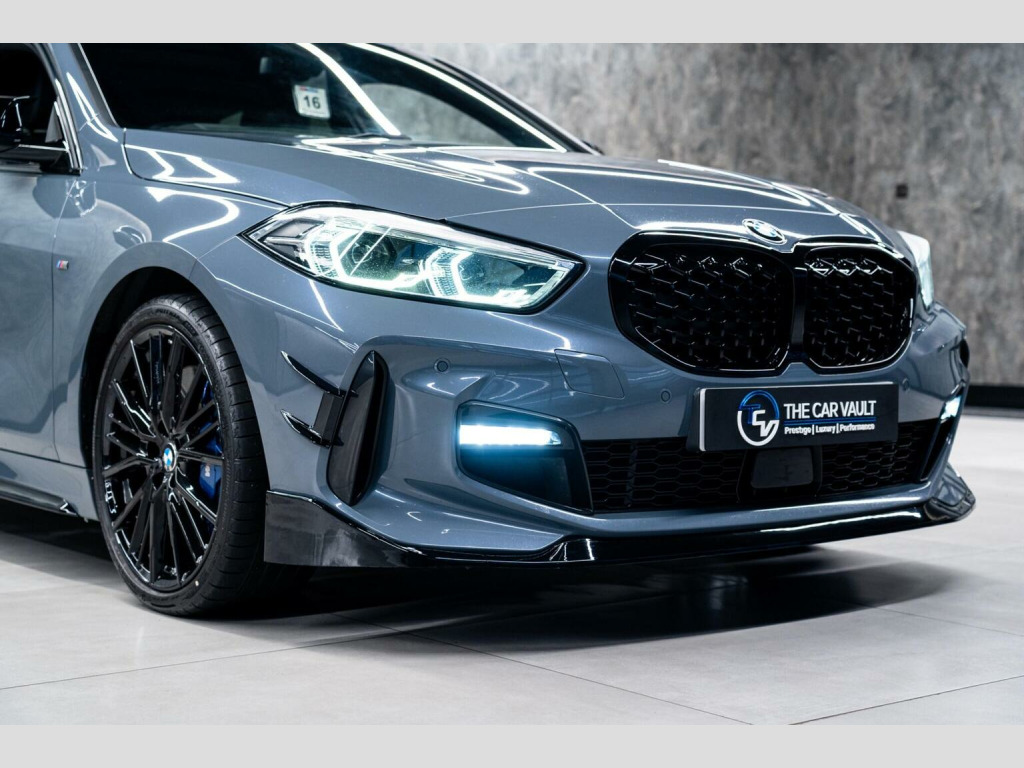 We At The Car Vault Are Proud To Offer This Stunning BMW 1 SERIES 2.0 118d M Sport Auto Euro 6 Finished In INDIVIDUAL STORM BAY METALLIC Paint. This Vehicle Comes With a FULL COMPREHENSIVE BMW MAIN DEALER SERVICE HISTORY and Comes With 2 ORIGINAL BMW REMOTE KEYS. This BMW 118d M PERFORMANCE Comes With The Following OPTIONAL SPECIFICATION: M PERFORMANCE AERO BODY STYLING KIT-Gloss Black, Individual Storm Bay Metallic Paint, M Sport Plus Pack, M Sport Pro Package, M Sport Steering, M Sport Braking System with Blue Brake Calipers, Extended High-gloss Shadowline Exterior Trim, BMW Icon Adaptive LED Headlights, LED Front Fog Lights, BMW Live Cockpit Professional, PDC-Park Distance Control-Front and Rear, Tech Pack II, Harman Kardon Loudspeaker System, Connected Package Plus, Enhanced Bluetooth with Wireless Charging, Perforated Dakota Leather-Black with Blue Highlight, Seat Heating for Driver and Front Passenger, M Seat Belts, Illuminated Boston Interior Trim, Automatically Dimming Rear View Mirror, Headlining Anthracite, Electrically Folding with Anti Dazzle Exterior Mirrors, Sun Protection Glazing, 19in Alloy Wheels-M Double Spoke Style 552-Gloss Black.