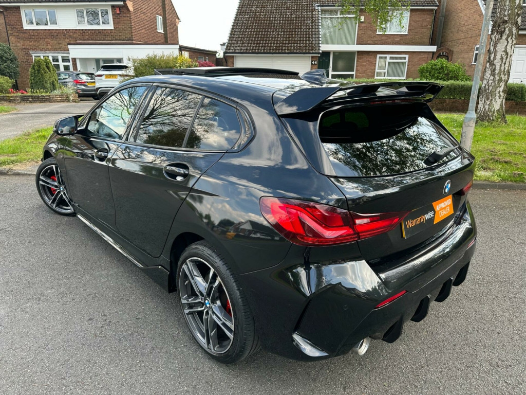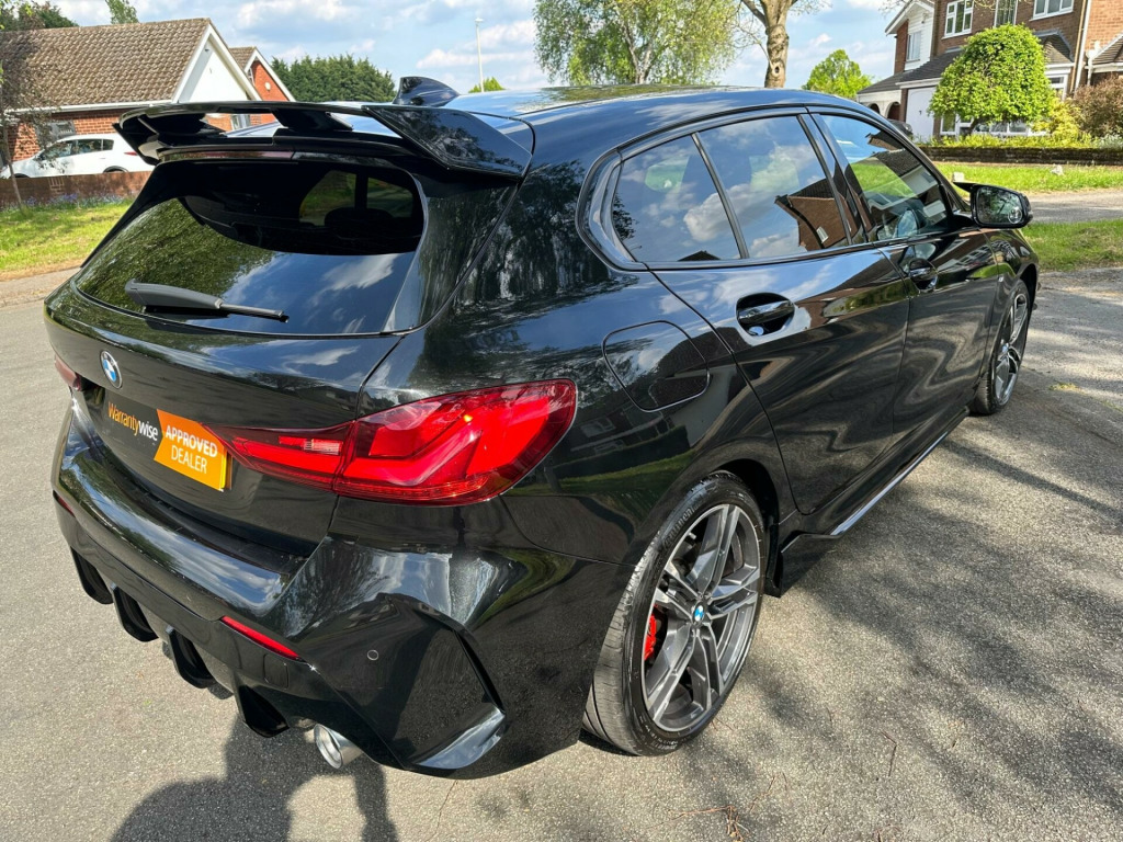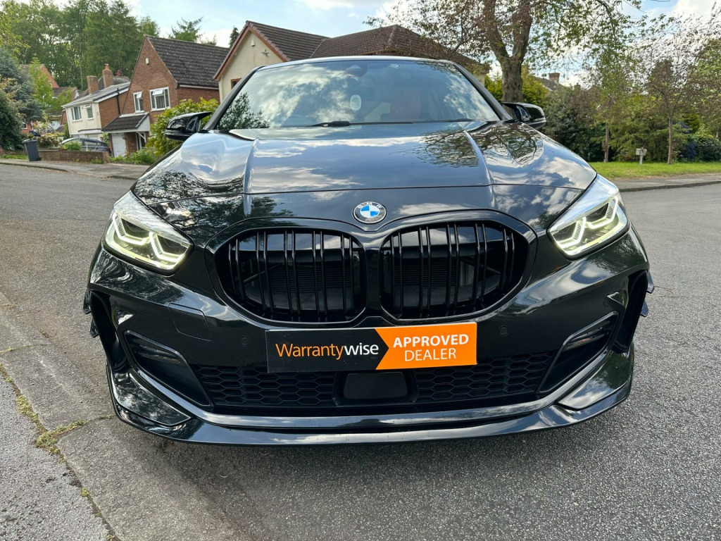 This 2019 BMW 1 Series 118d M Sport offers exceptional value with its remarkably low mileage of just 48,055 miles for its age. Finished in the sporty M Sport trim, this 2.0L diesel Euro 6 compliant model boasts a responsive 0-62mph acceleration of 8.5 seconds. Inside, you'll find the luxurious Perforated Dakota Leather upholstery in Magma Red with Grey Highlight, complemented by the M Sport Plus Pack. Enjoy the open air with the Panoramic Glass Sunroof, and stay connected with Enhanced Bluetooth featuring Wireless Charging. The striking 18in M V-Spoke Style 554M Orbit Grey alloy wheels fitted with performance tyres add to its dynamic appeal, while the generous boot space ensures practicality for all your needs.This BMW 1 Series 118d M Sport stands out due to its impressive combination of features and efficiency. Its low CO2 emissions indicate a more environmentally conscious driving experience compared to many similar vehicles. The inclusion of the Panoramic Glass Sunroof and the premium M Sport Plus Pack, which includes the desirable 18in M V-Spoke alloy wheels, further enhances its appeal, offering a superior level of comfort and style. The combination of its strong acceleration and practical boot space makes it a well rounded choice for those seeking a capable and enjoyable driving experience. noramic glass sunroof, sun protection glazing, perforated dakota leather - magma red with grey highlight, m sport plus pack, enhanced bluetooth with wireless charging, 18in alloy wheels - m v-spoke style 554m orbit grey with performance tyres, 12v power socket in centre console front with blanking plug, 18in alloy wheels - double-spoke style 819m, active guard plus, air conditioning automatic with two-zone control, airbags, alarm system - thatcham 1 with remote control and engine immobiliser, armrest - front - folding with storage compartment, attentiveness assistant, automatically dimming rear view mirror, bmw connecteddrive online services, bmw emergency call, bmw live cockpit plus, bmw mobility tyre sealing system, bmw teleservices, bluetooth - audio streaming - with compatible devices, bluetooth hands free with usb audio interface, bumper system front and rear - replaceable deformation elements for impacts up to 9mph, central locking switch - doors - fuel filler cap - luggage compartment, check control warning system for monitoring of lights and door-luggage compartment open warning, child seat isofix attachment for the two outer rear seats and front passenger seat, childproof locking system - rear doors and electric windows, condition based service, connected package plus, contrast stitching - instrument panel, crash sensor, cruise control with brake function, cupholders - two front centre console, dab digital radio, dsc - dynamic stability control plus, dead-locking function system to all doors, direction indicator side lights integrated in exterior mirrors, door sill finishers in black plastic with inserted m designation in metallic look - front only, drive performance control with eco pro and comfort modes, drive-away locking system on all doors-luggage compartment - can be de-activated in idrive settings, eco pro mode, eps - electric power steering, electric handbrake, electric windows - front and rear with open-close fingertip control - trap release and child lock function, exhaust tailpipe 90mm - chrome twin - round - left and right - split, extended lighting, extended storage, exterior mirrors - electrically folding with anti dazzle, exterior parts in body colour, exterior trim - high gloss shadowline, first aid kit and warning triangle, floor mats in anthracite velour with contrasting colour seam to match contrast stitching on instrument panel, front windscreen wipers with integrated washer jets, gearshift lever with m designation - short-shift, glove box with light, grab handles - integrated in roof linings - four, headlining - anthracite, heat protection glazing with green tint, high level third brake light, illuminated boston interior trim, incorrect fuelling protection system, integrated owners handbook - within idrive menu, interior lighting, kidney grille - chrome frame with satin aluminium struts, led fog lights - front, led headlights, locking wheel bolts, luggage compartment package, m logo designation chrome - side, m sport aerodynamic package, m sport steering wheel, m sport suspension, model designation on tailgate, multifunction controls for steering wheel, obc - on-board computer, optimum shift indicator, pdc - park distance control - front and rear, performance control, personal profile, rain sensor with automatic headlight activation, rear fog light, rear seat backrest with manual 60-40 split folding with 3 top tether clips integrated on rear of seat panels, rear seat headrests - three, remote control key x2, reversing light in rear light clusters, seat belt security check for driver and front passenger, seat belt warning if driver starts ignition without putting on seatbelt, seat heating for driver and front passenger, servotronic steering, shark fin, side armrests - front and rear integrated into door trim, side impact protection, sport seats - front, start-stop button - illuminated in centre console with keyless engine start and auto start-stop deactivation button, steering column with manual reach and rake adjustment, stereo speaker system, storage features, sun visors with vanity mirrors and insert tab, suspension, tpms - tyre pressure monitoring system, three-point seat belts - all seats, twin horns, tyres - reduced rolling resistance, visible vin, welcome light, windscreen wiper - rear
