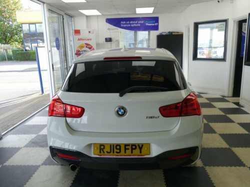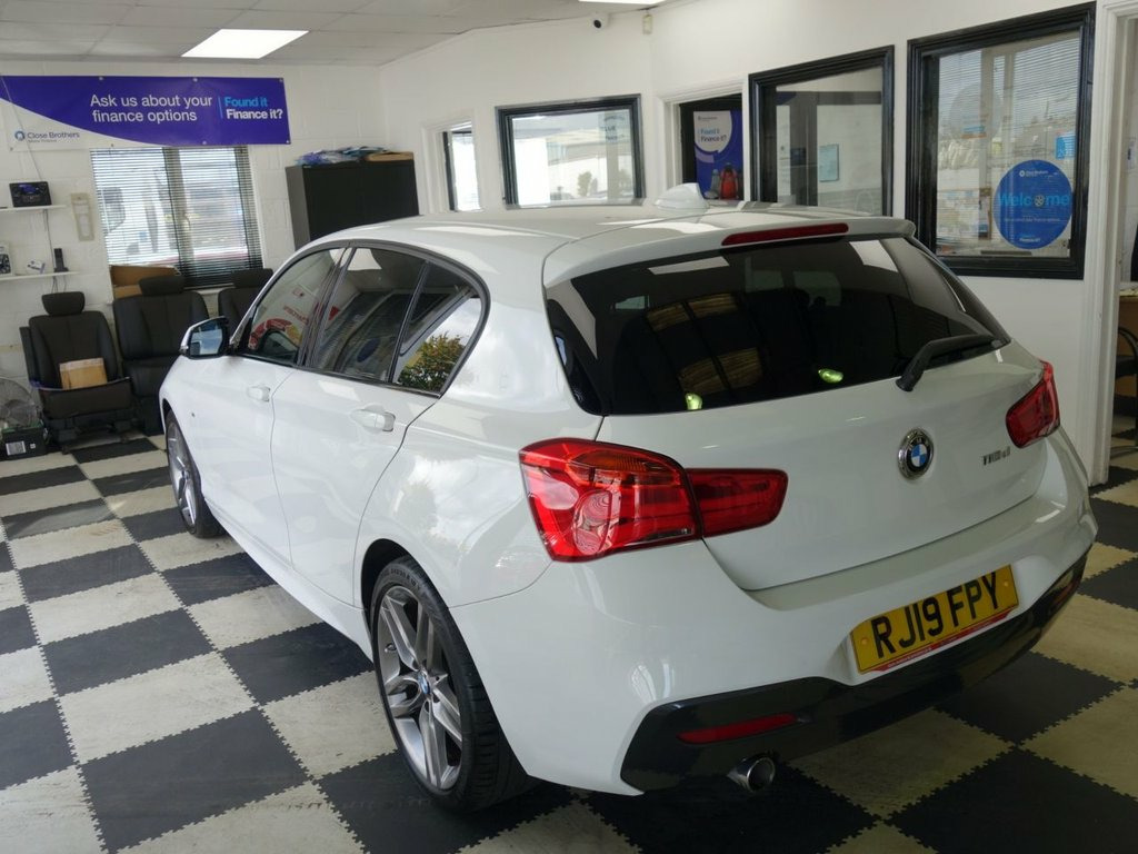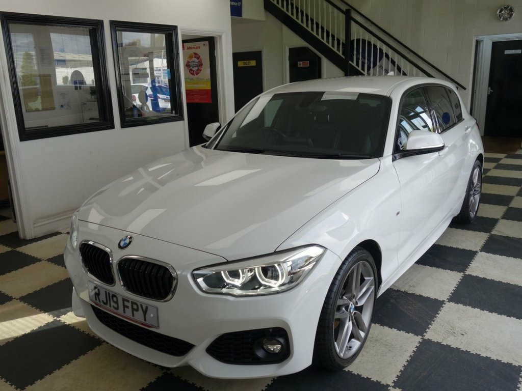MOT UNTIL 27/10/2026 WITH NO ADVISORIES!! FULL SERVICE HISTORY!! INSPECTED, SERVICED AND READY TO GO TODAY!! Enjoy peace of mind with this BMW 1 Series 118d M Sport, boasting an MOT valid until March 2026. This 2019 model features a 2.0L Diesel engine and meets Euro 6 emissions standards. The M Sport trim enhances its appeal, and you'll appreciate the convenience of rear Park Distance Control, a rain sensor with automatic headlight activation, and single zone automatic air conditioning for a comfortable drive. Stay connected on the go with the Bluetooth hands free system and USB audio interface, while the LED headlights provide excellent visibility. This BMW 1 Series offers a refined driving experience, with features designed to make every journey smoother and more enjoyable. The inclusion of Park Distance Control, automatic headlights, and climate control sets it apart, offering a higher level of comfort and ease of use compared to many other vehicles. The Bluetooth connectivity ensures you can manage calls and audio safely, and the LED headlights contribute to both safety and the car's modern aesthetic. 12V Power Socket - Centre Console, 12V Power Socket - Passenger Footwell, 18in Alloy Wheels - M Double Spoke in Fe, Active Differential Brake - ADB Sport - , Air Conditioning - Automatic - Single Zo, Airbags, Alarm System - Thatcham 1 with Remote Co, Alpine White, Ambient Lighting - Switchable BMW Classi, Armrest - Front with Sliding Adjustment, Automatically Dimming Rear View Mirror, Battery Age Recognition Function, Battery Safety Cut Off, Bluetooth Hands Free with USB Audio Inte, BMW ConnectedDrive Online Services, BMW ConnectedDrive Services, BMW Emergency Call, BMW Mobility Tyre Sealing System, BMW Navigation System, BMW Professional Radio - Single CD and M, BMW TeleServices, Brake Pad